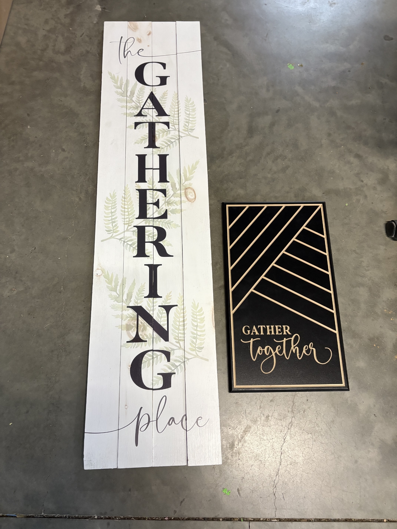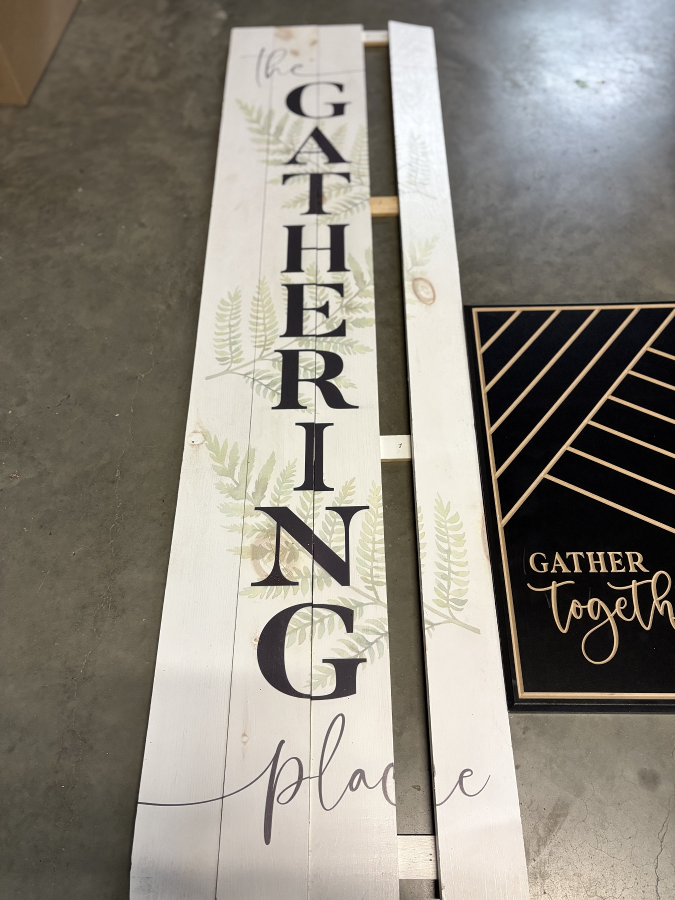 The Gathering Place Sign - One Slab of Wood Broken off & Gather Together Wall Art - Gathering Place = 5 Ft - Gather Together is 23" long - ****SHIPPING NOT AVAILABLE- LOCAL PICKUP ONLY****