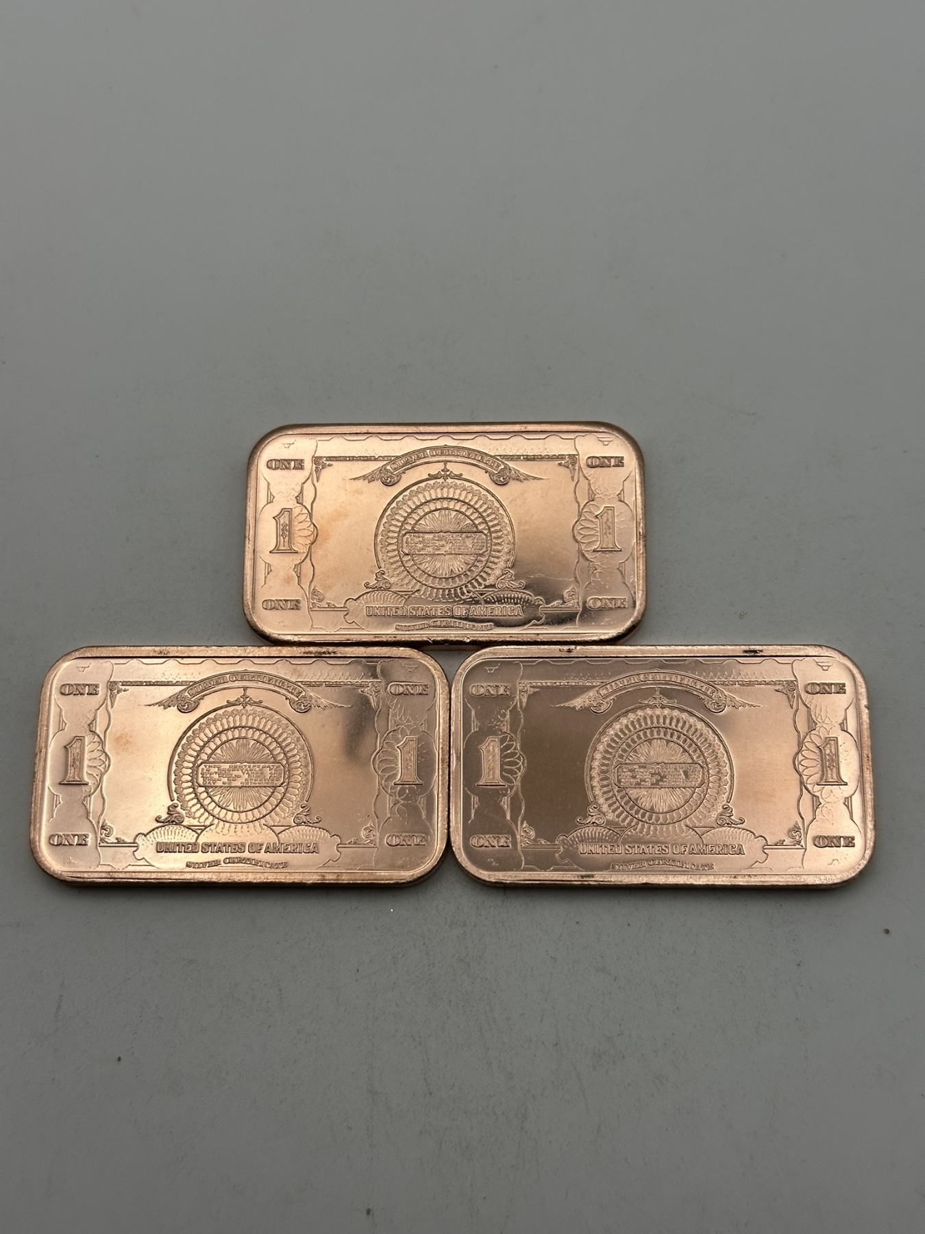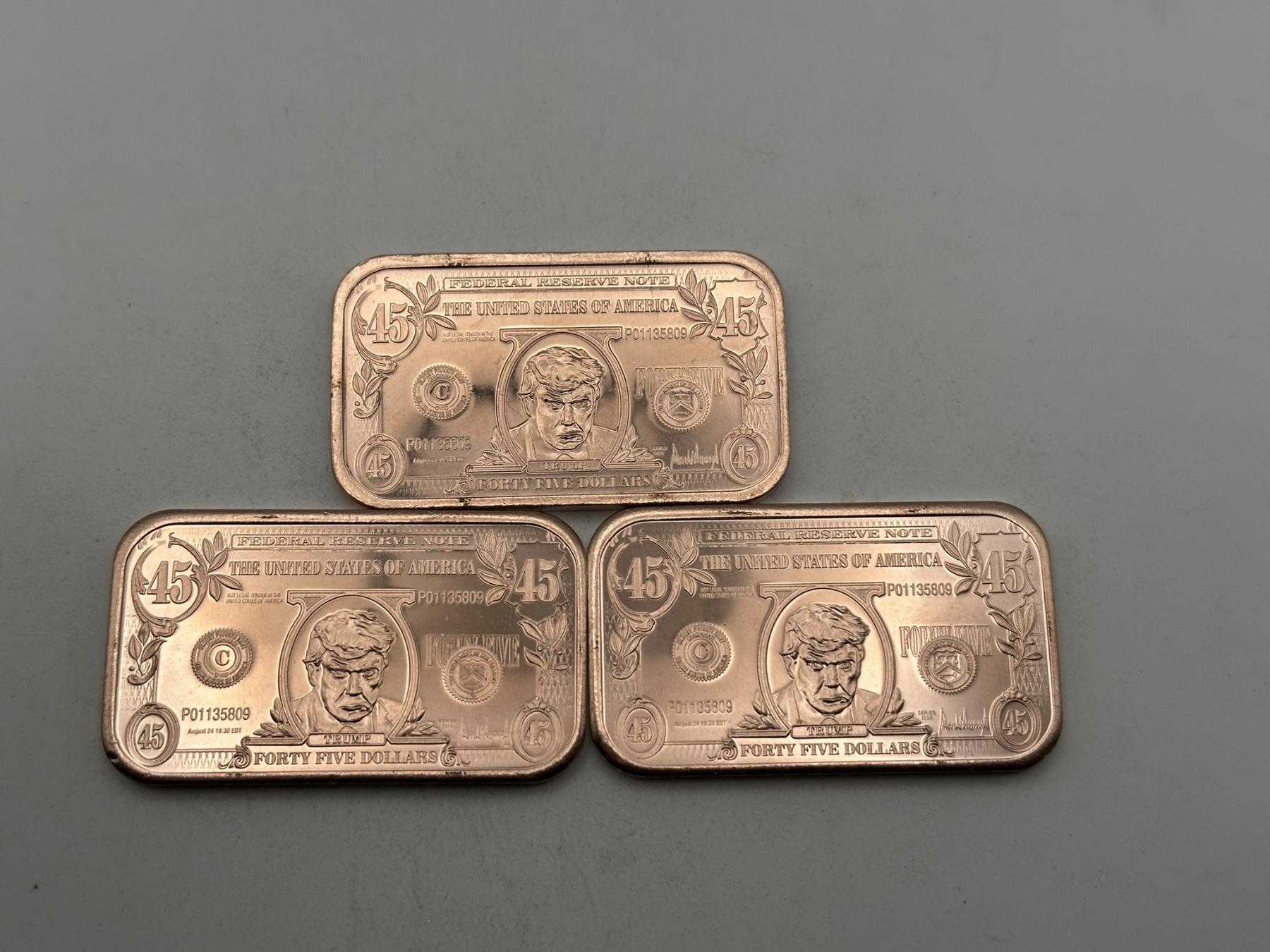 Three $1 Donald Trump 'Silver Certificate' 1oz .999 Copper Bars