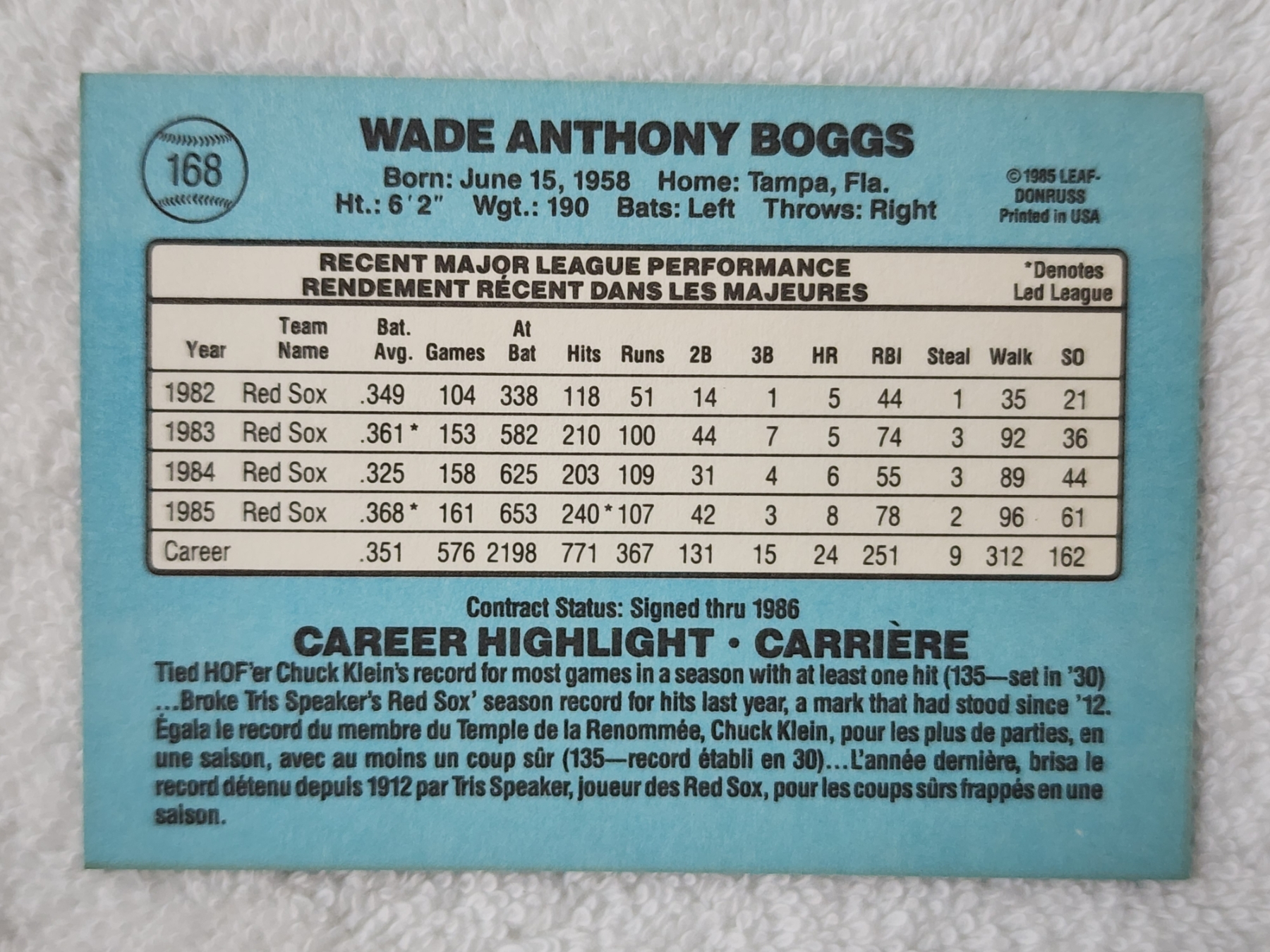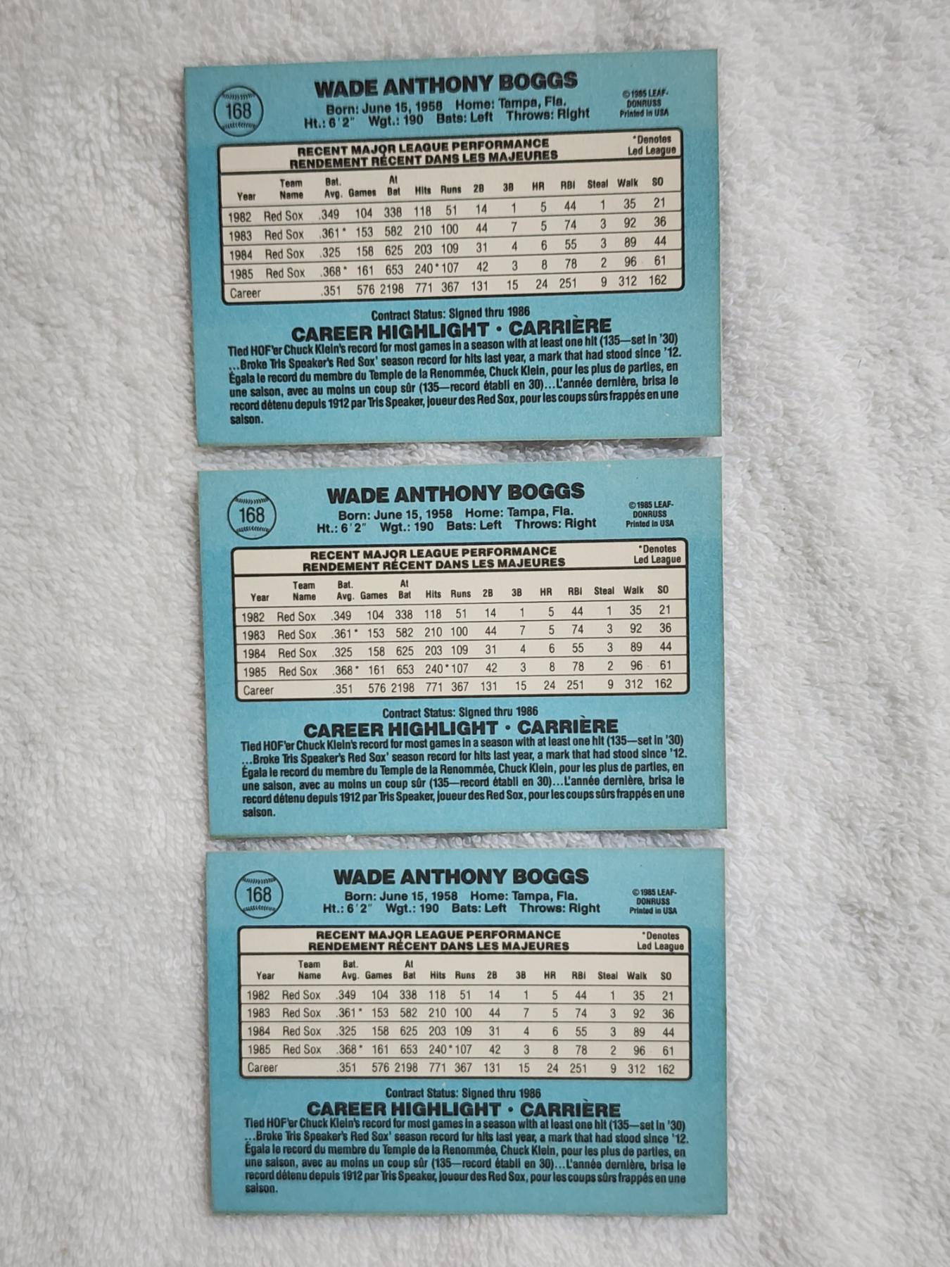 Three 1985 Leaf-Donruss #168 Wade Boggs Baseball Trading Cards