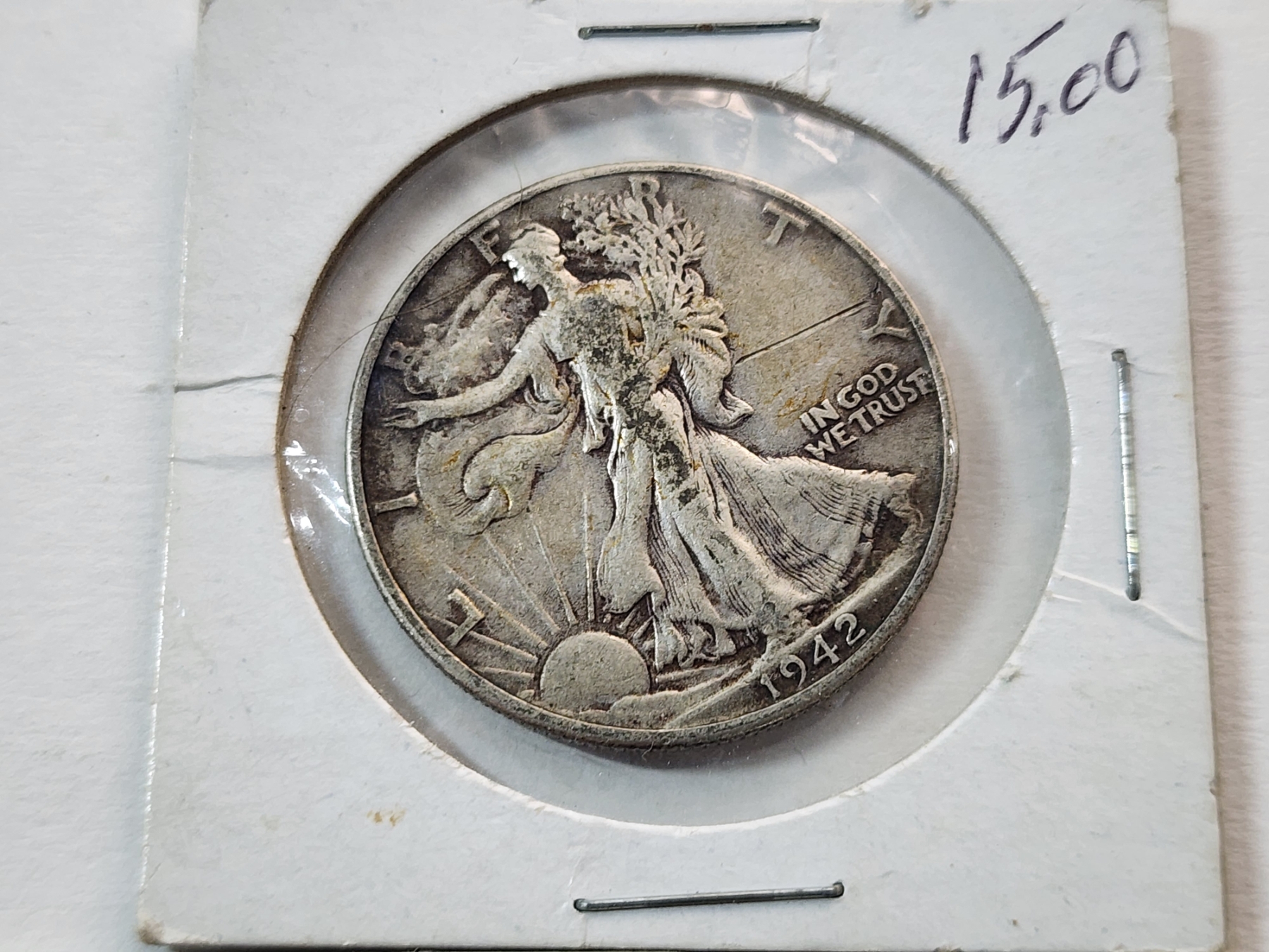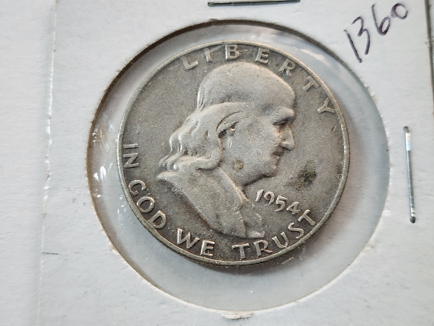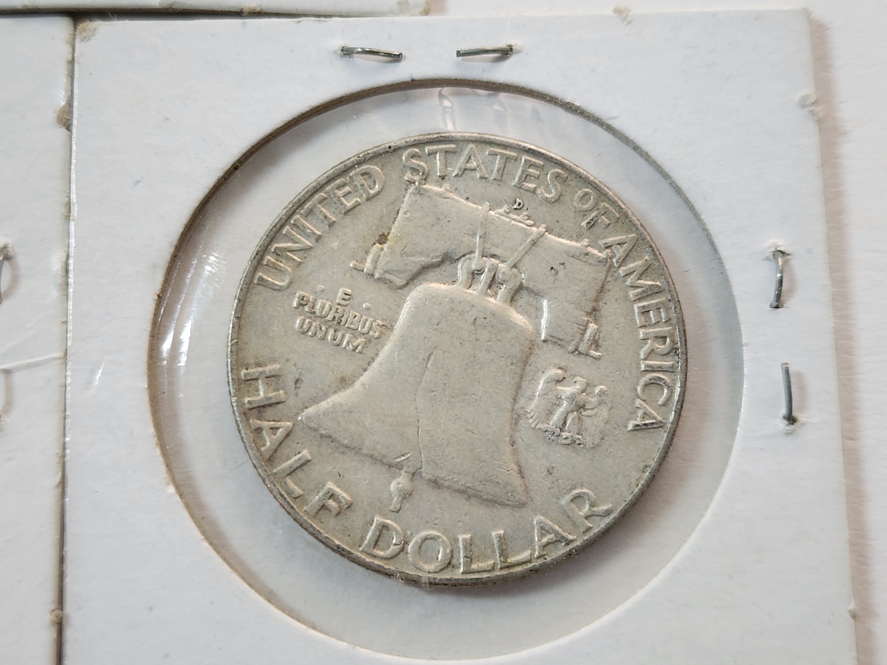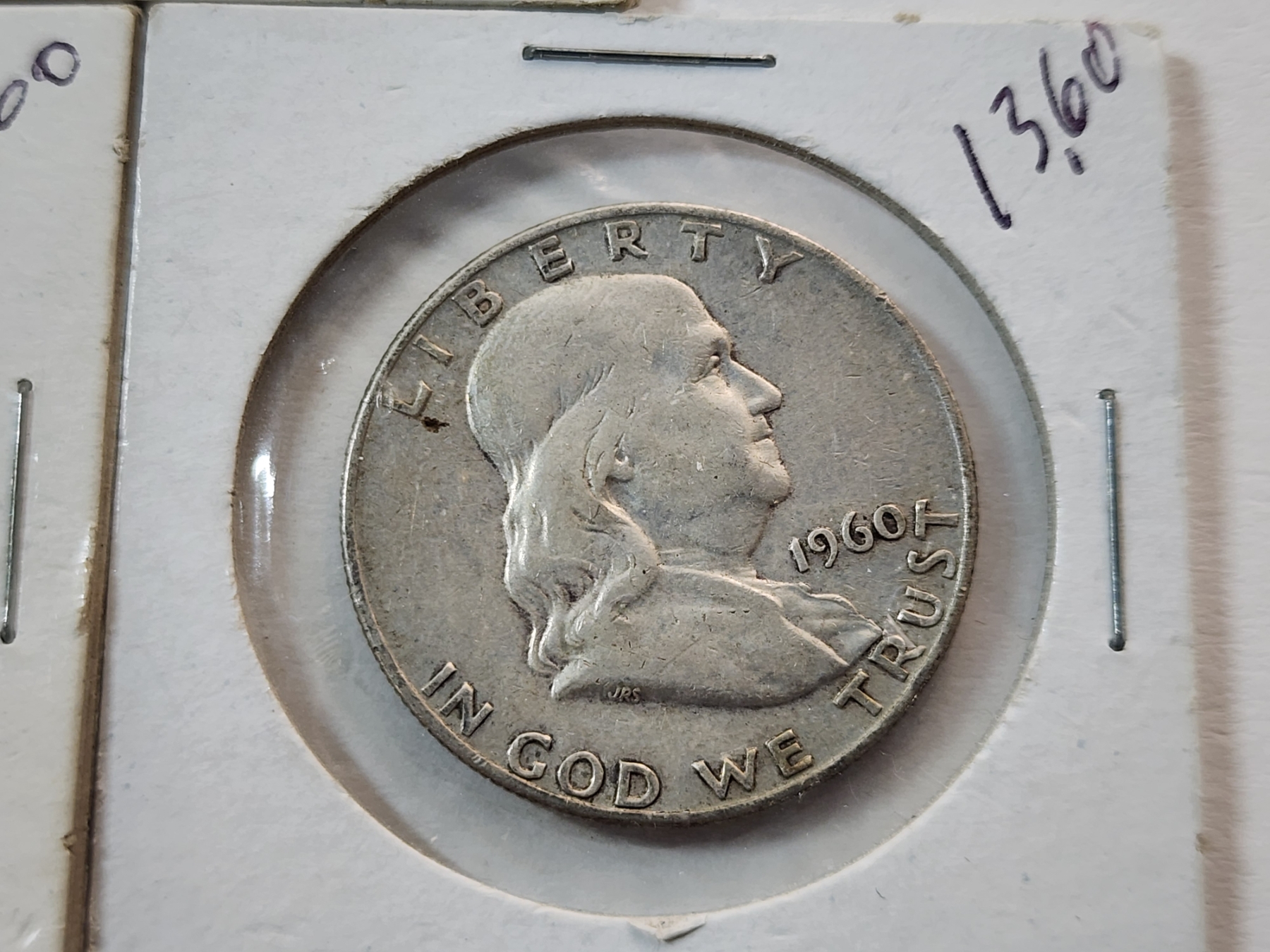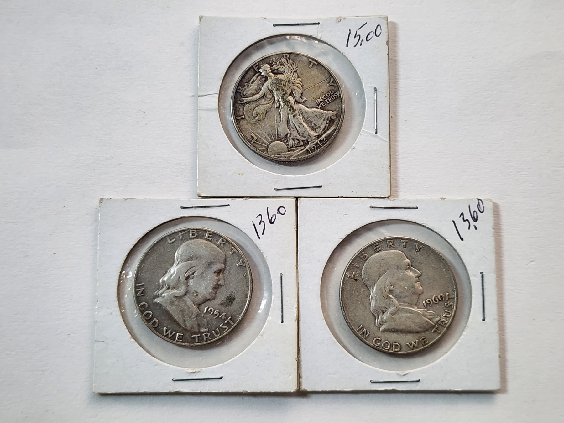 Three 90% Silver U.S. Half Dollars: 1942 Walking Liberty, 1954-D & 1960-D Franklin FV: $1.50