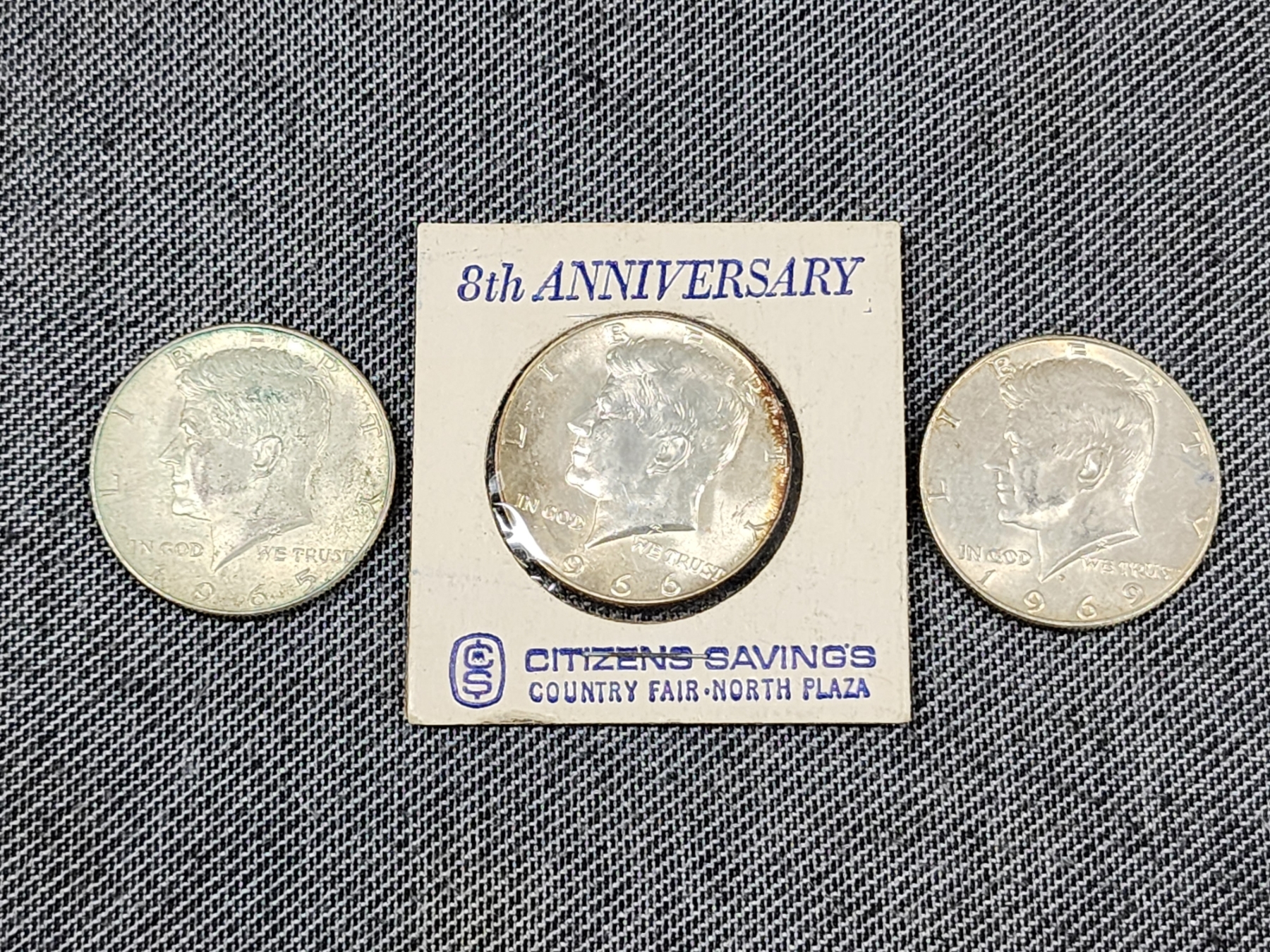 Three Assorted 40% Silver Kennedy Half Dollars ~ $1.50 Face Value