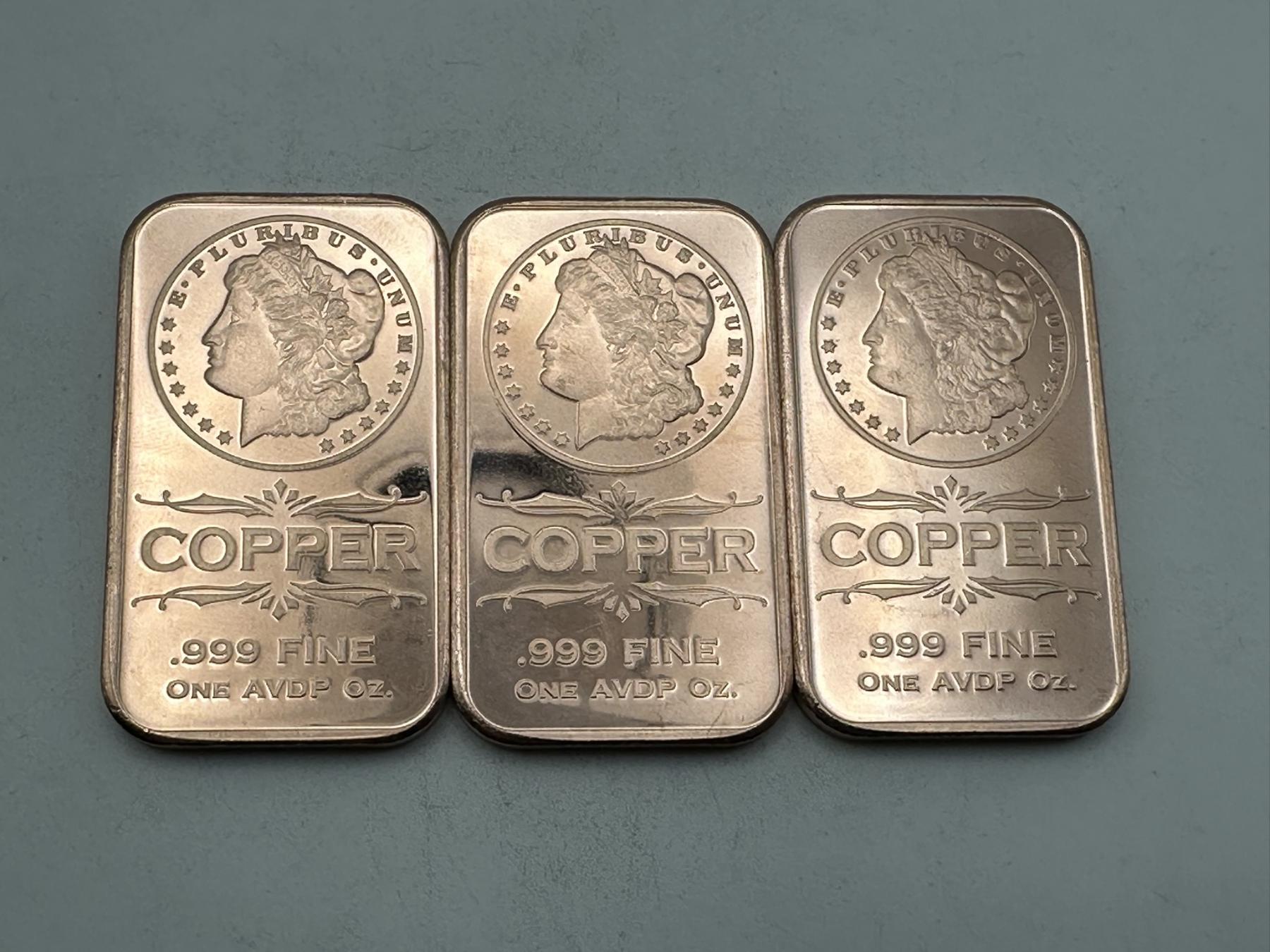 Three Morgan Design 1 AVDP oz .999 Fine Copper Bars