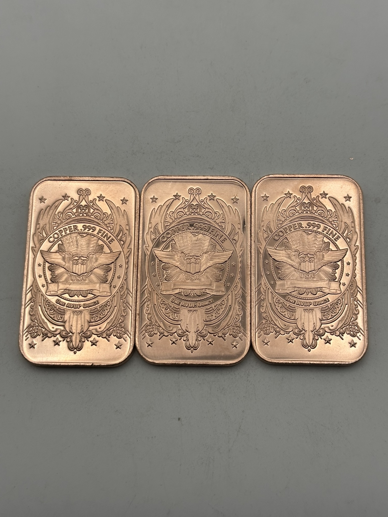 Three Morgan Design 1 AVDP oz .999 Fine Copper Bars