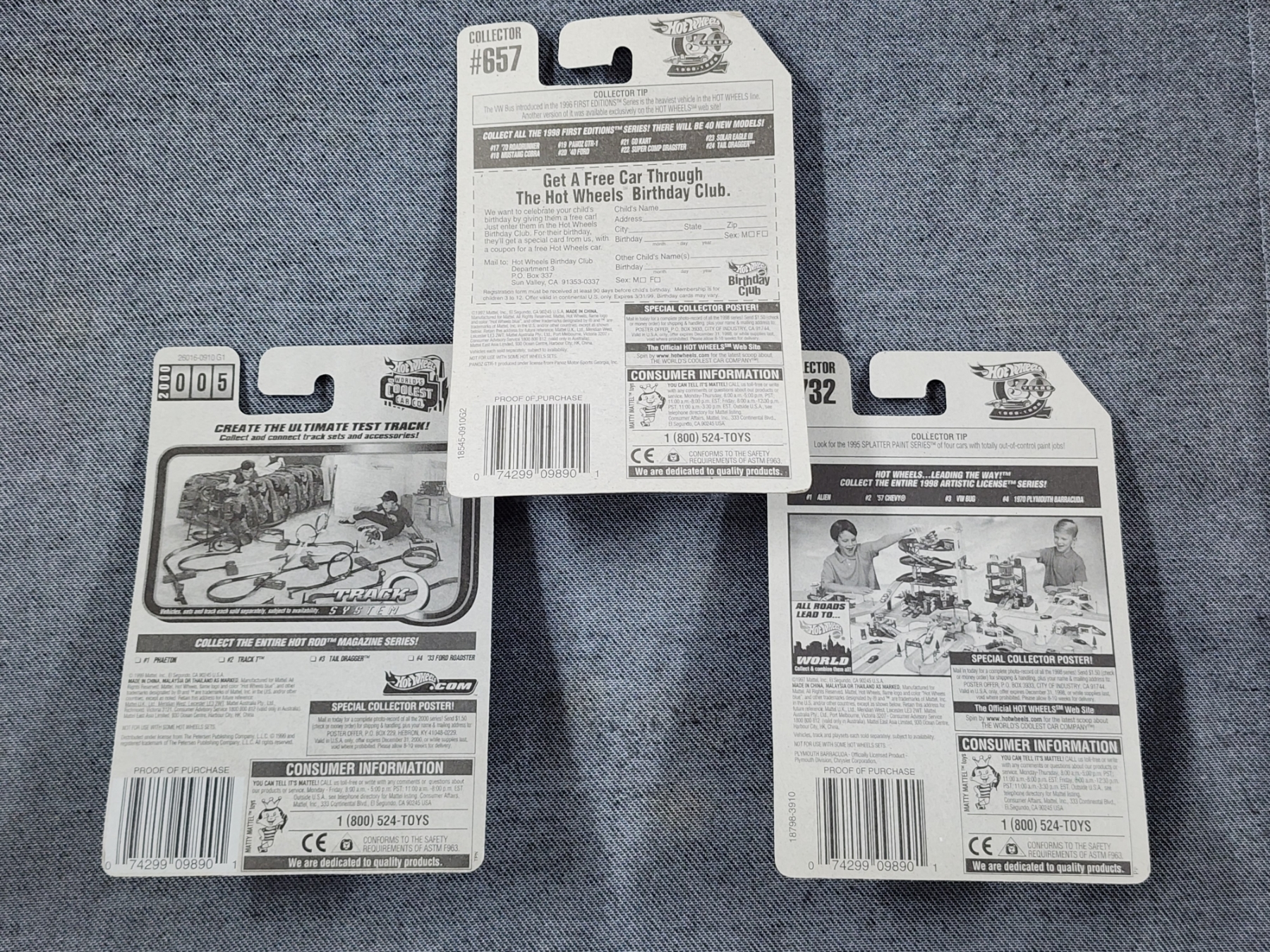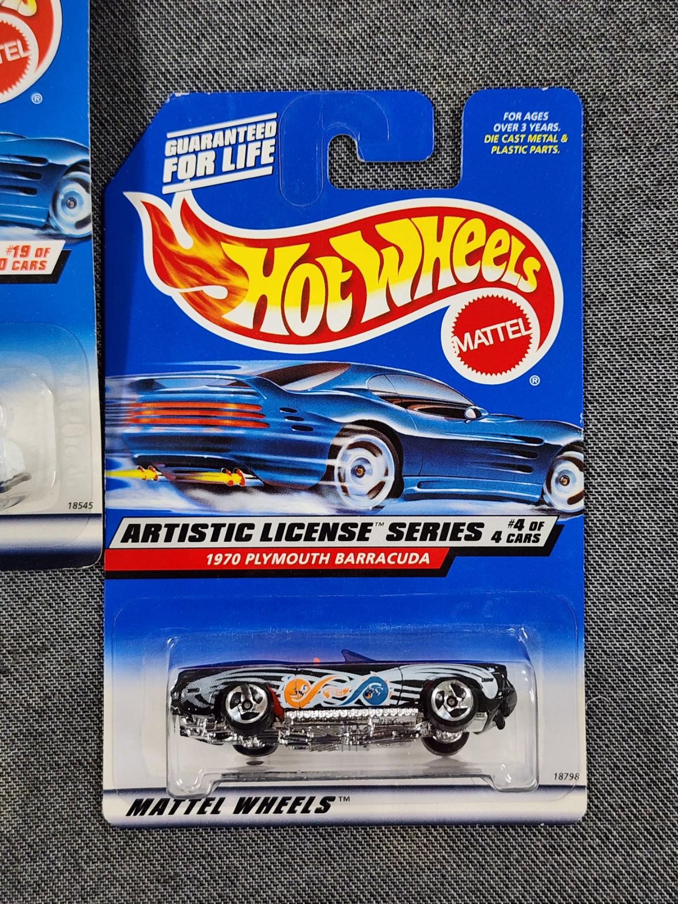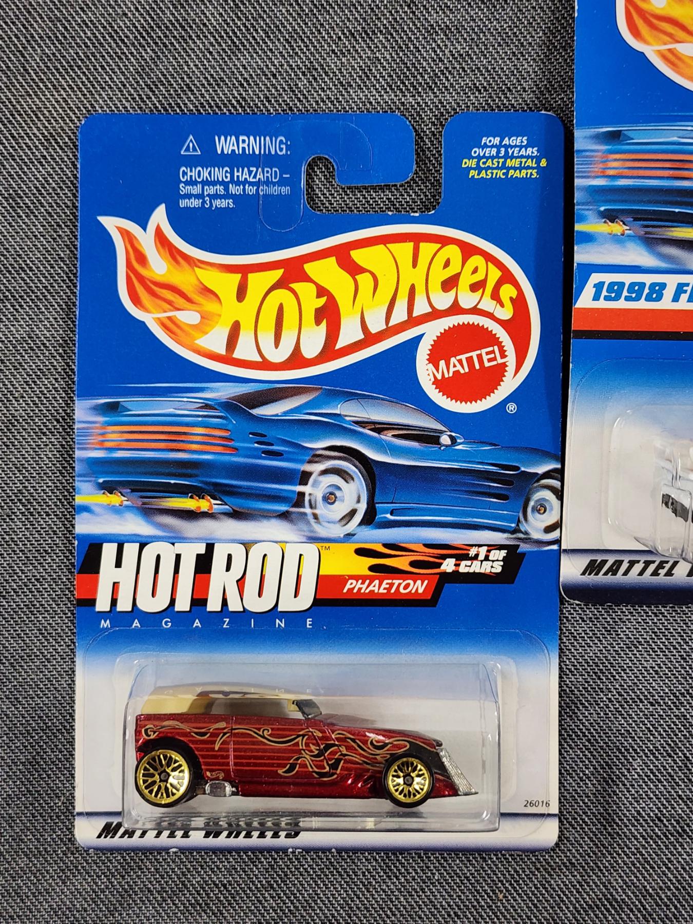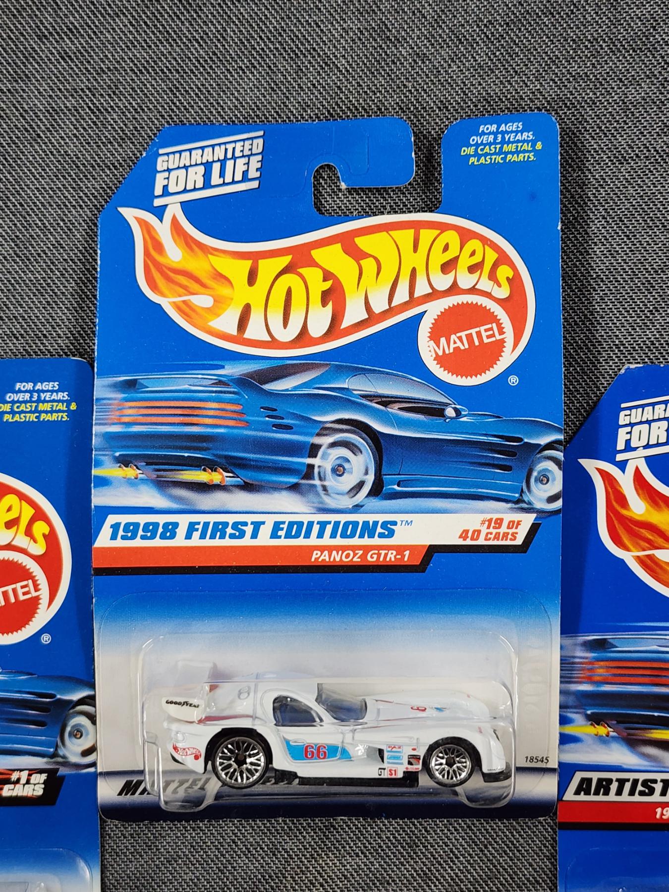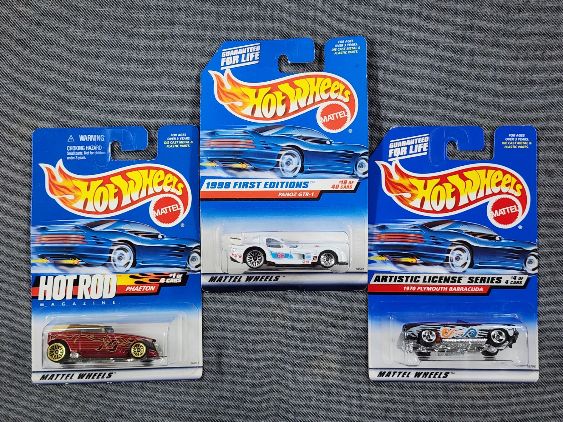 Three NEW IN BOX Mattel Hot Wheels Ft Phaeton, Panoz GTR-1 & Plymouth Barracuda