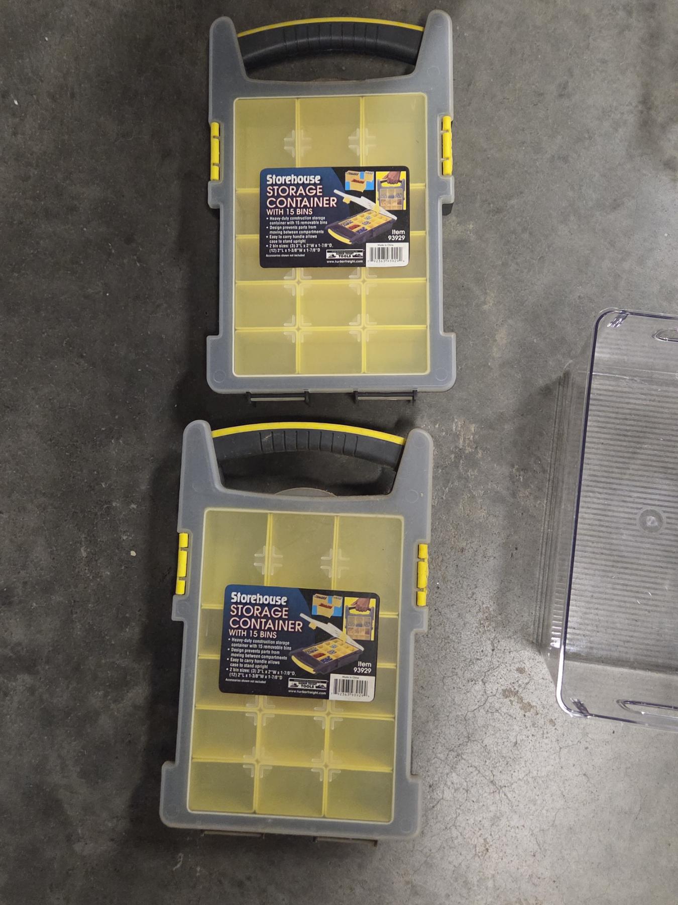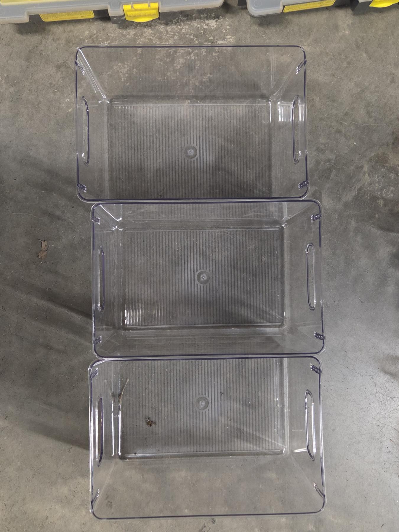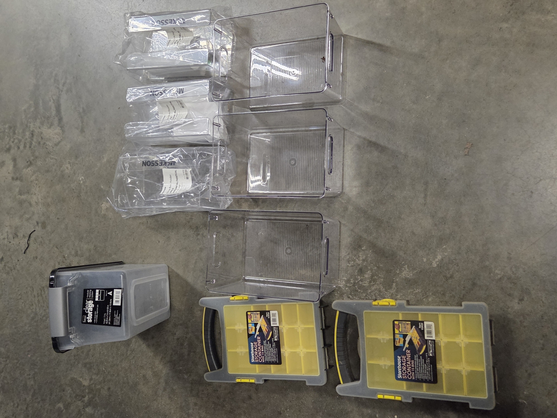 Three New Glove Holder Acrylic Boxes, Three Clear Storage Bins, Two Snap Organizers & 7.5 Quart Container With Lid