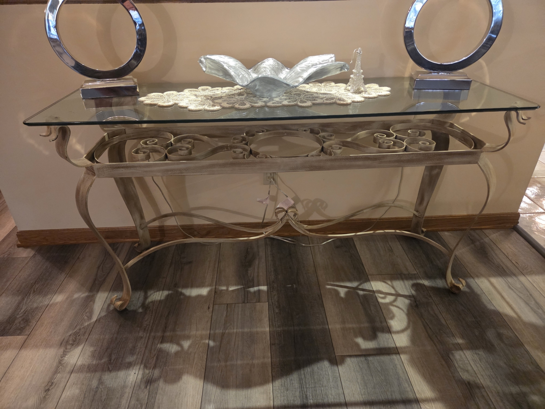 Three Piece Matching, Amazing Glass And Metal Table Group. Elegant Style!