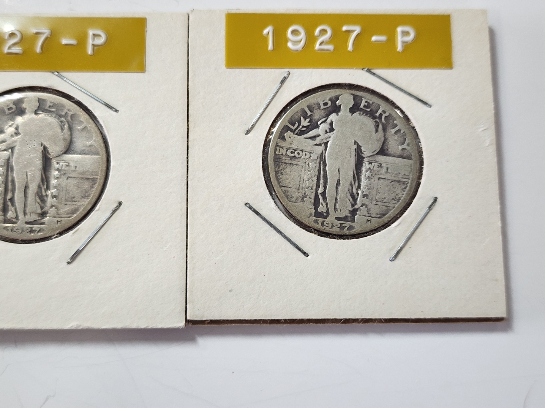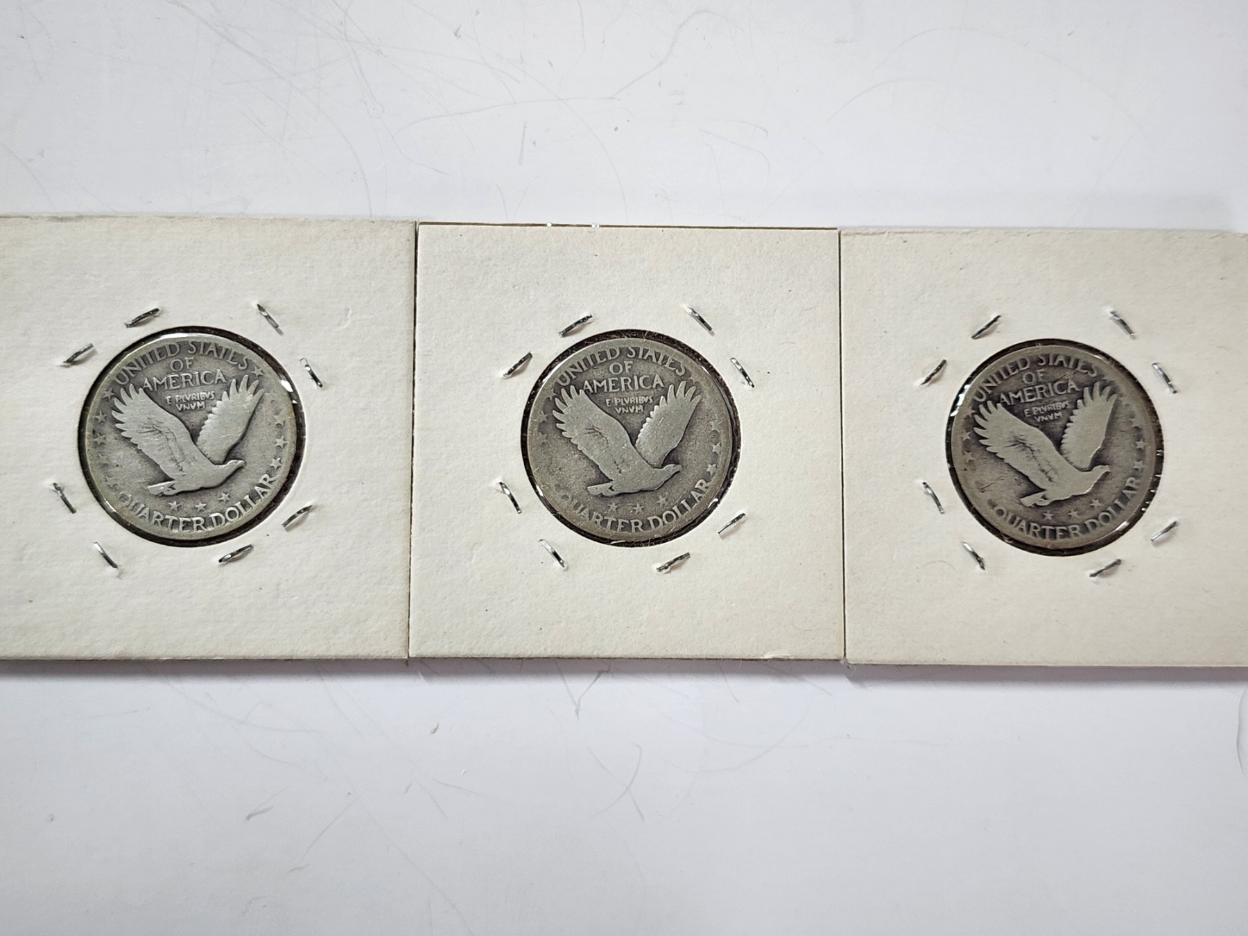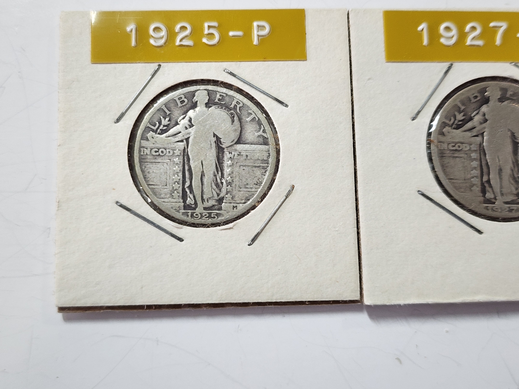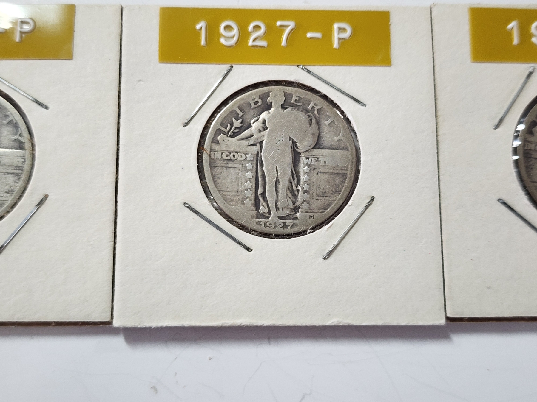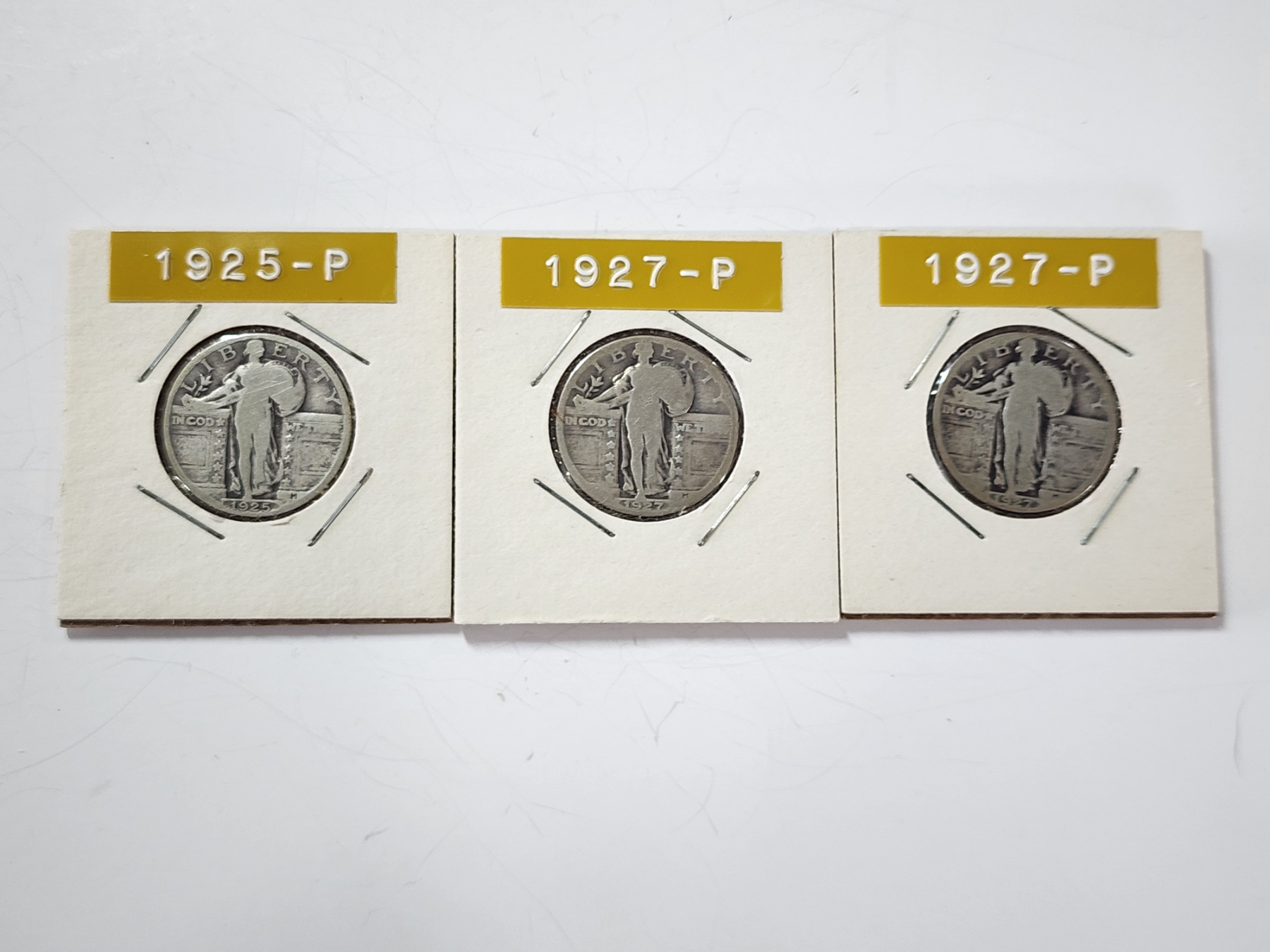 Three U.S. Standing Liberty 90% Silver Quarters: 1925-P, 1927-P, 1927-P FV: $0.75