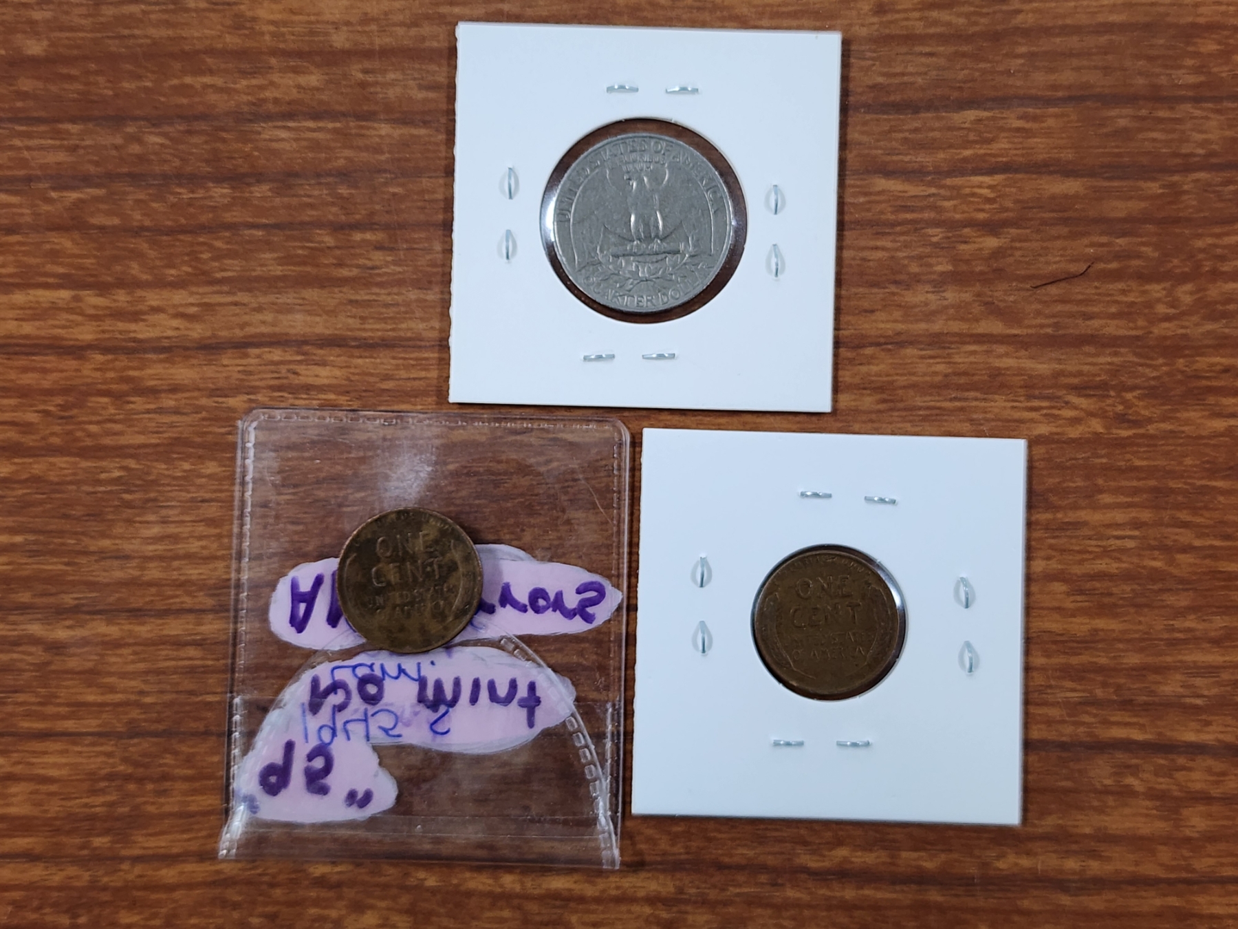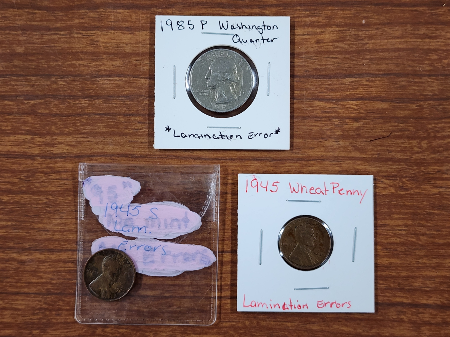 Three United States Mint Error Pennies Featuring Lamination Errors ~ Two Wheat Pennies & A Quarter