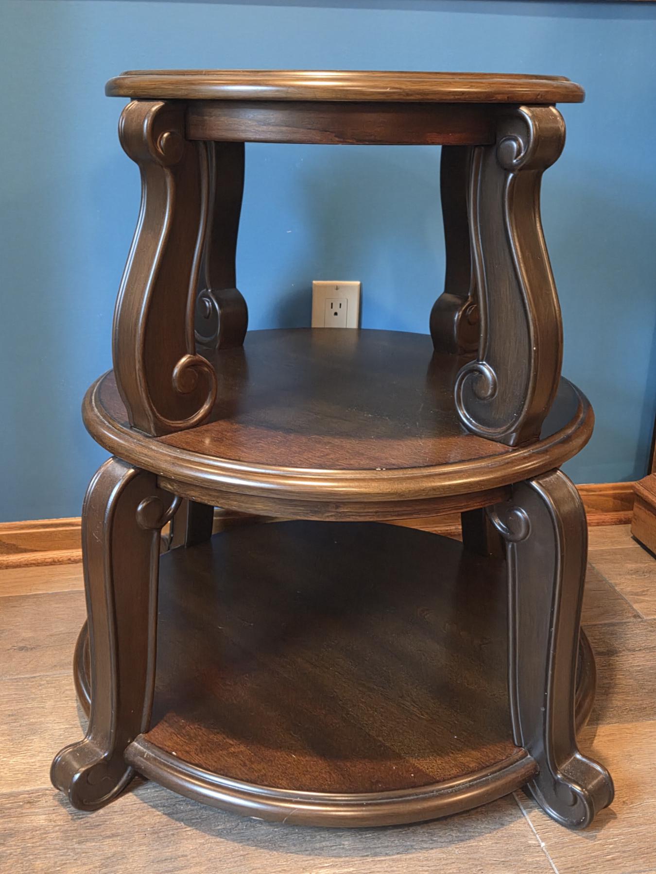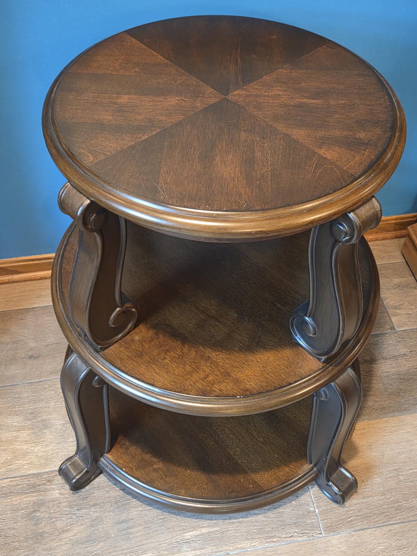 Mahogany Three Shelf Table. Excellent Condition, Measures 24"x27"