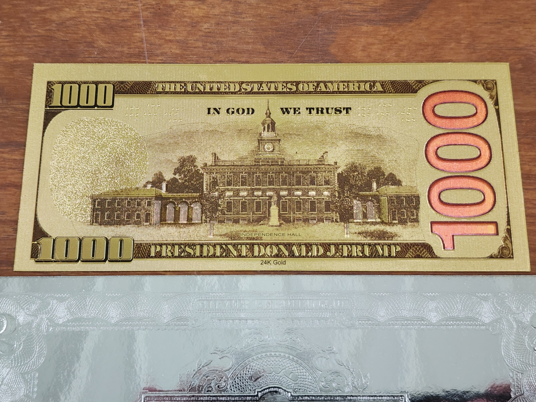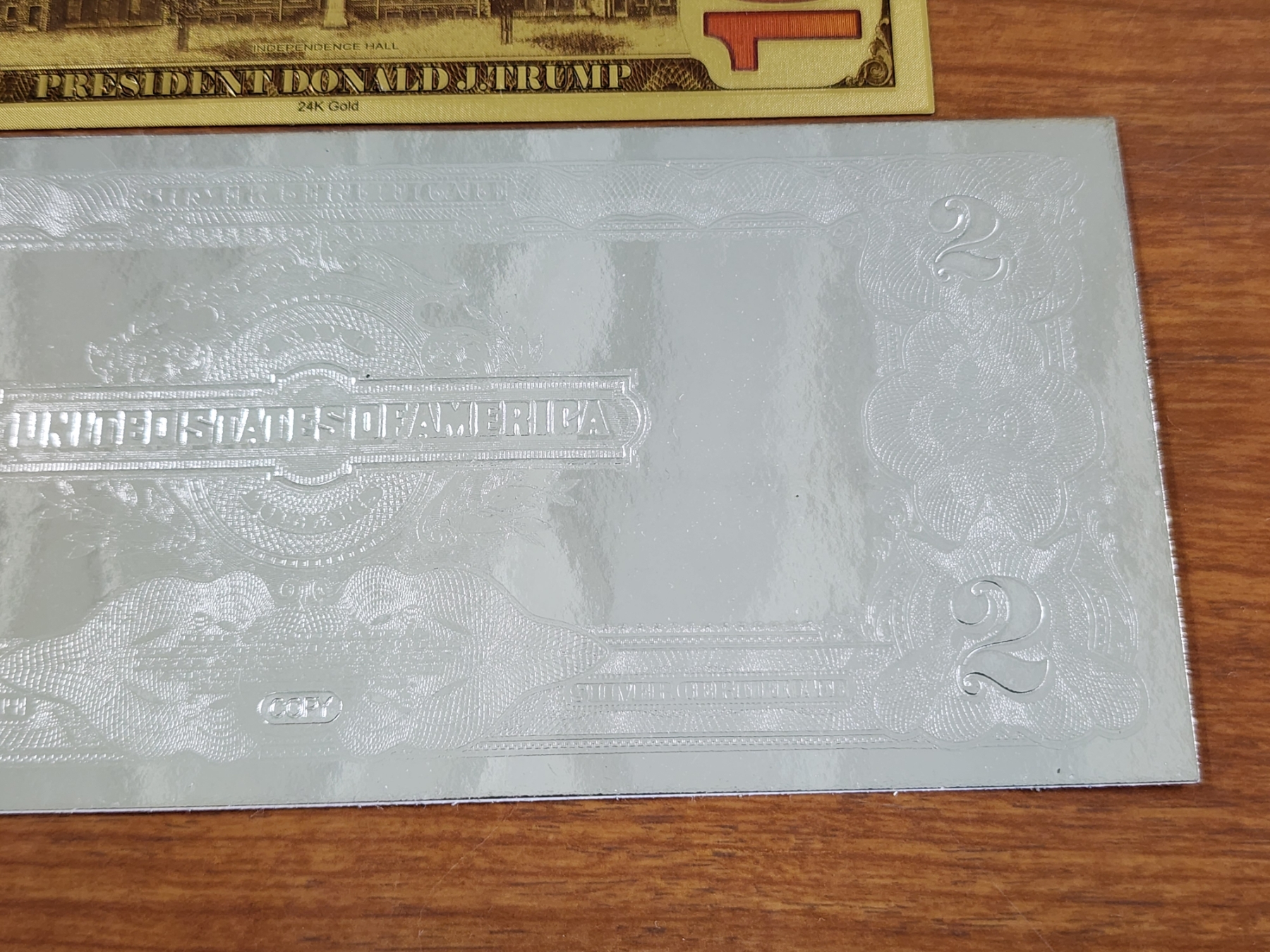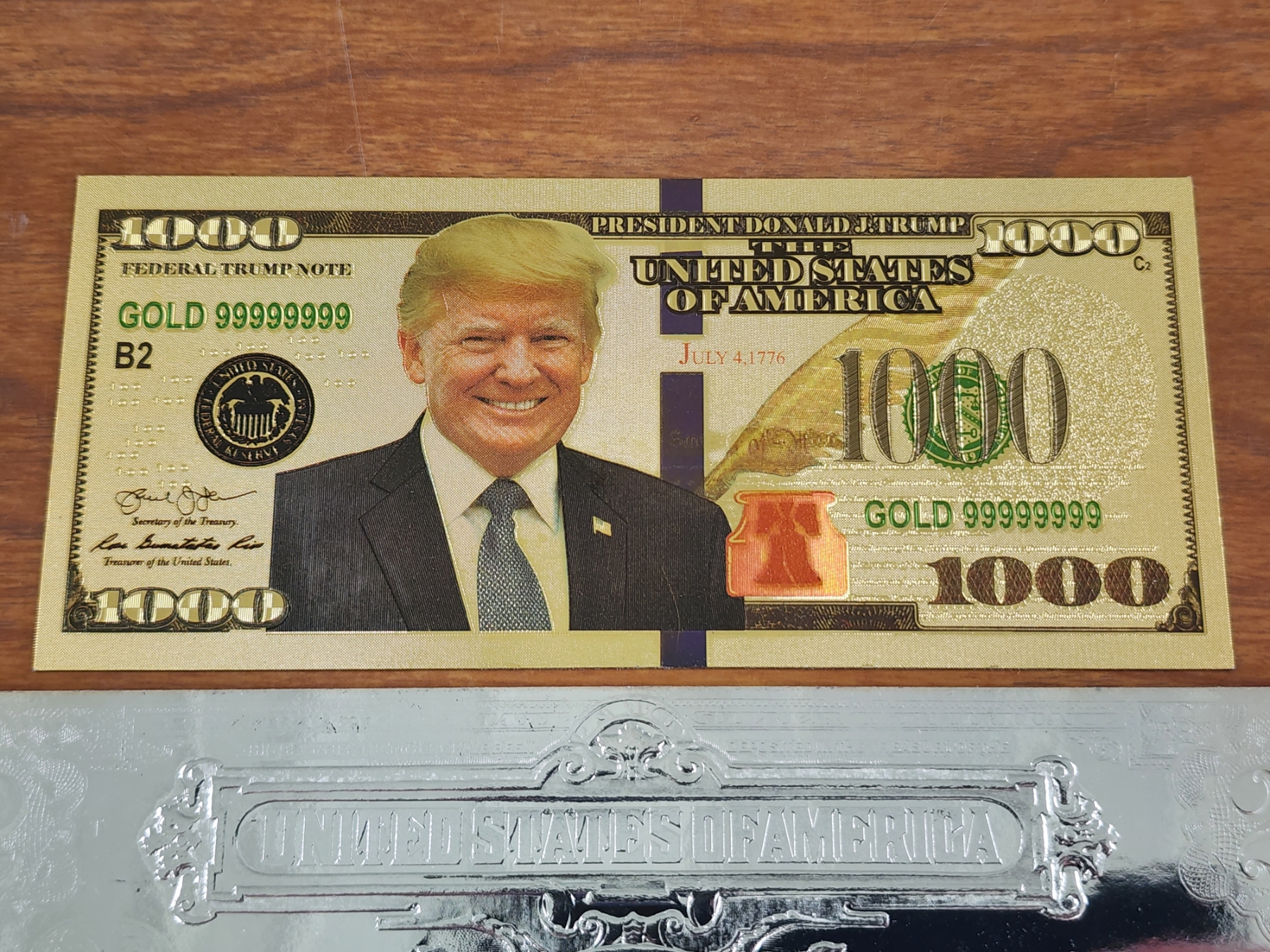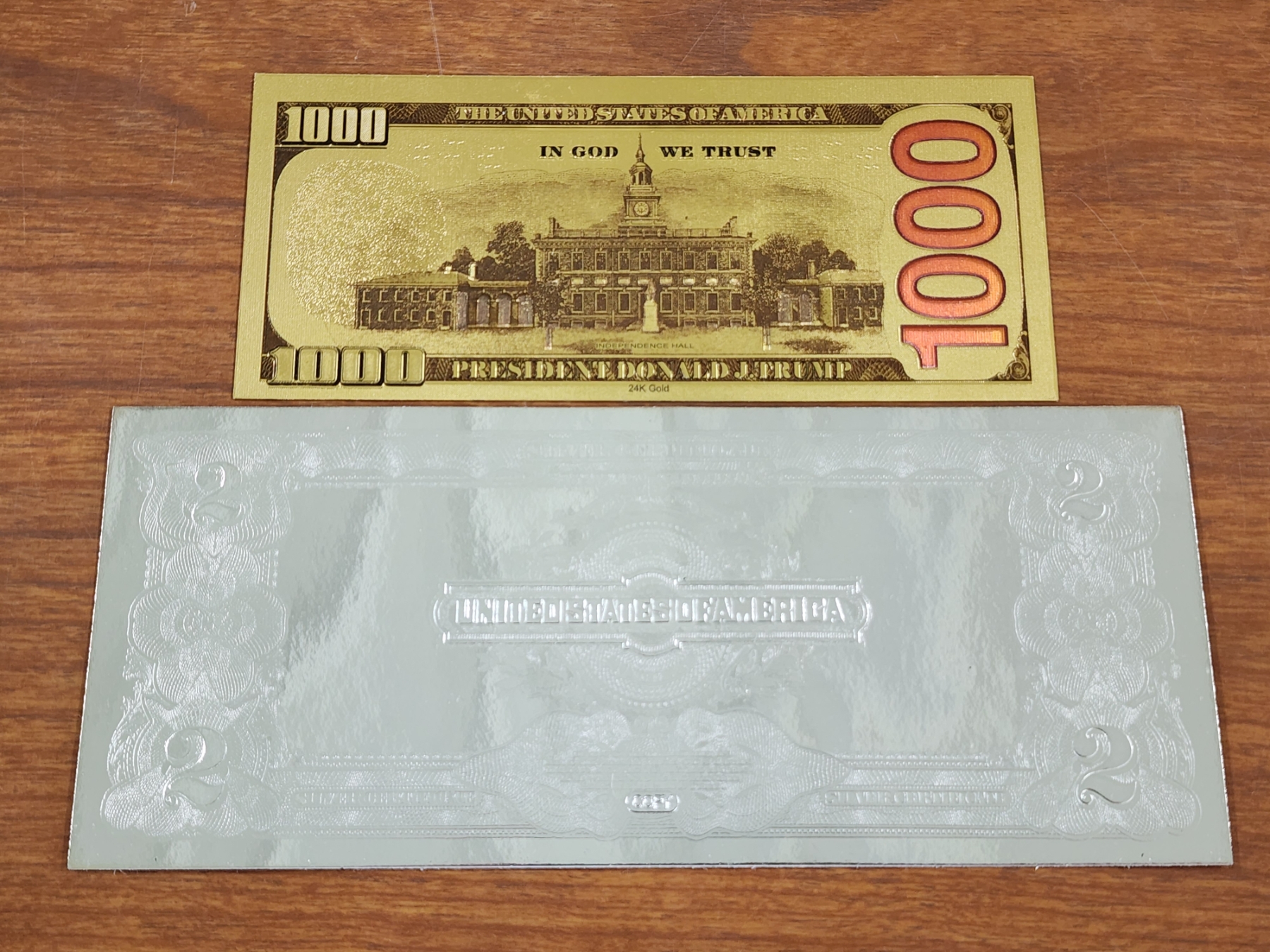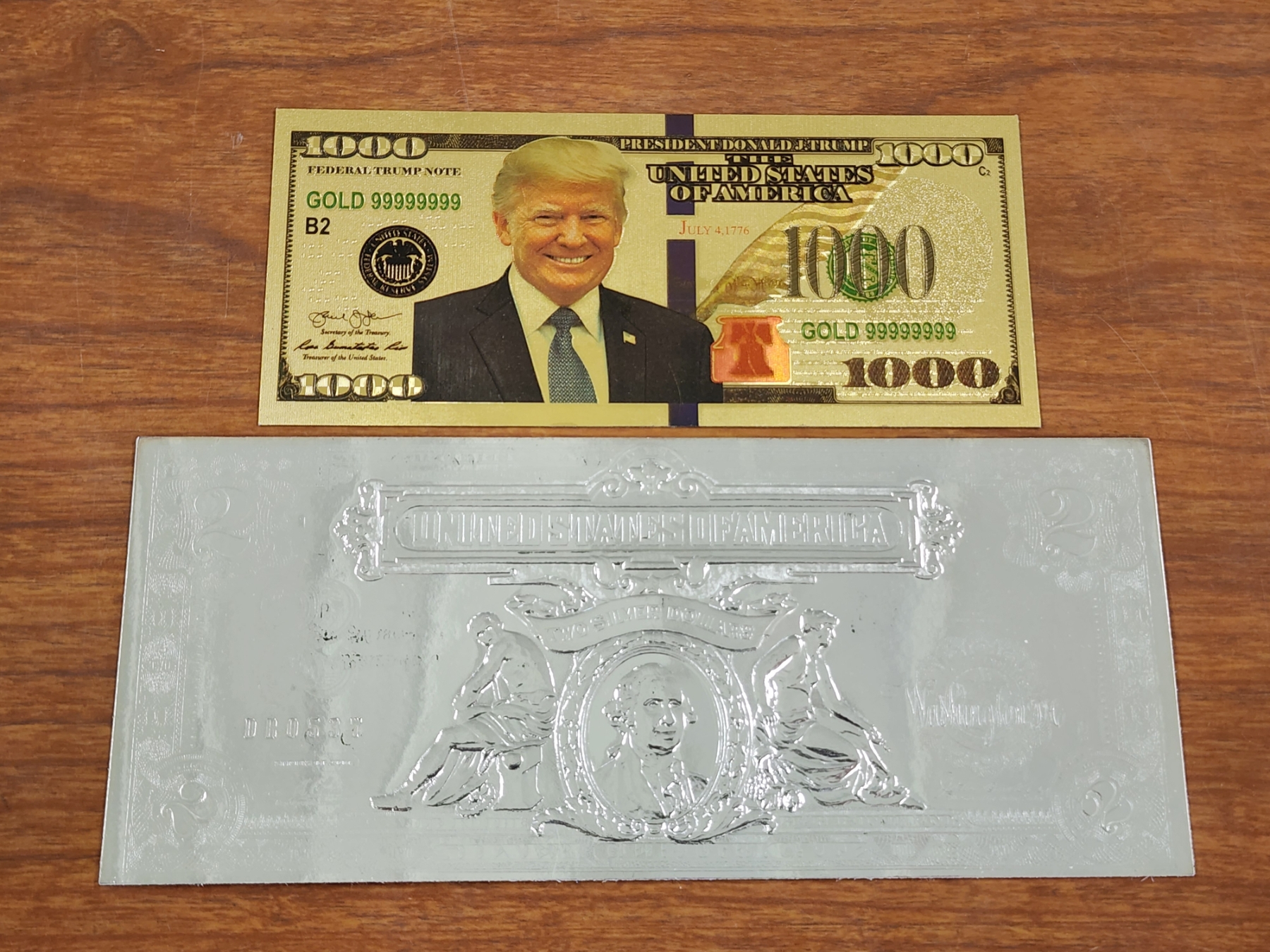 Trump Gold Foil Note With Silver Foil Copy Commemorative Note ~ Two Collectors Notes!