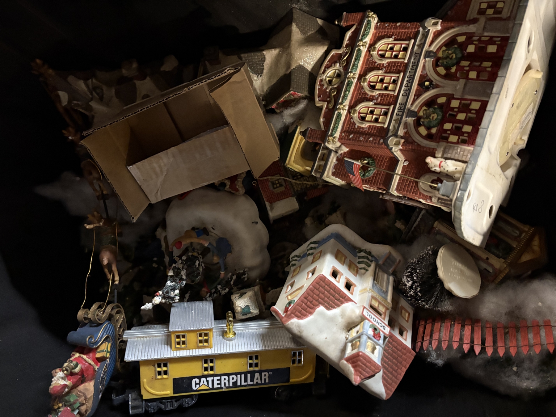 Tub of Christmas Decorations - Houses - Santas - Reindeer - Christmas Trees - Etc.