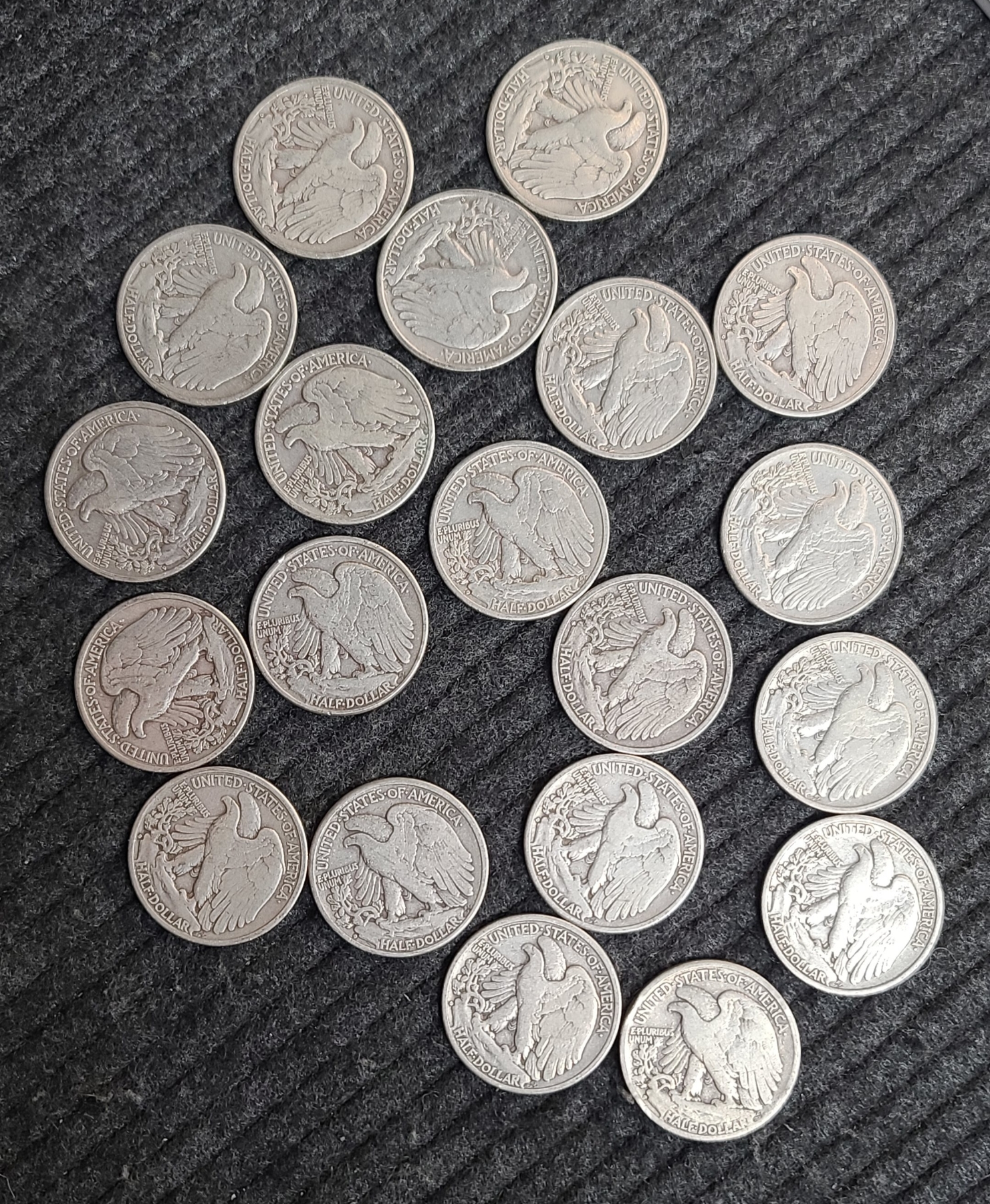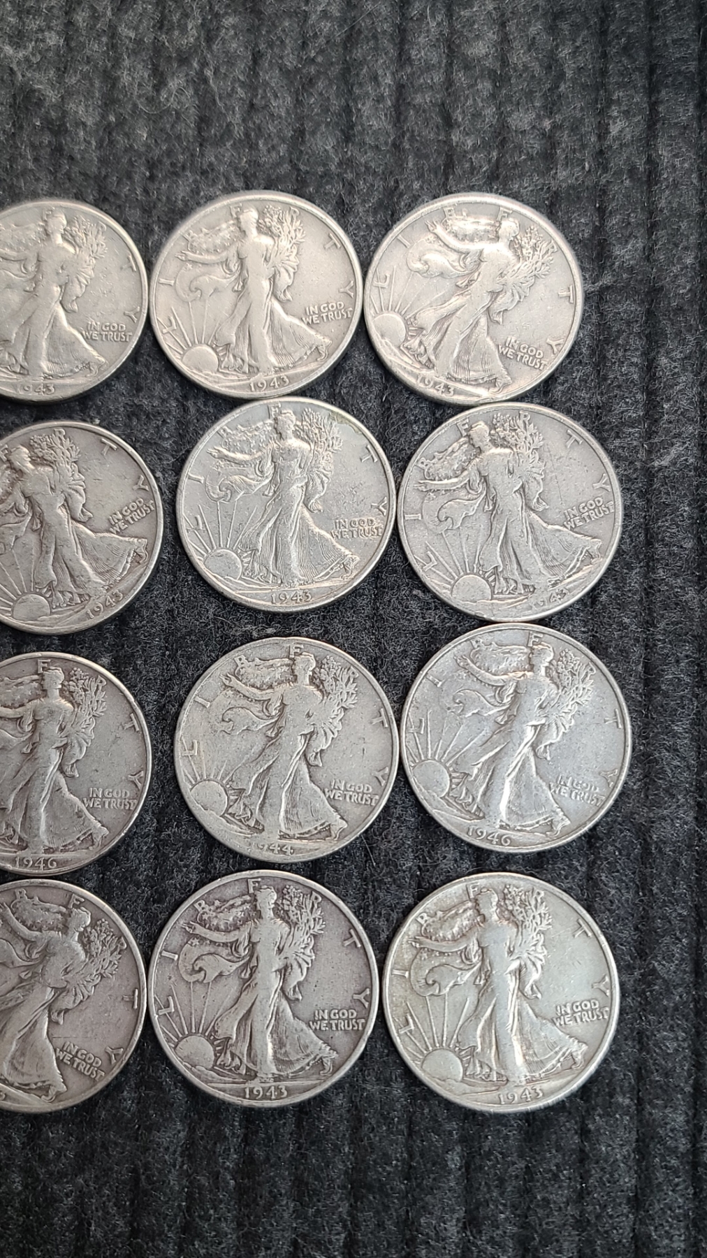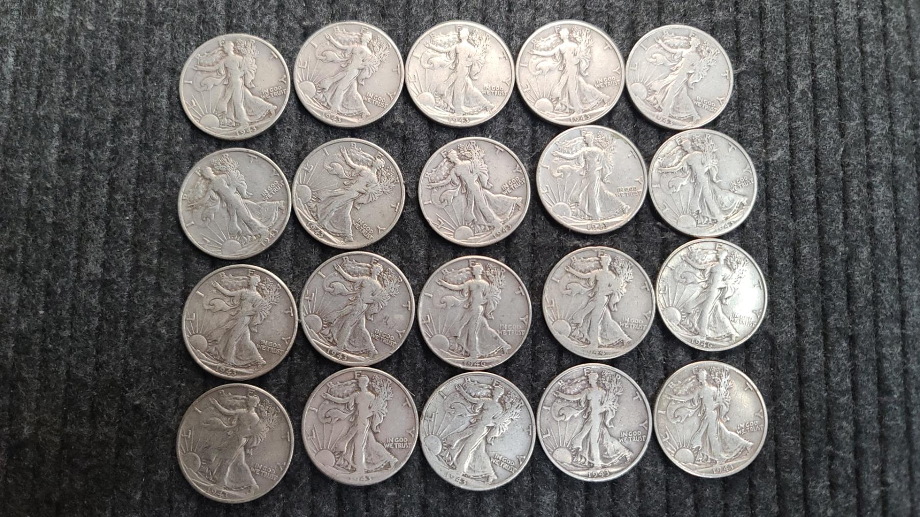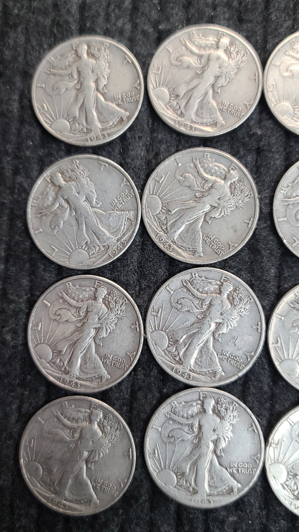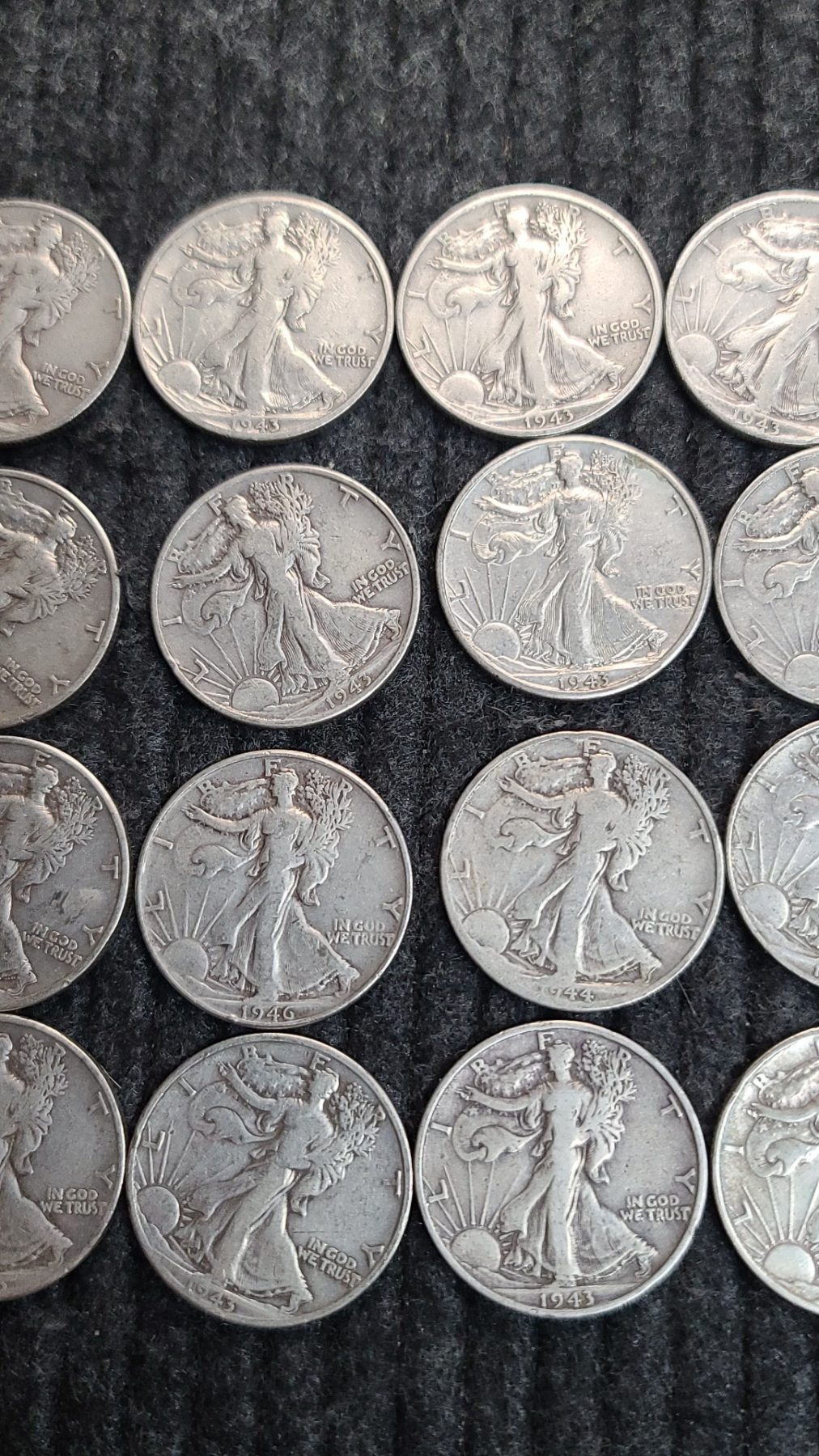 Tube Of (20) Assorted Years Walking Liberty 90% Silver Half Dollars. Years: 1943, 1944, 1946. Most Of Them Are 1943.