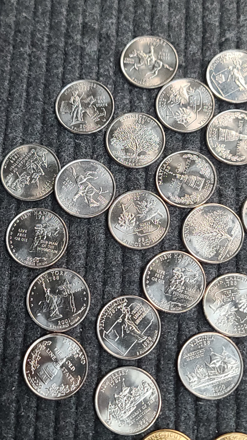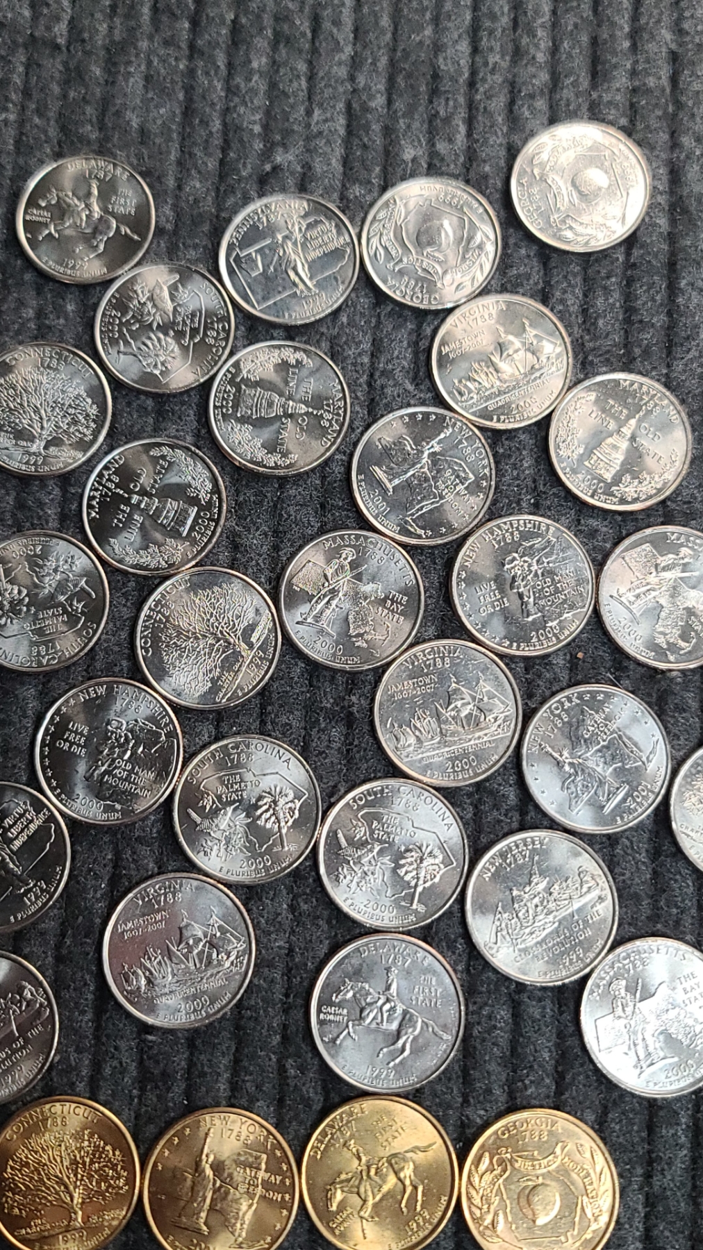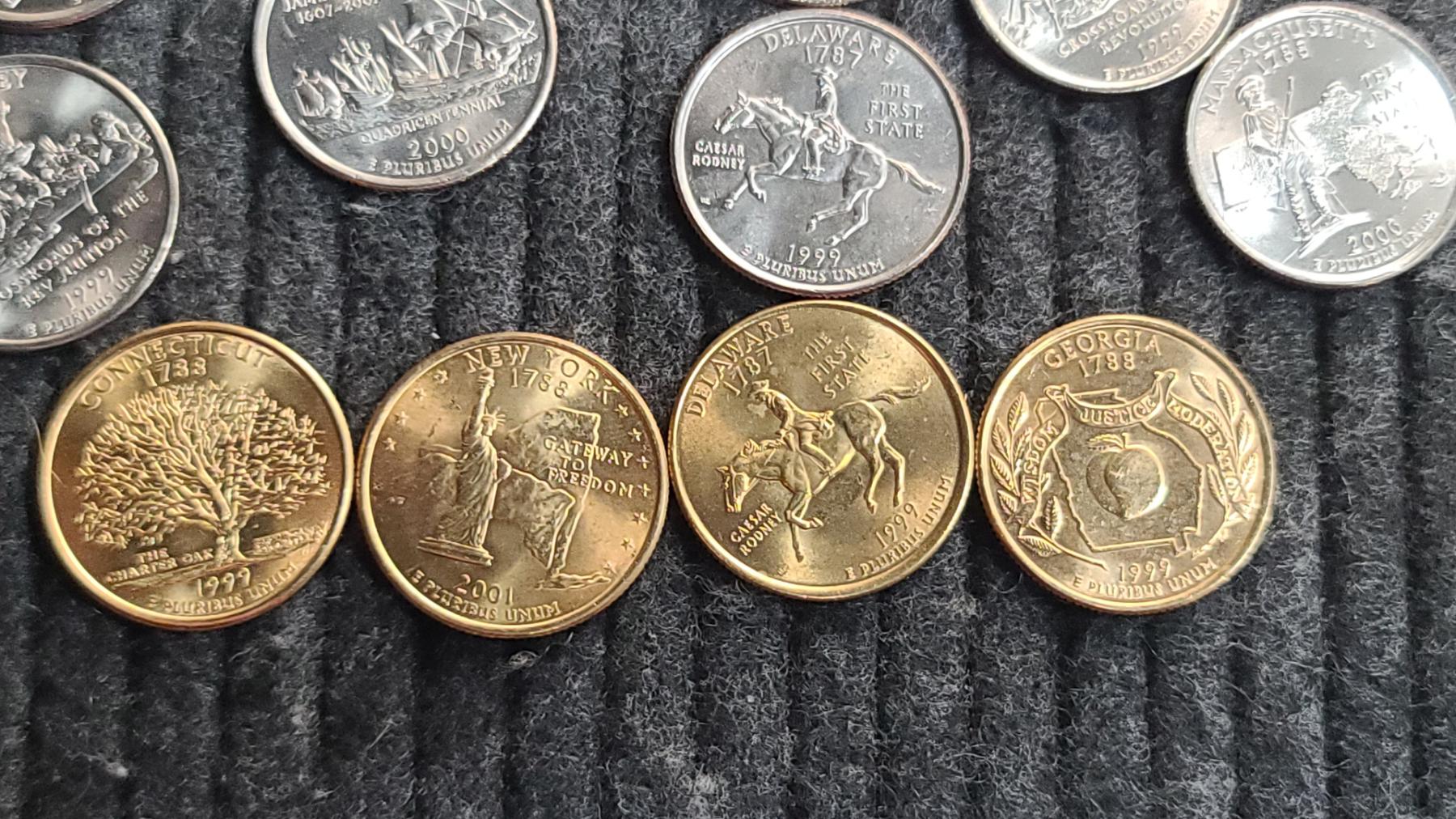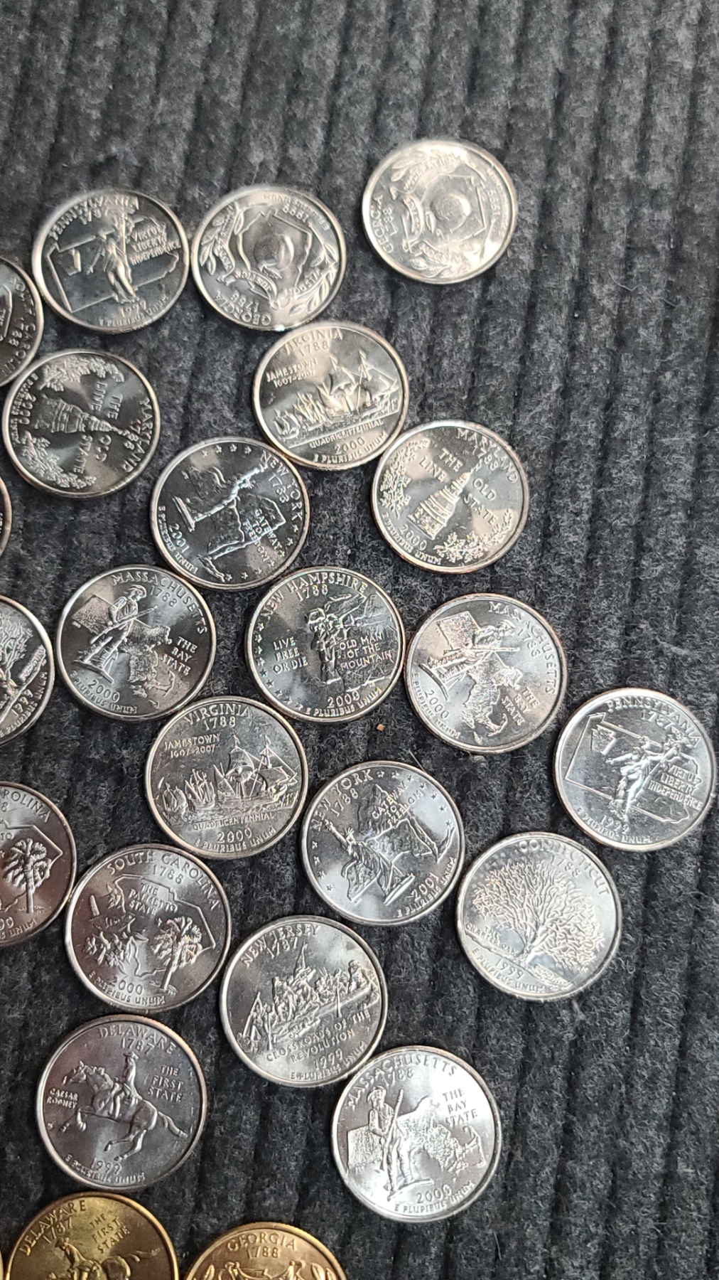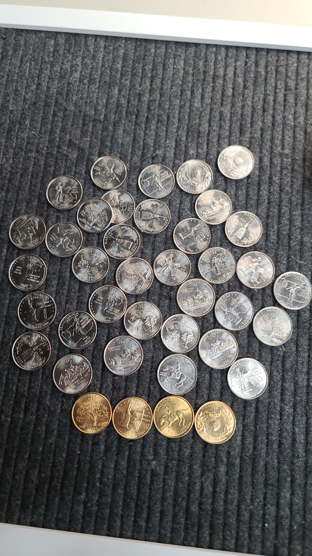 Tube Of (40) Assorted United States State Quarters (4) Are Gold Plated Face Value: $10