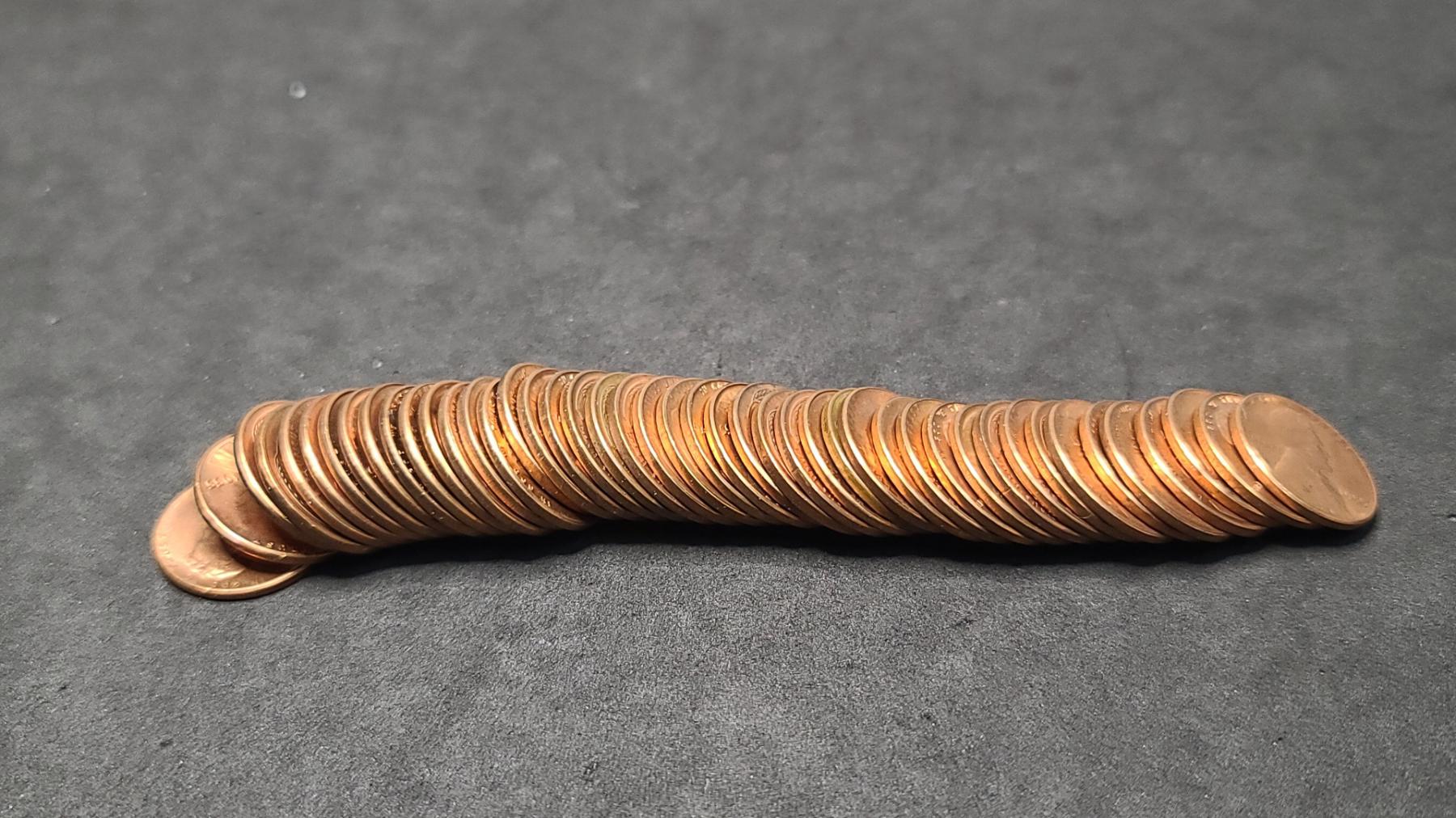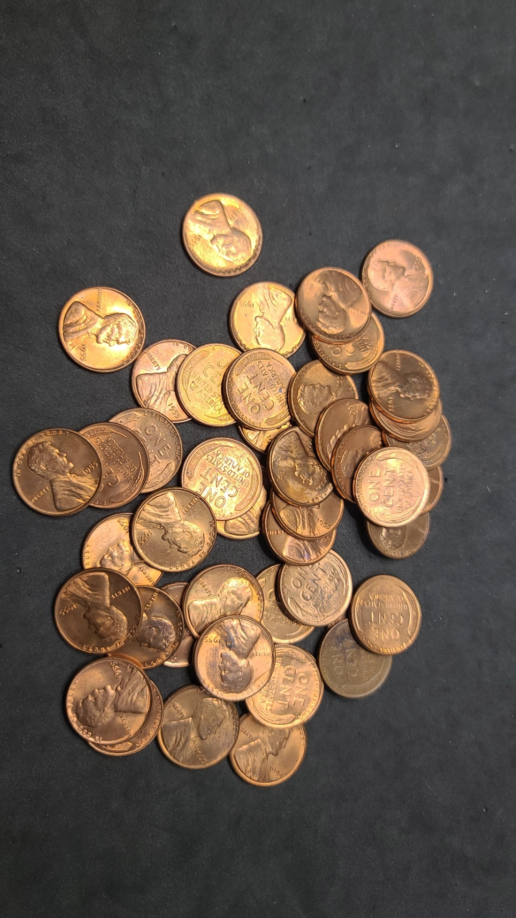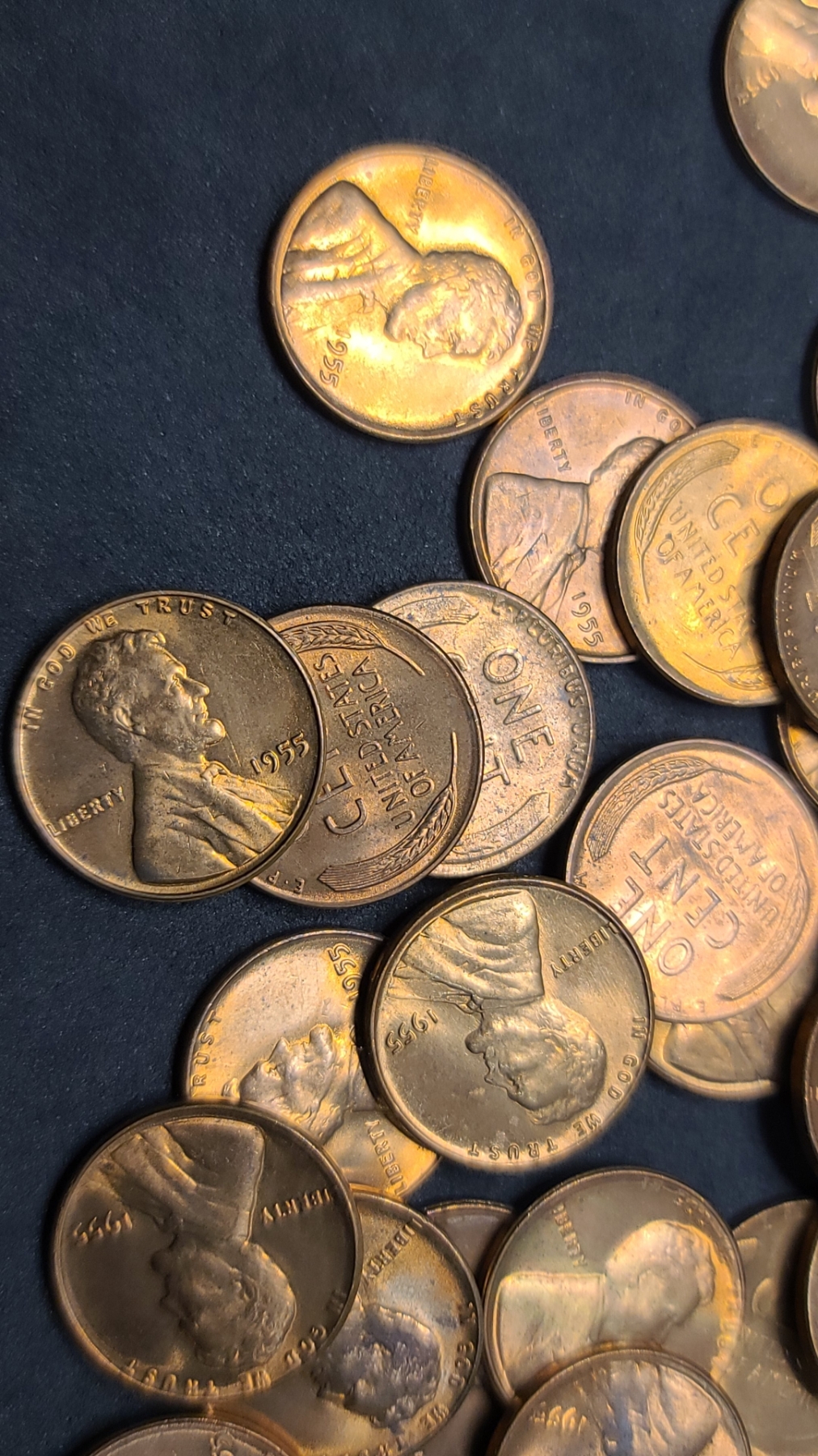 Tube Of (45) 1955 Lincoln Wheat Ear Pennies - Face Value: $0.45