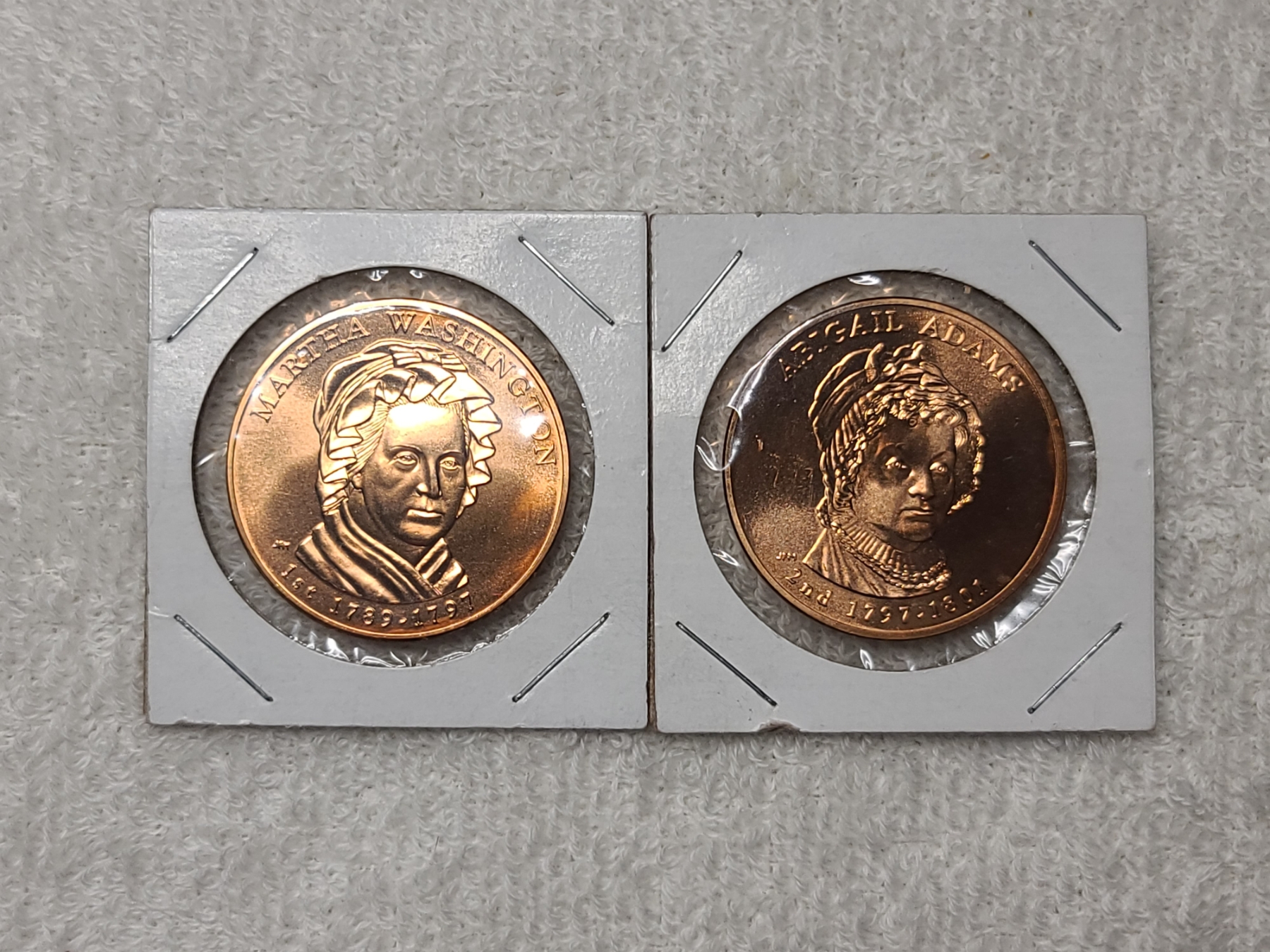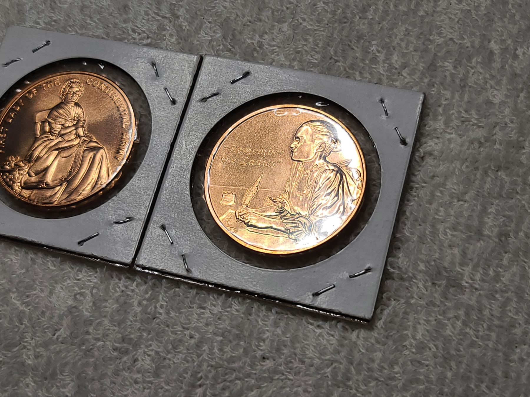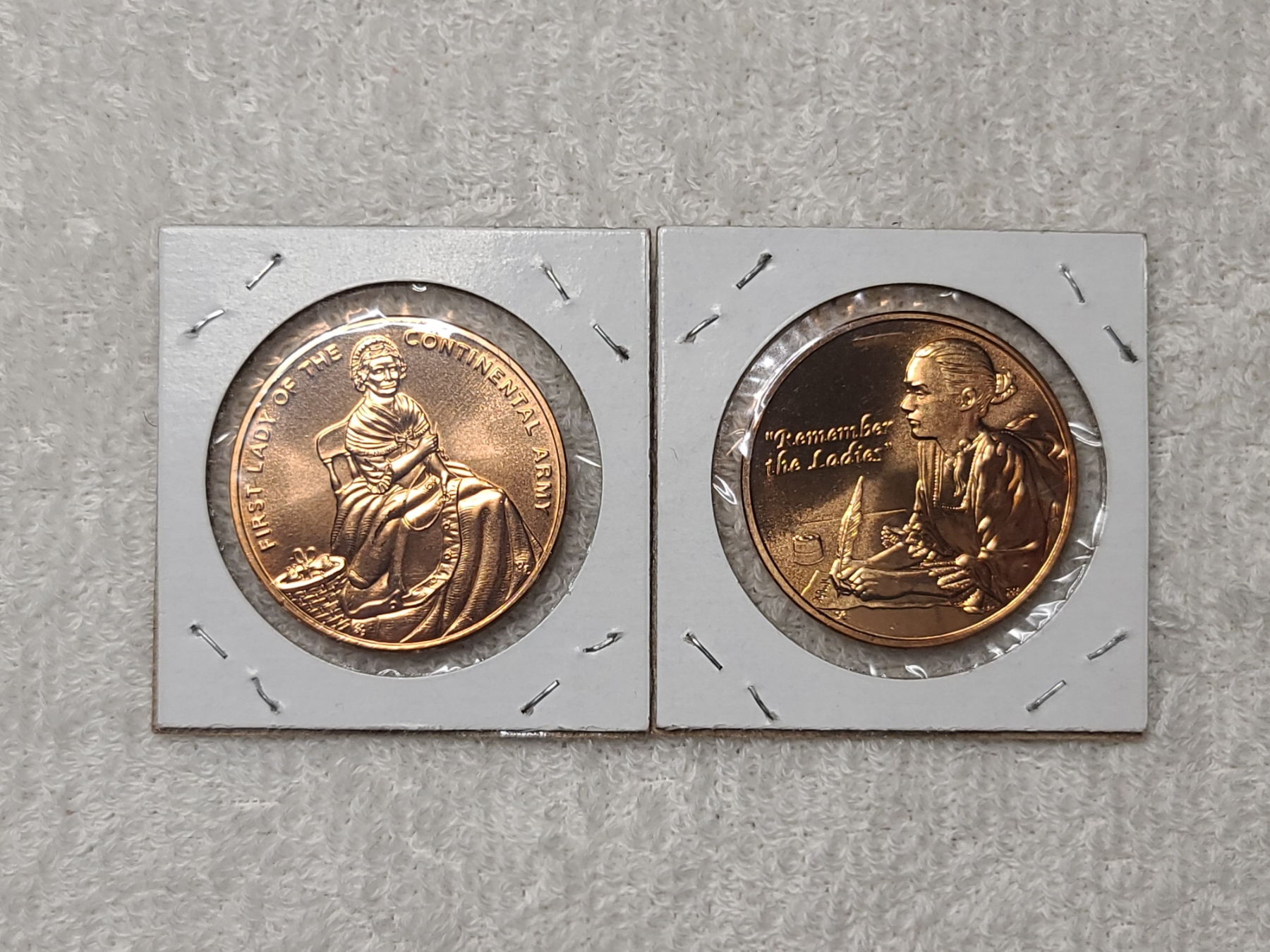 Two - 1 Oz Copper First Lady Rounds Martha Washington & Abigail Adams