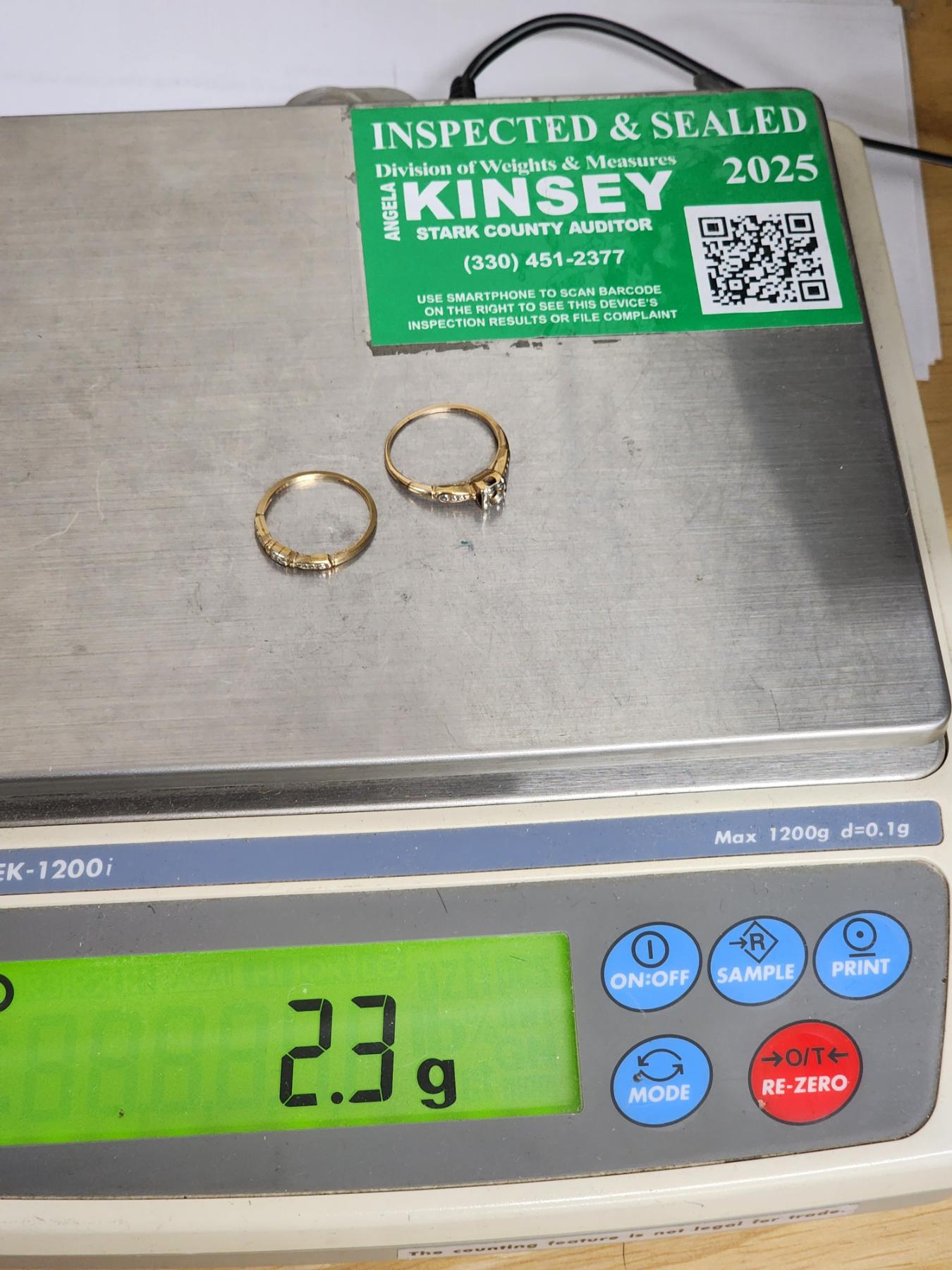 Two 14K Gold Rings Weighing About 2.3 Grams - Sized 5.5 & 6.5