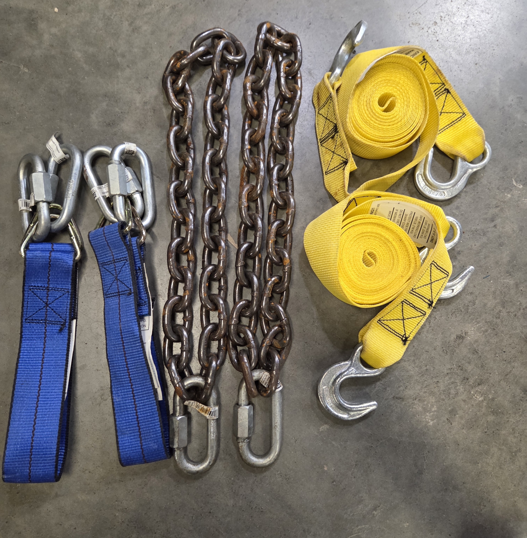 Two 15' Tow Straps, Two 34'' Chains, & Two 24'' Straps With Hooks