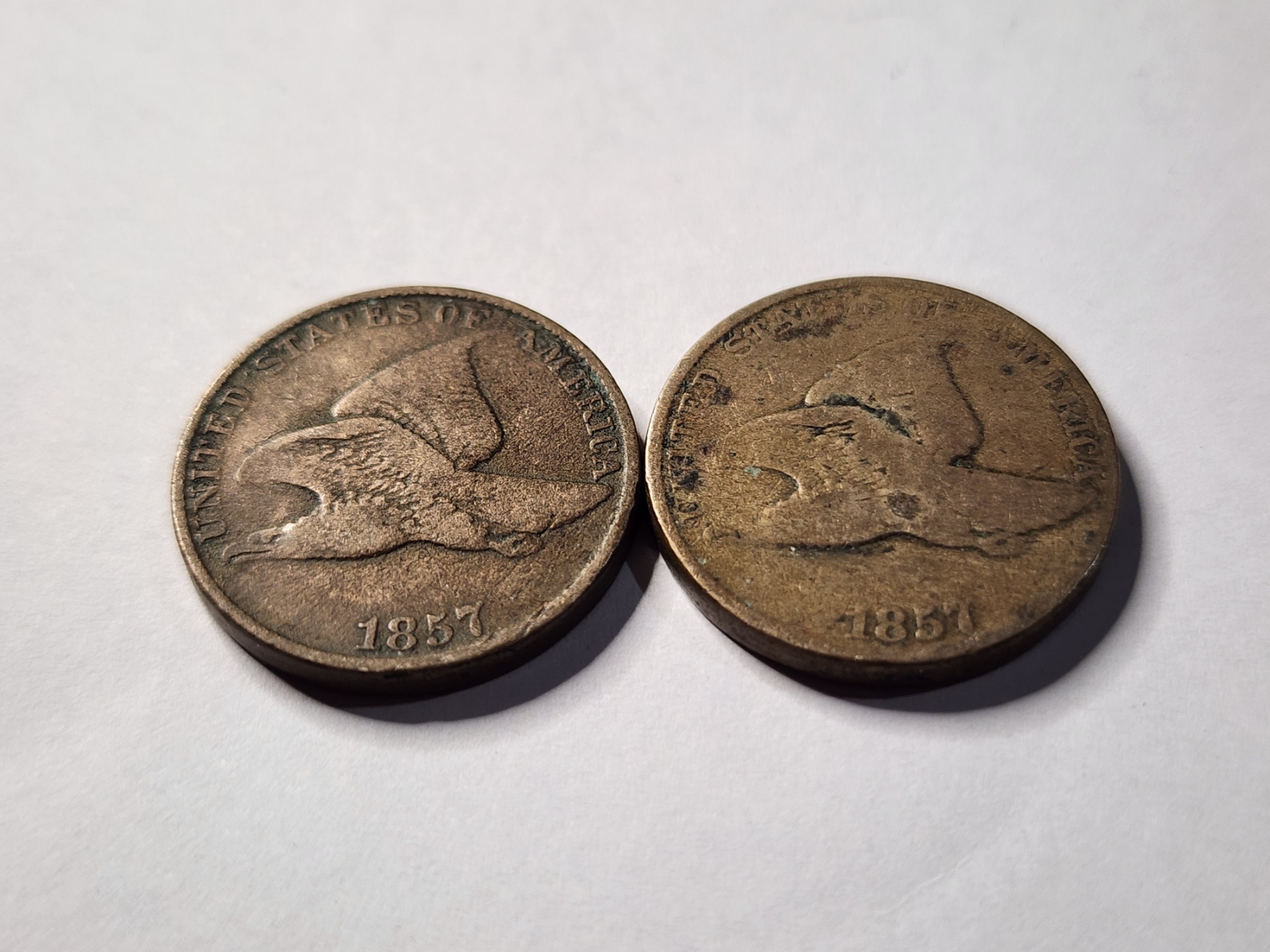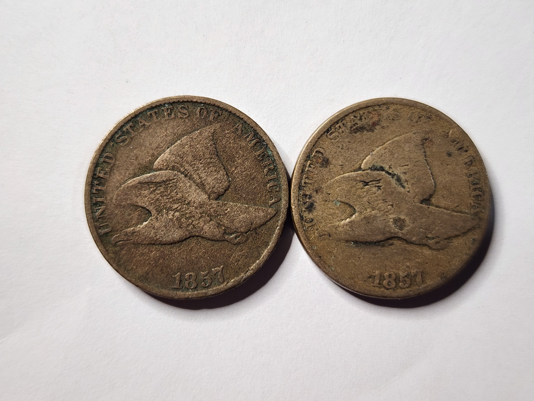 Two 1857 Flying Eagle Pennies