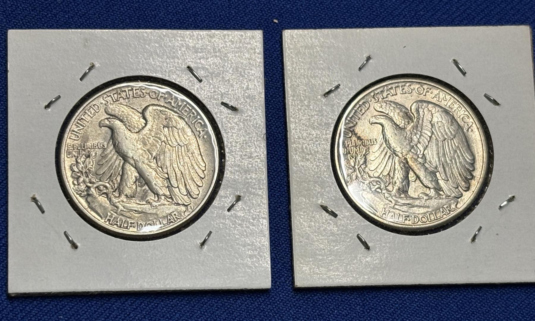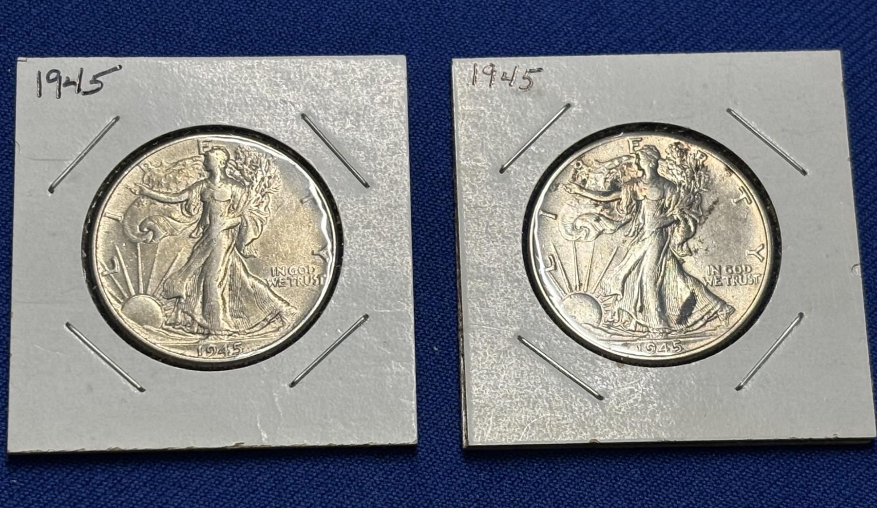 Two 1945 90% Silver Walking Liberty Half Dollars