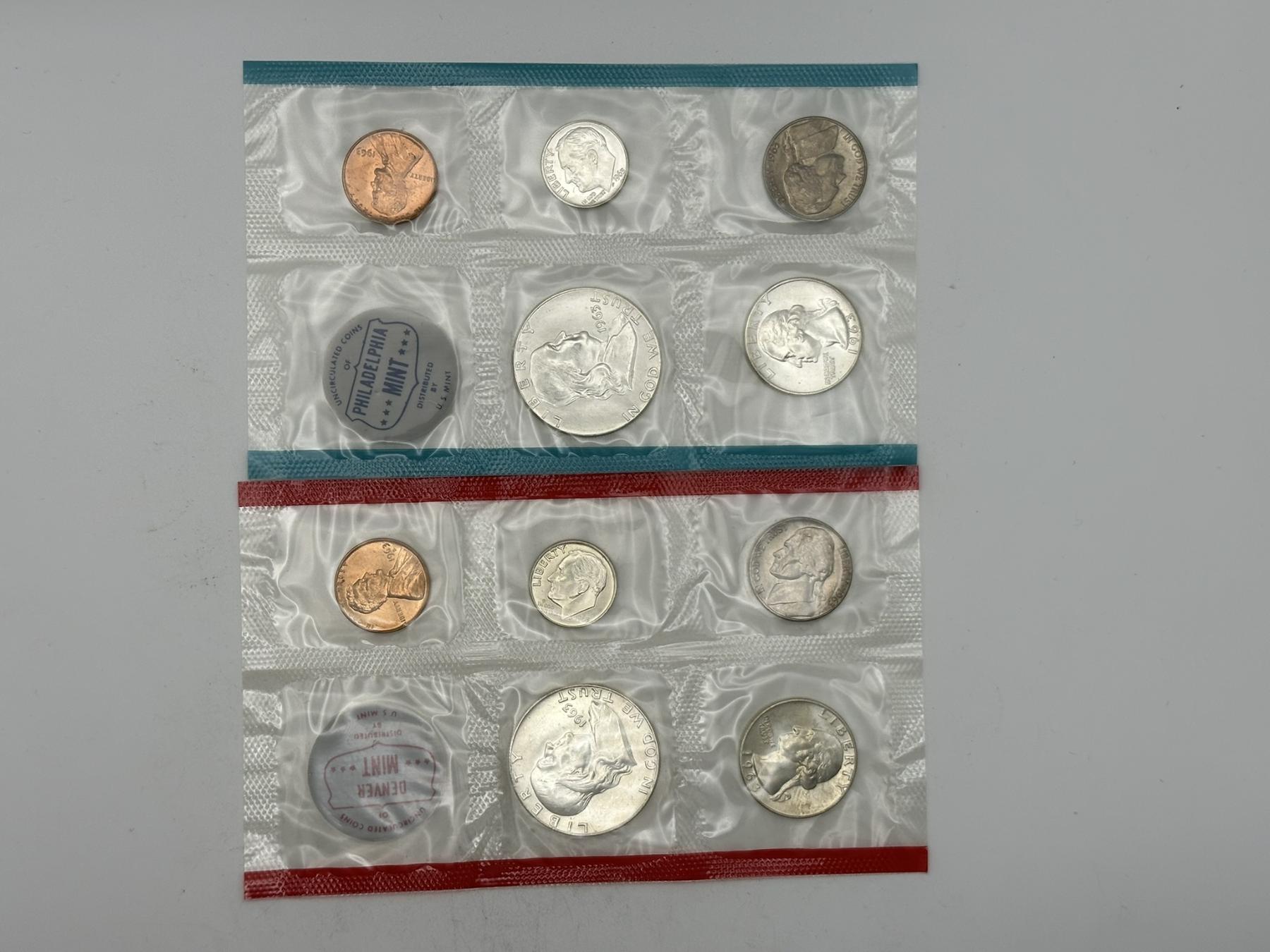 Two 1963 United States Silver Proof Sets in Original Package - Includes Both Philadelphia and Denver