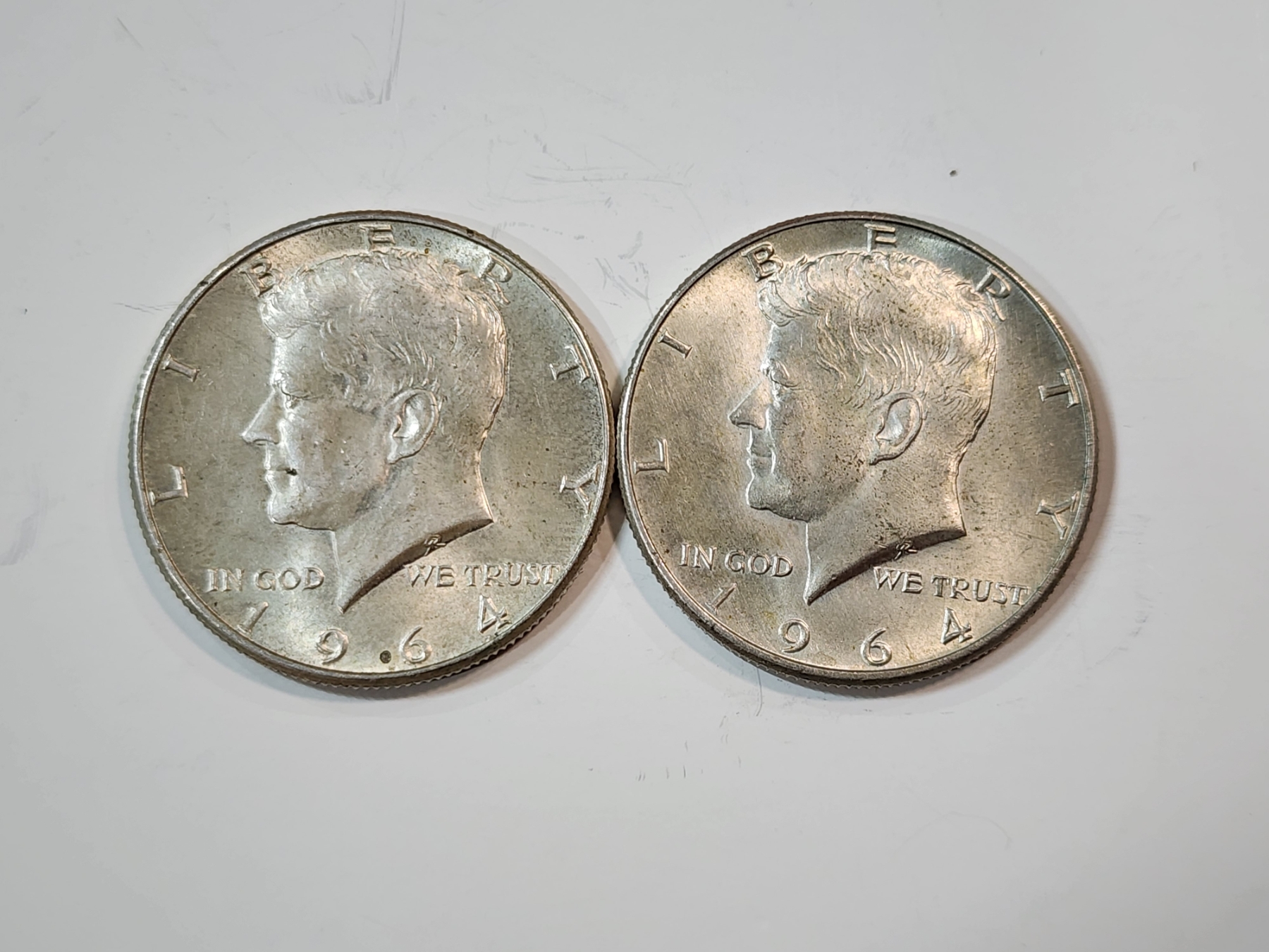 Two 1964 90% Silver Kennedy Half Dollars FV: $1.00