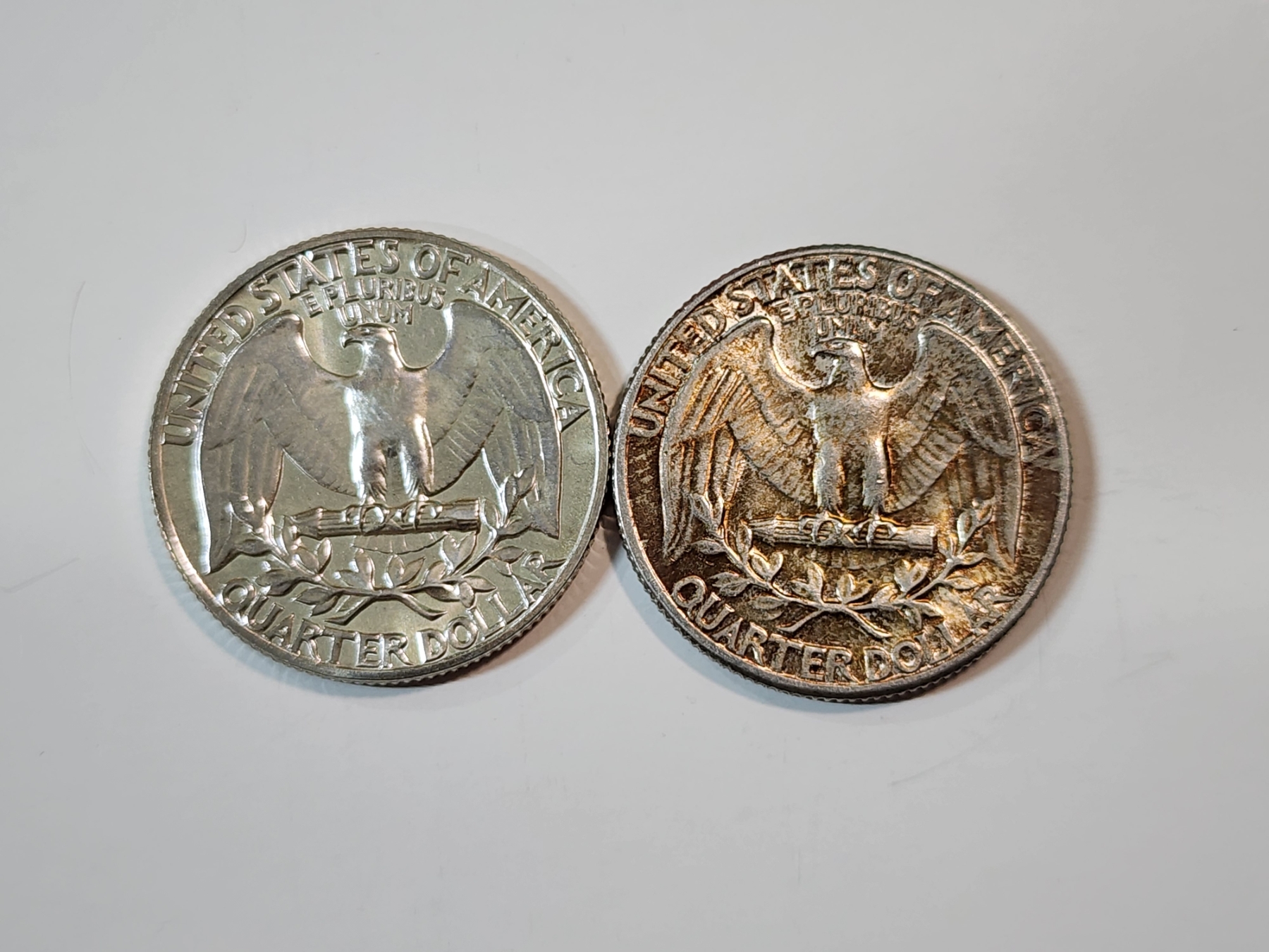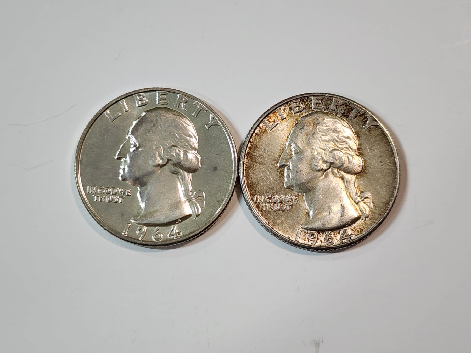 Two 1964 90% Silver Washington Quarters FV: $0.50