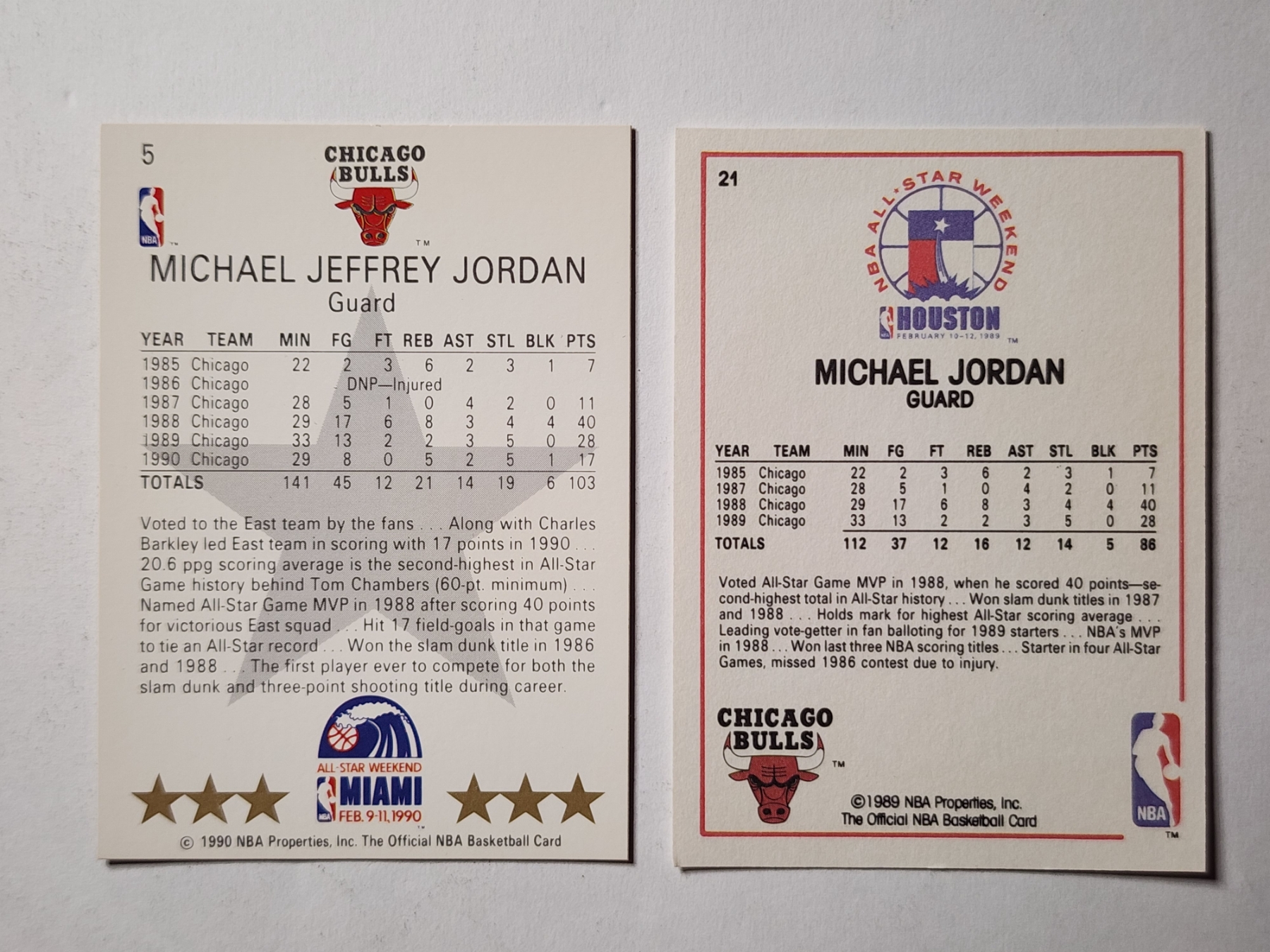 Two 1990 Michael Jordan NBA Basketball Trading Cards ~ Both In Near Mint Condition!