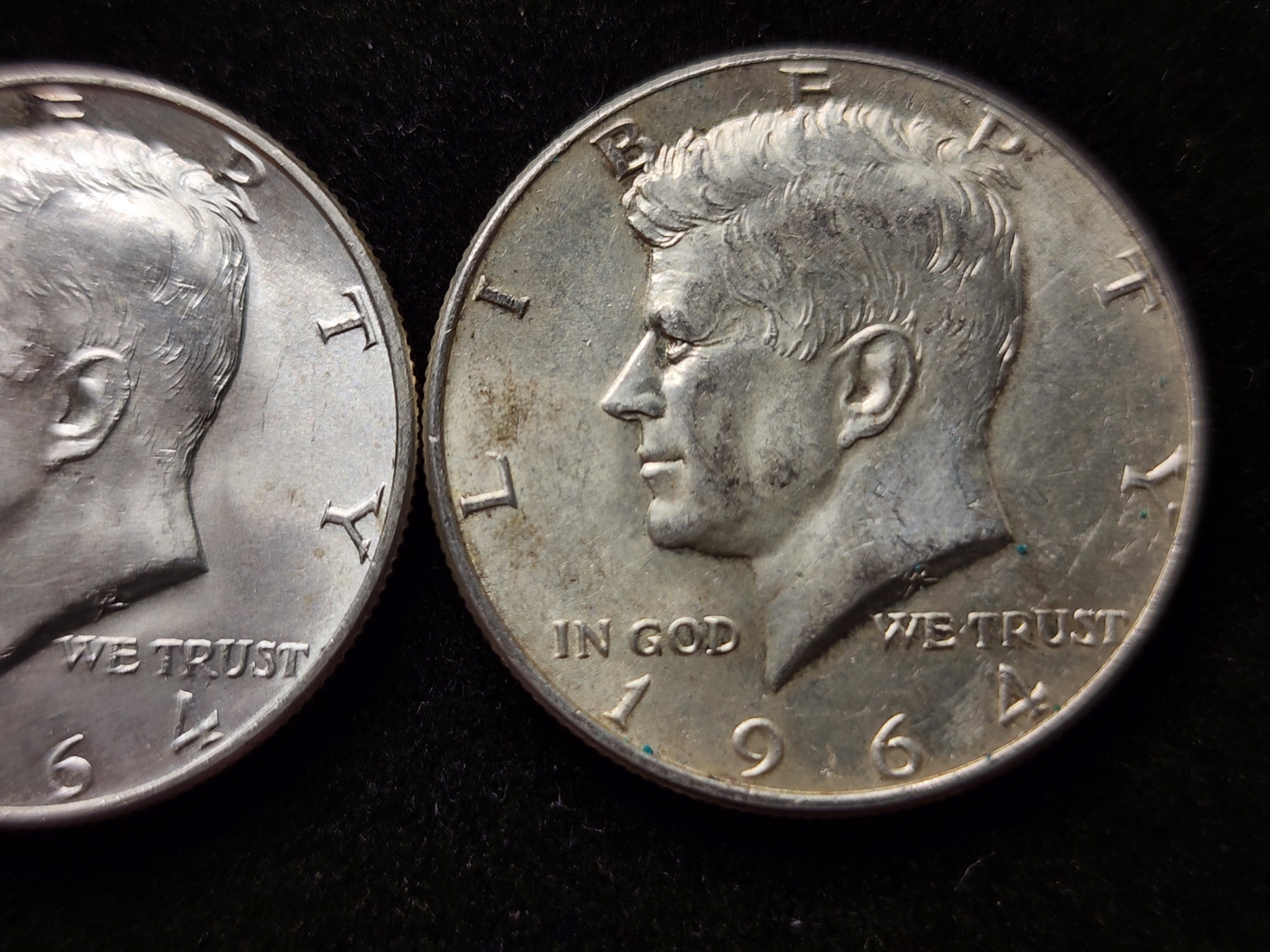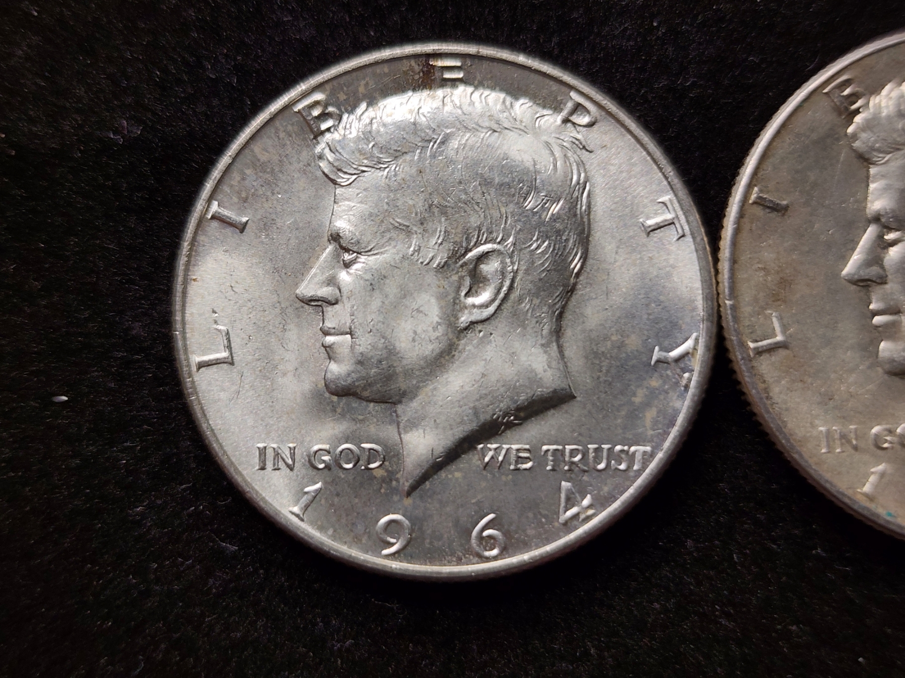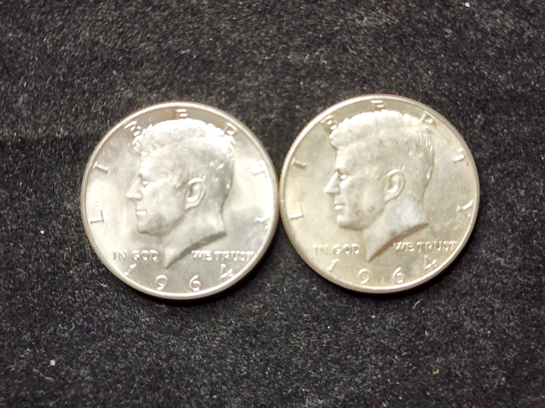 Two 90% Silver 1964 Kennedy Silver Half Dollars - $1 Face Value in 90% Silver!