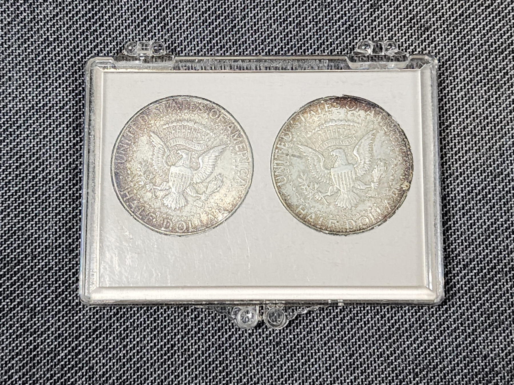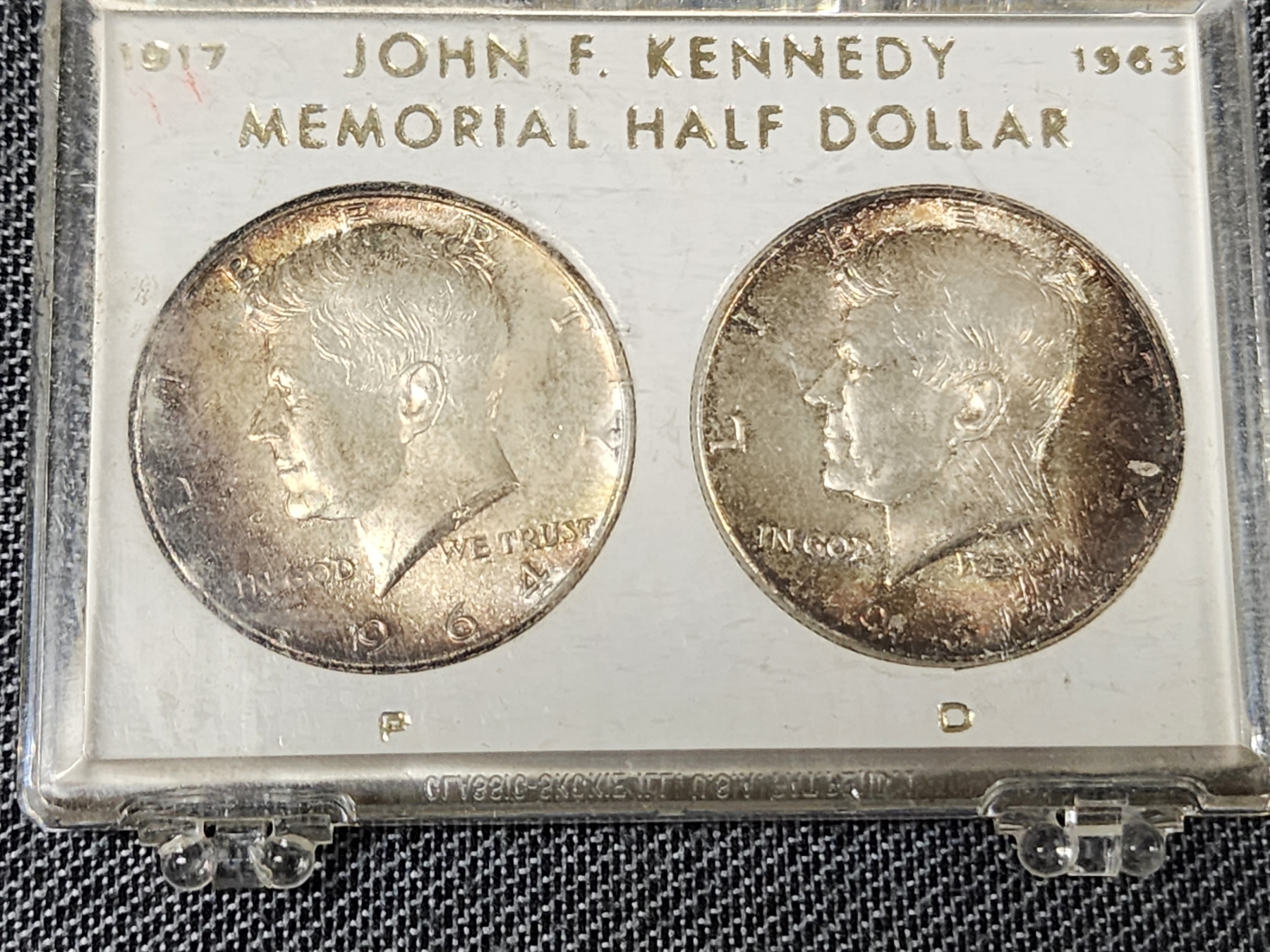 Two 90% Silver United States 1964 Kennedy Half Dollars in Display ~ $1.00 Face Value