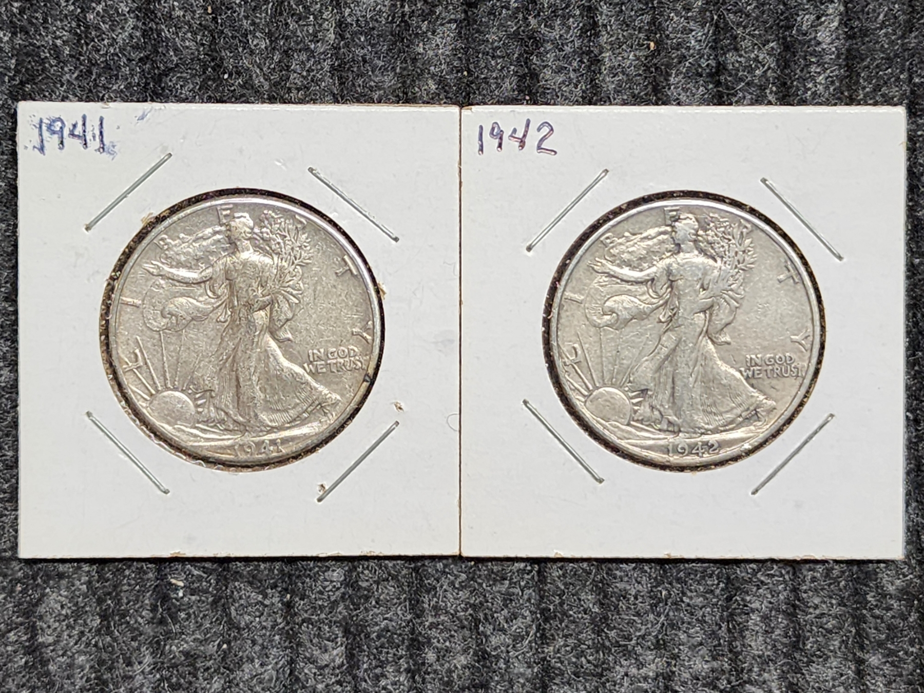 Two 90% Silver United States Walking Liberty Half Dollars ~ $1.00 Face Value