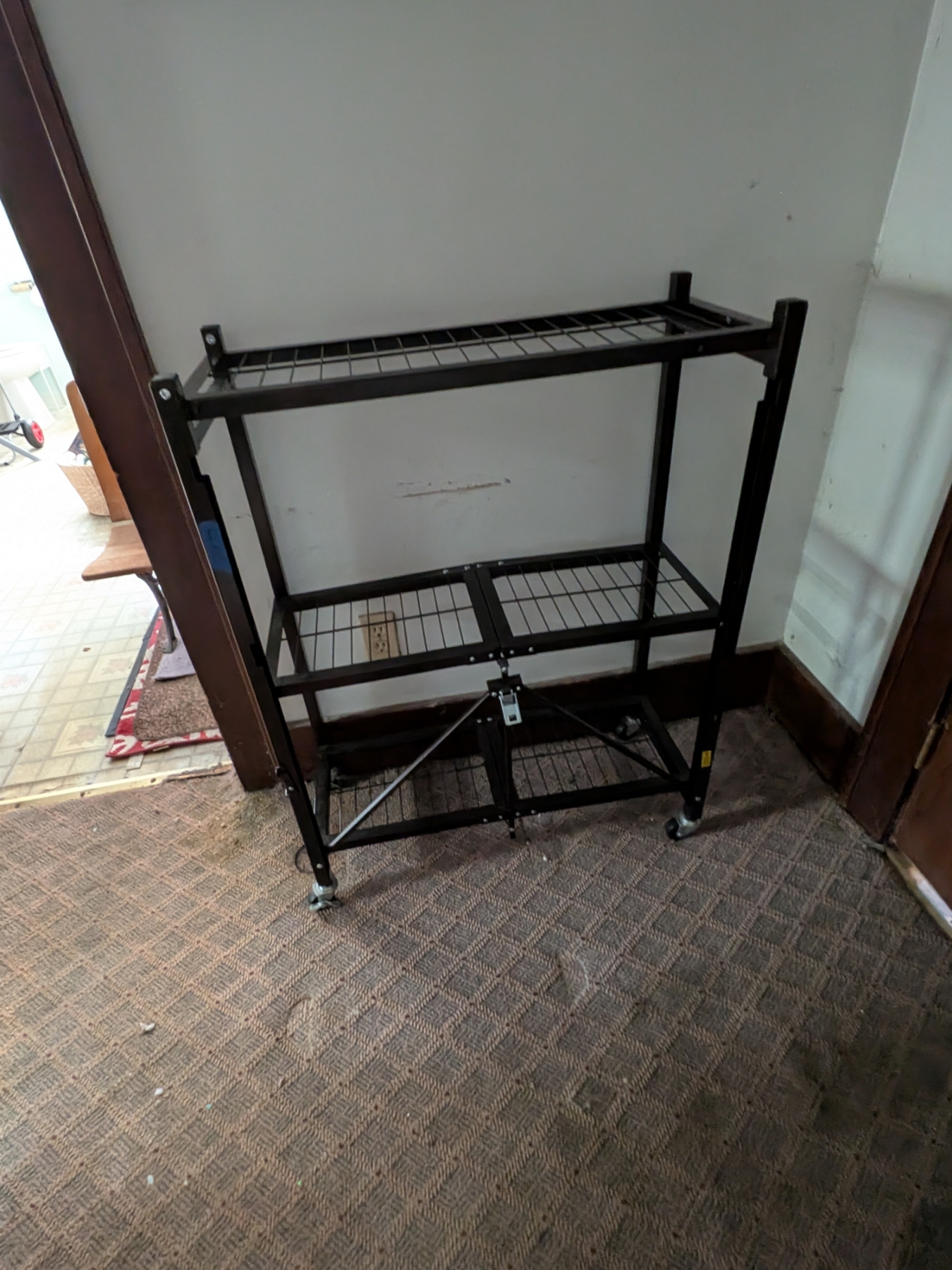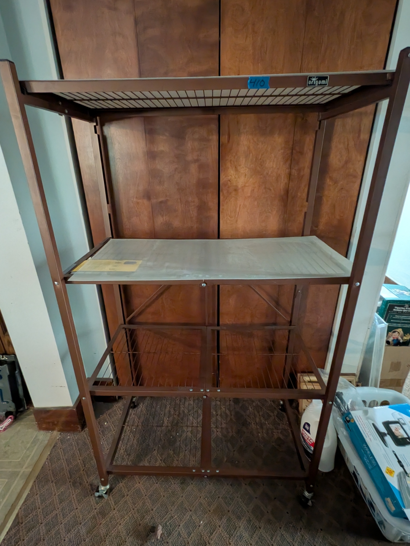 Two Almost New Metal Wire Collapsable Shelving Units On Wheels (3ftx62" And 29"x38")
