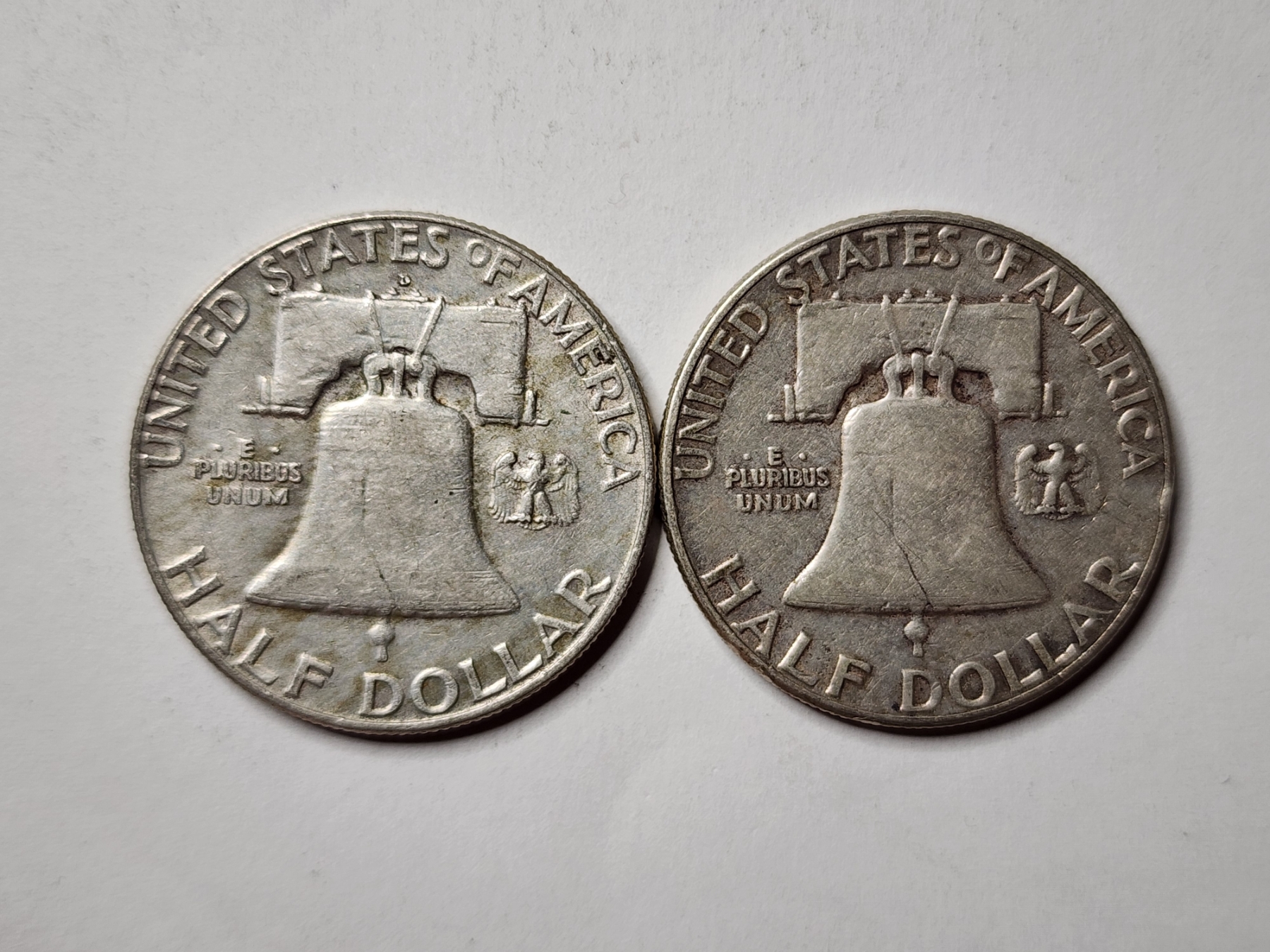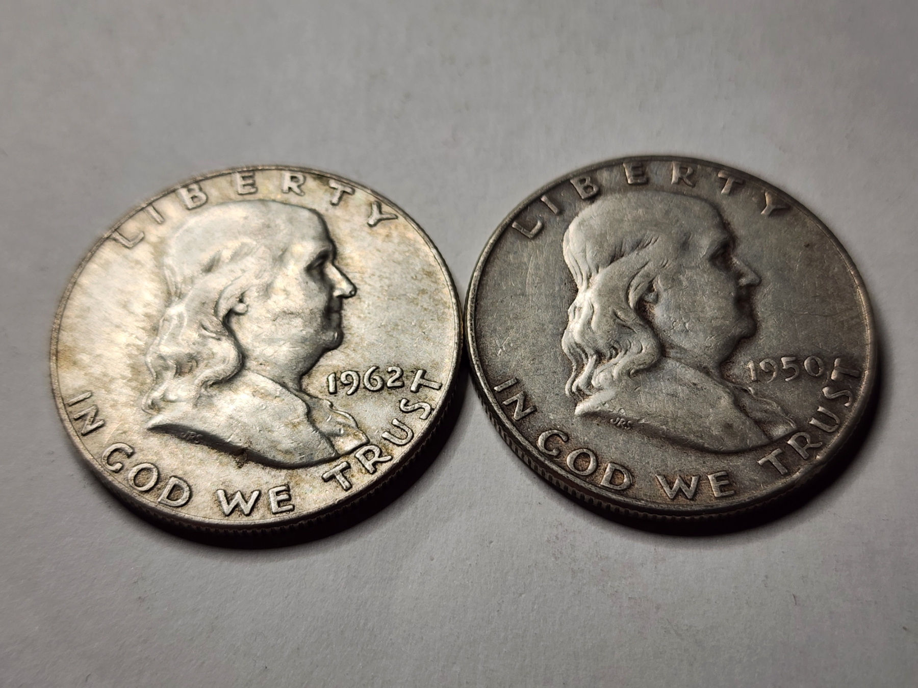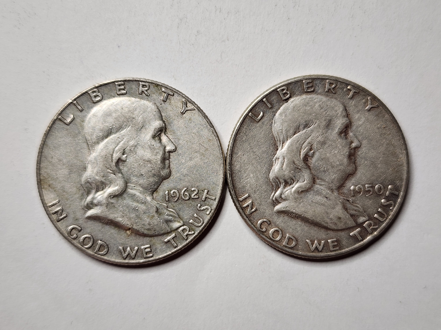 Two Benjamin Franklin 90% Silver United States Half Dollars ~ Both Nice Looking Coins! ~ $1.00 Face Value