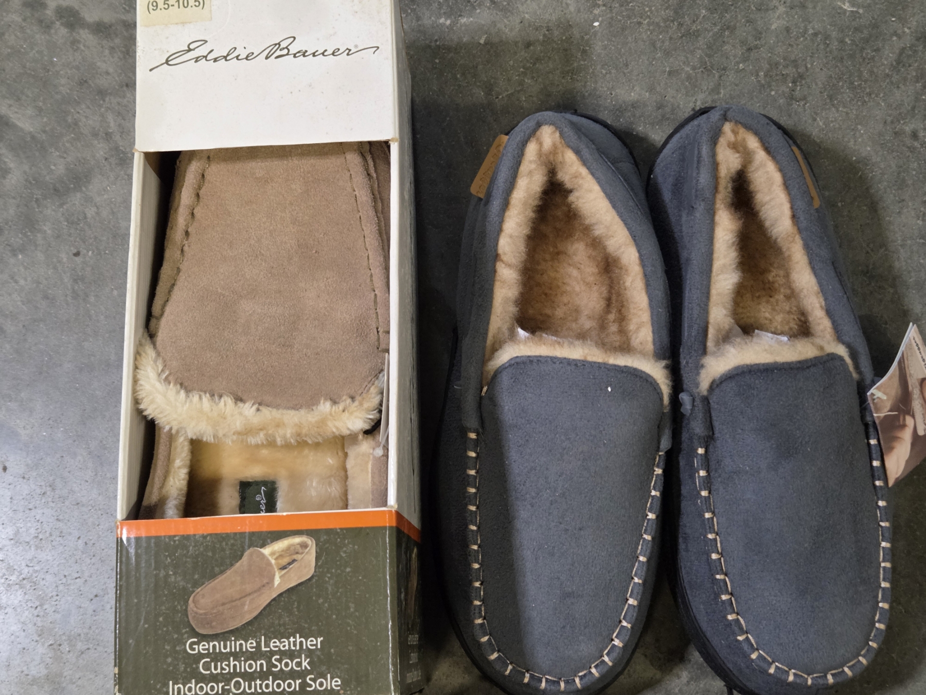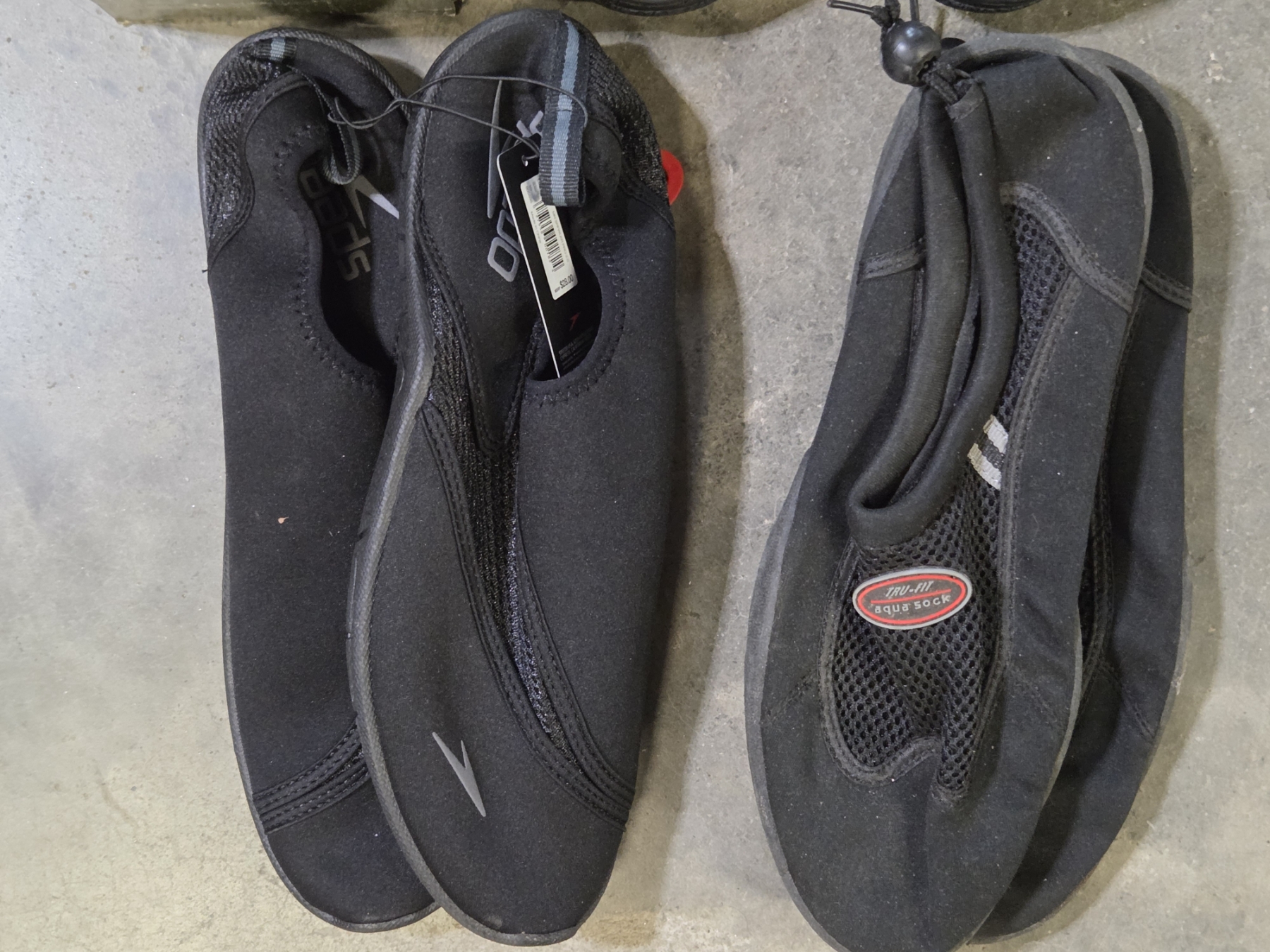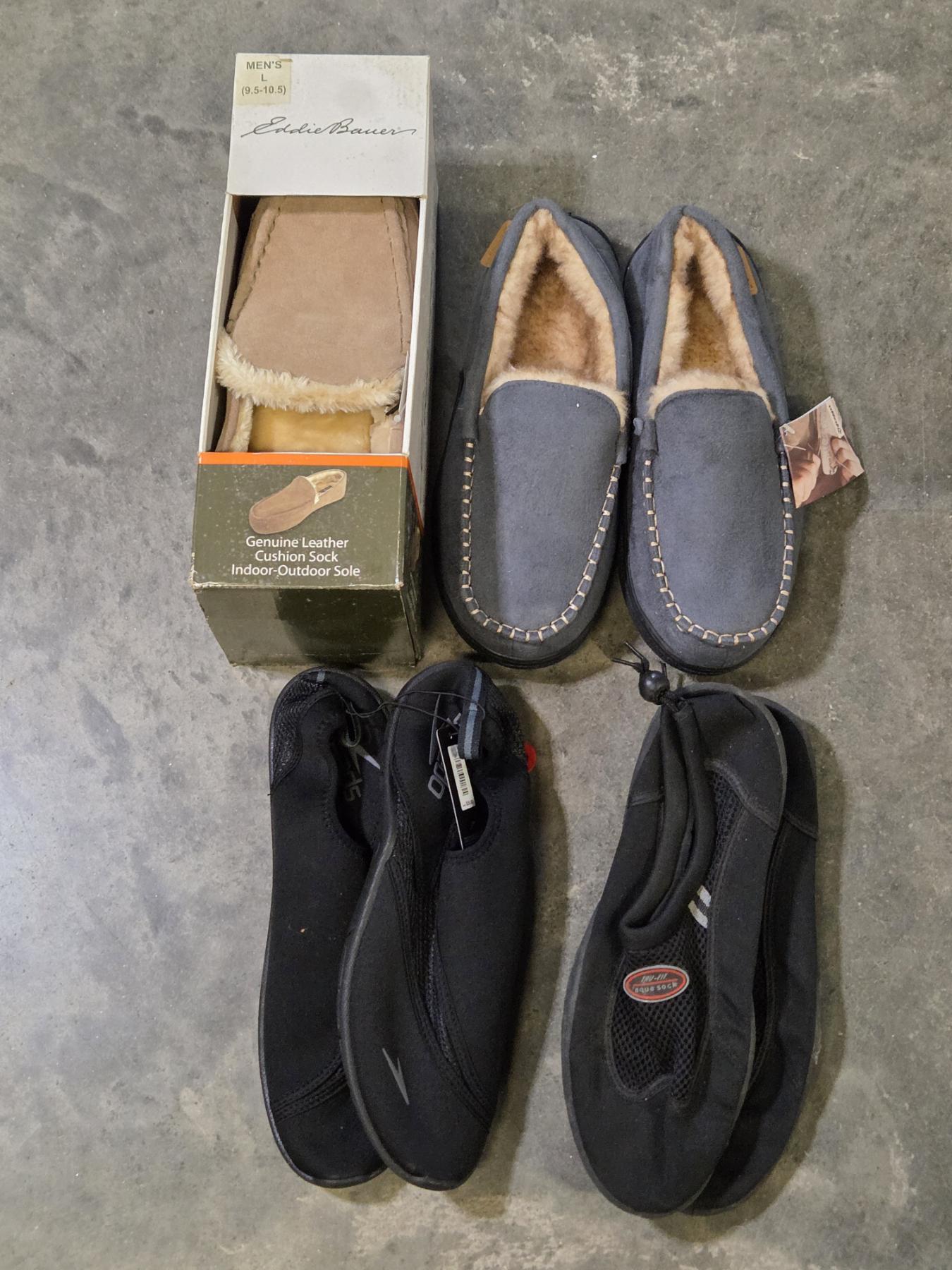 Two Brand New Size 10 Mens Leather Slippers & Two Pair Size 10 Water Shoes