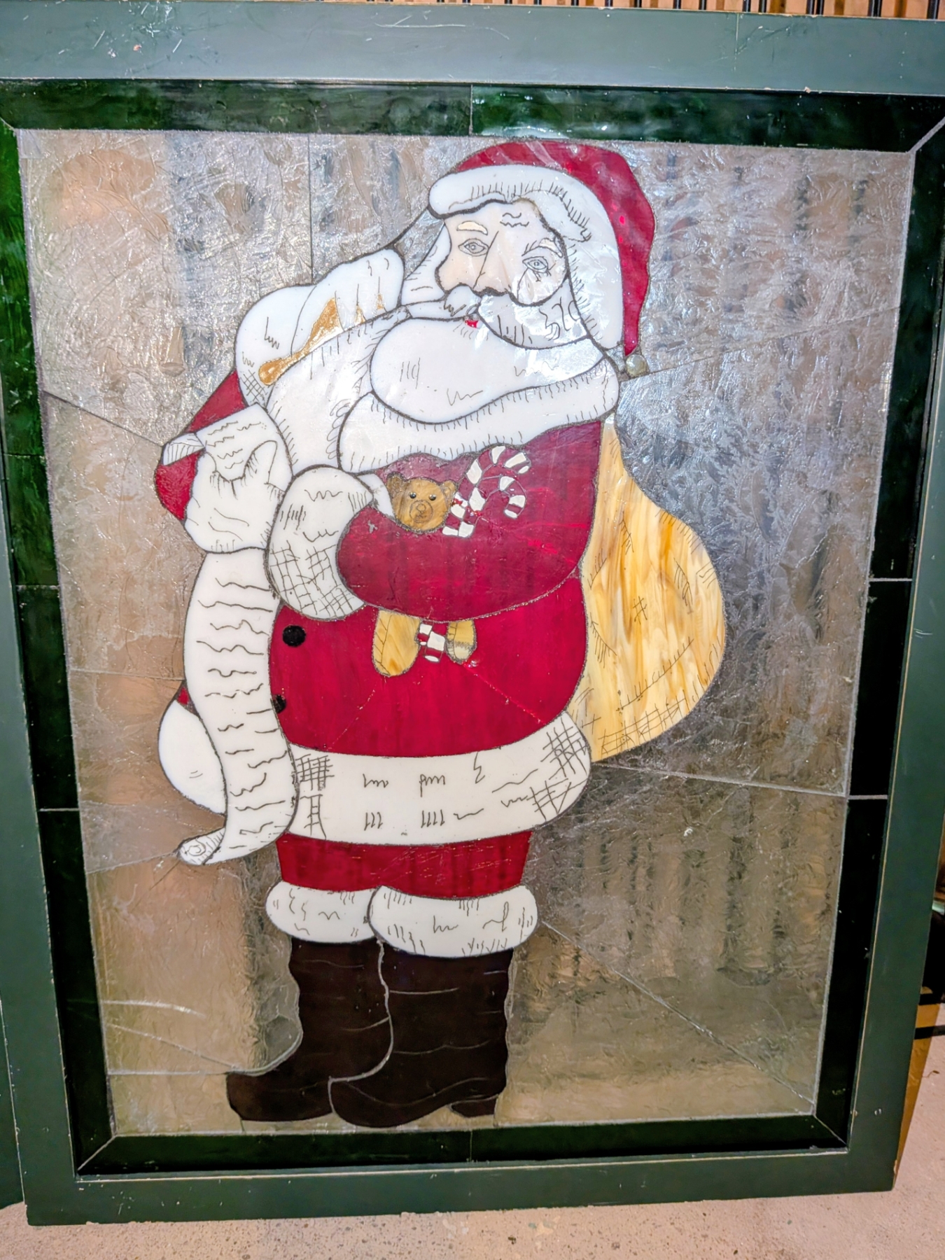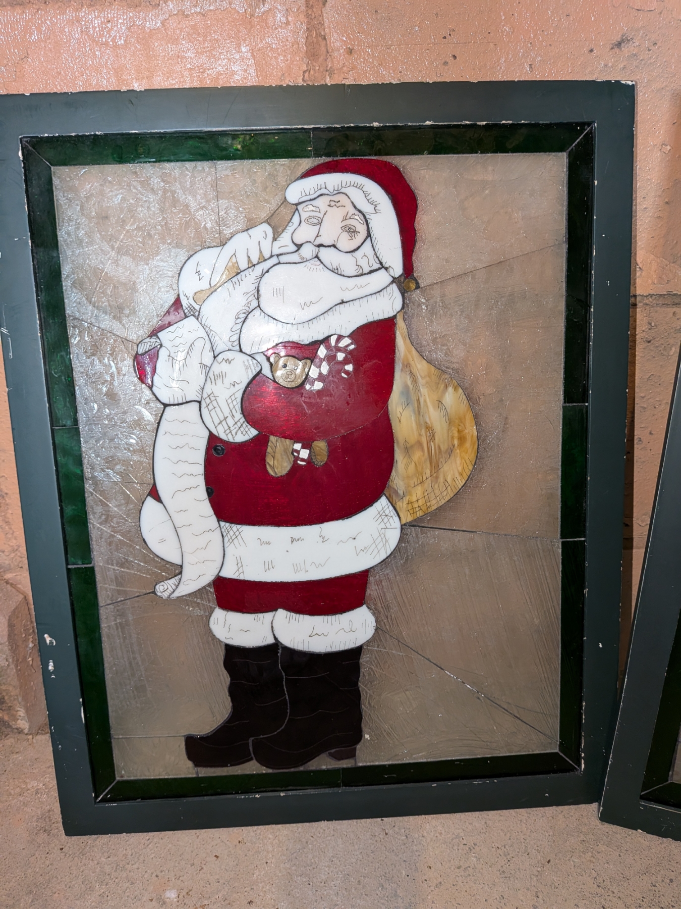 Two Gorgeous 17"x21" Stained Glass Santa Panes