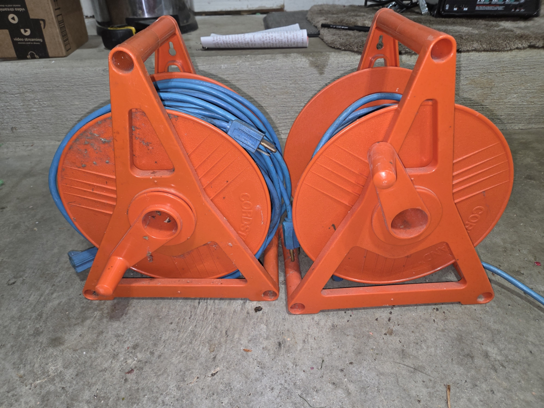 Two Heavy Duty Extension Cords On Reels. Like New!