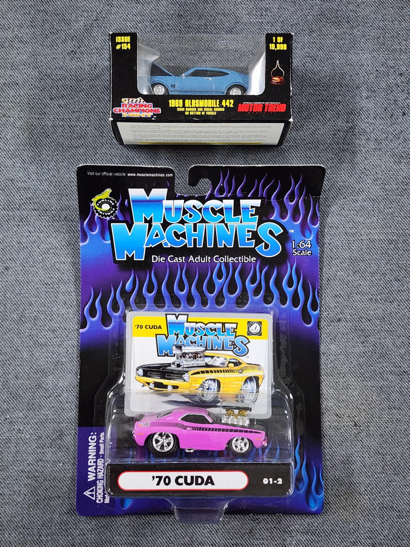 Two NEW IN THE BOX Die Cast Collectible Scale Cars ~ '70 Cuda & '69 Oldsmobile 442