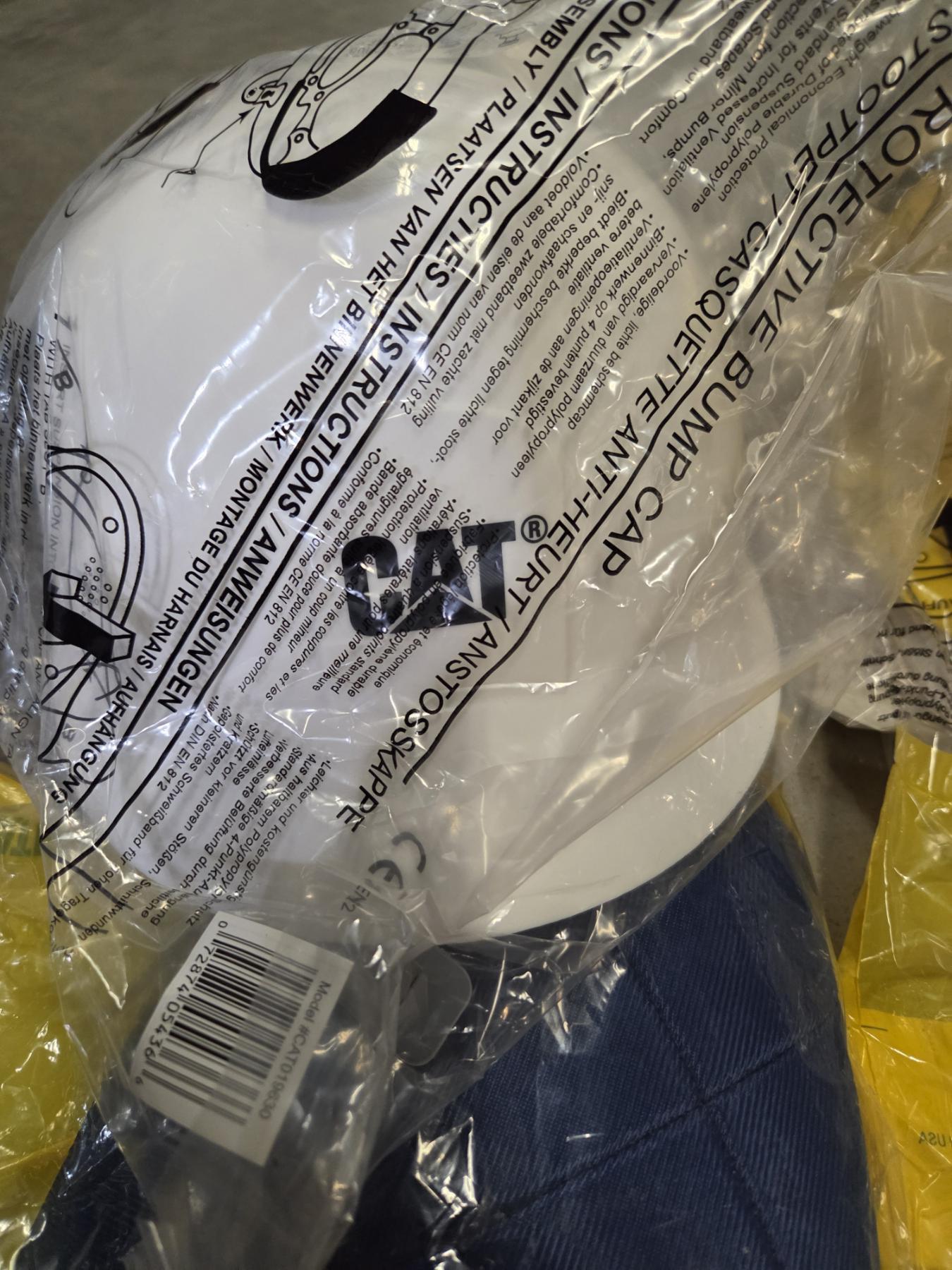 Two New CAT Bump Helmets, 2 Liners, 1 Pair Eye Protection, And 7 Ear Plug Sets