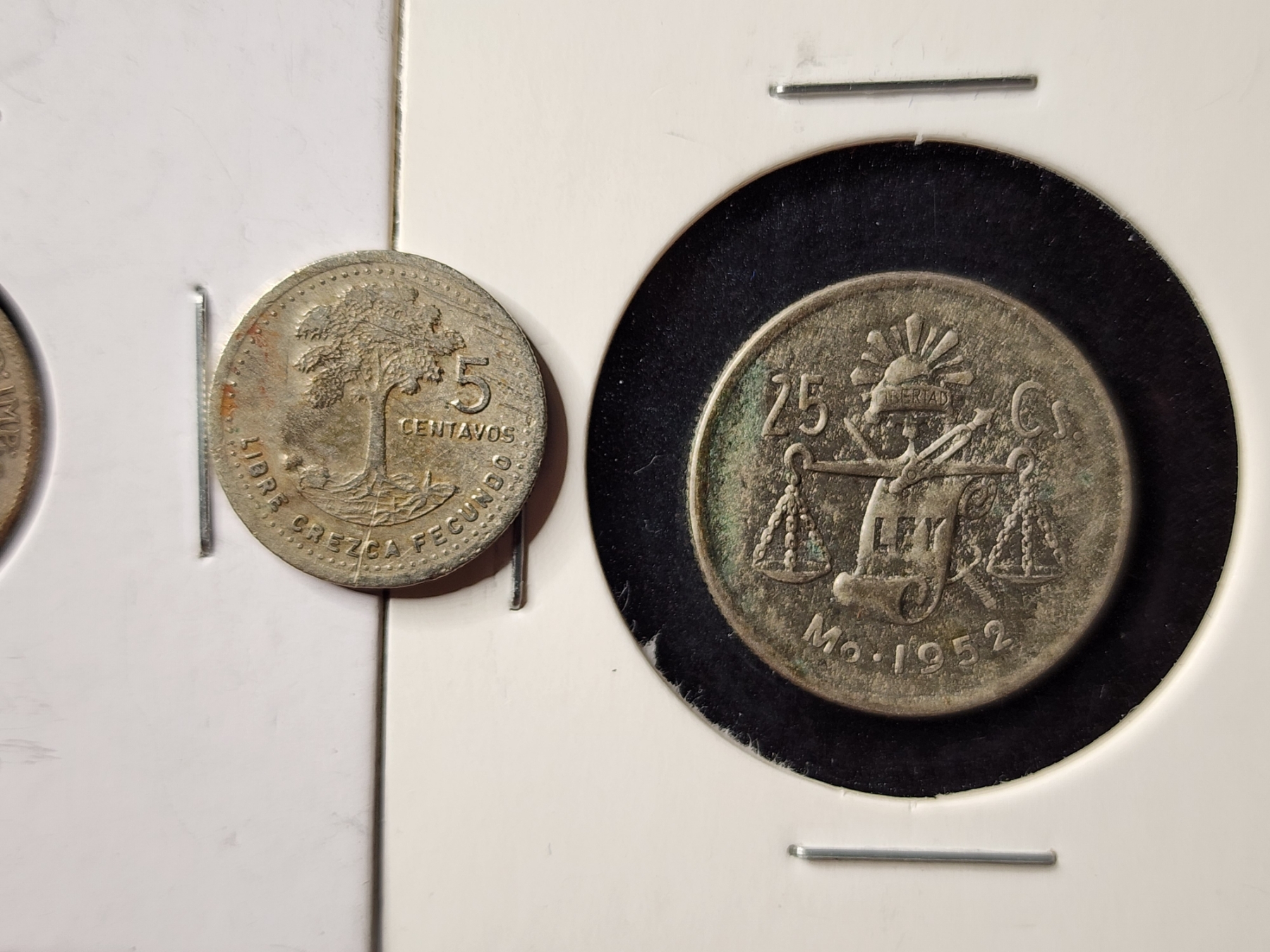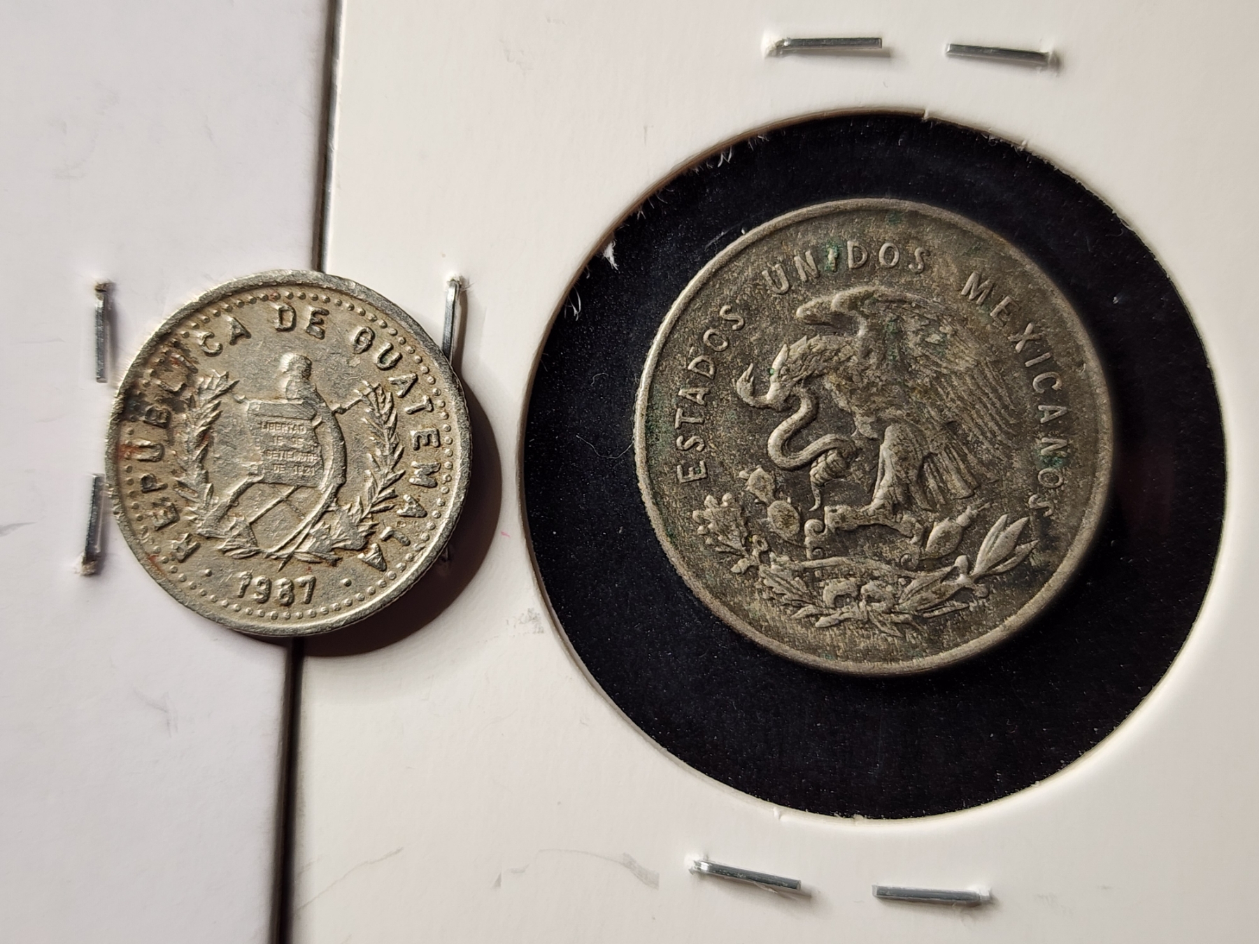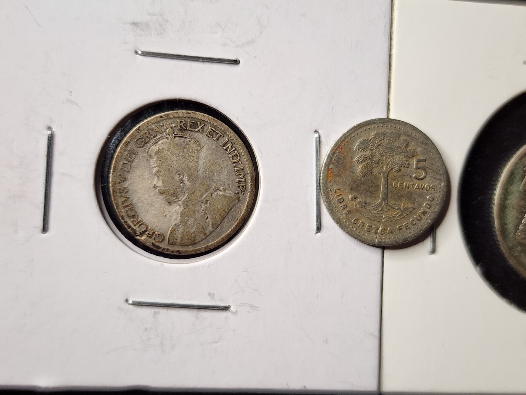 Two Unique Silver World Coins With Added Guatemalan Non Silver - 80% Silver 1920 Canadian Dime, 30% Silver 1952 Estados Unidos & 1987 Guatemalan 5 Centavos Coin