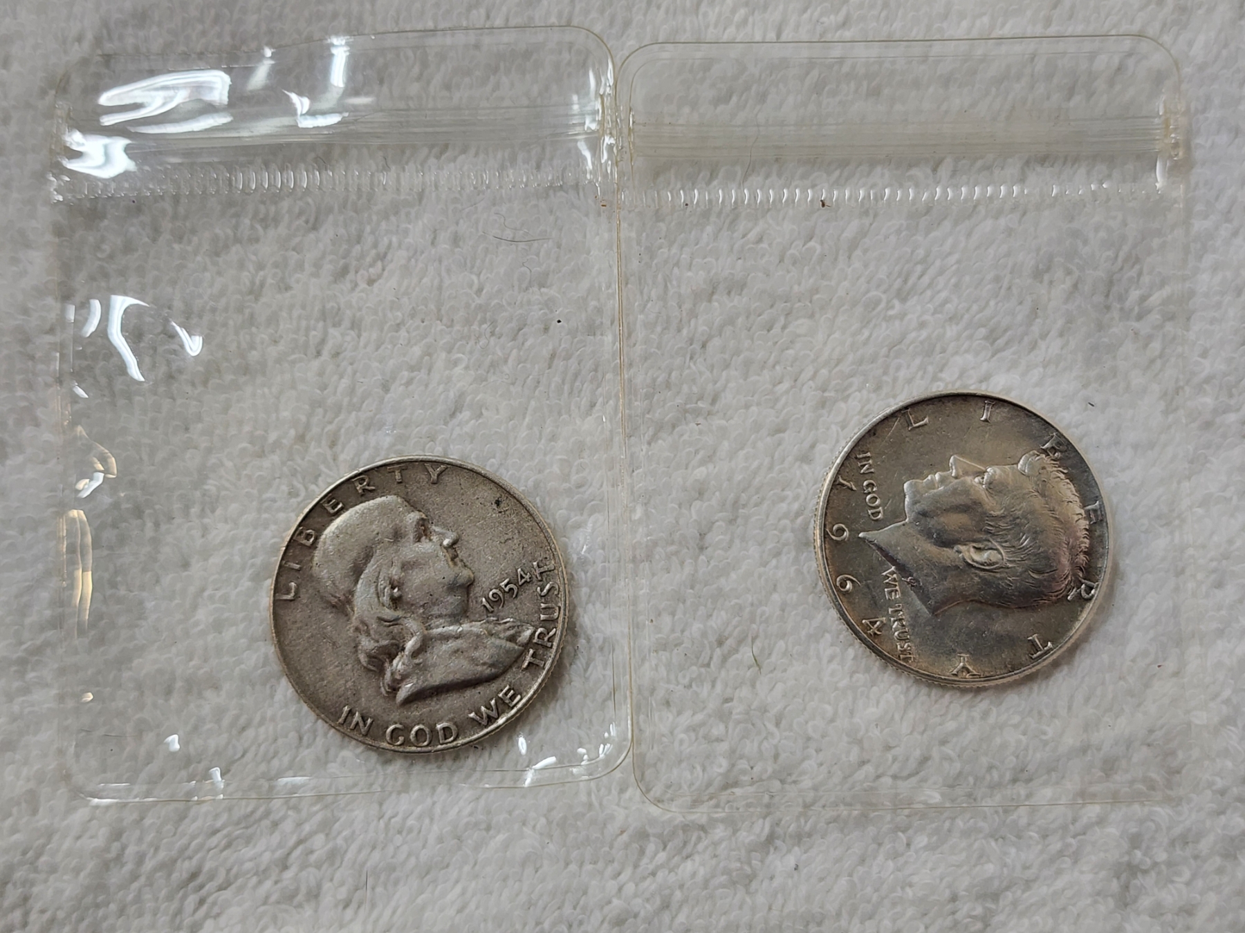 Two United States 90% Silver Half Dollars -- 1954 Franklin & 1964 Kennedy Half Dollars -- Both Higher Grade Coins!