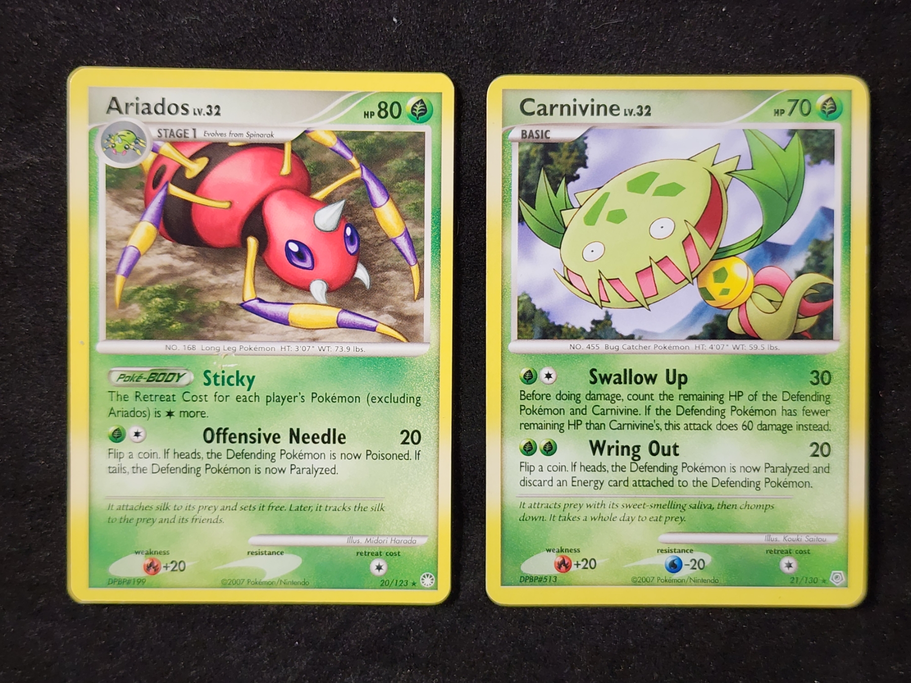 Two Vintage Non-Holo RARE 2007 Pokemon Trading Cards ~ Ariados 20/123 & Carnivine 21/130