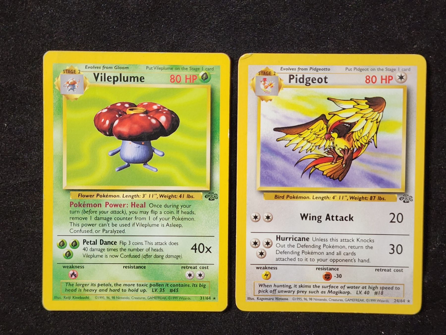 Two Vintage RARE Non-Holo JUNGLE SET Pokemon Trading Cards ~ Vileplume 31/64 & Pidgeot 24/64