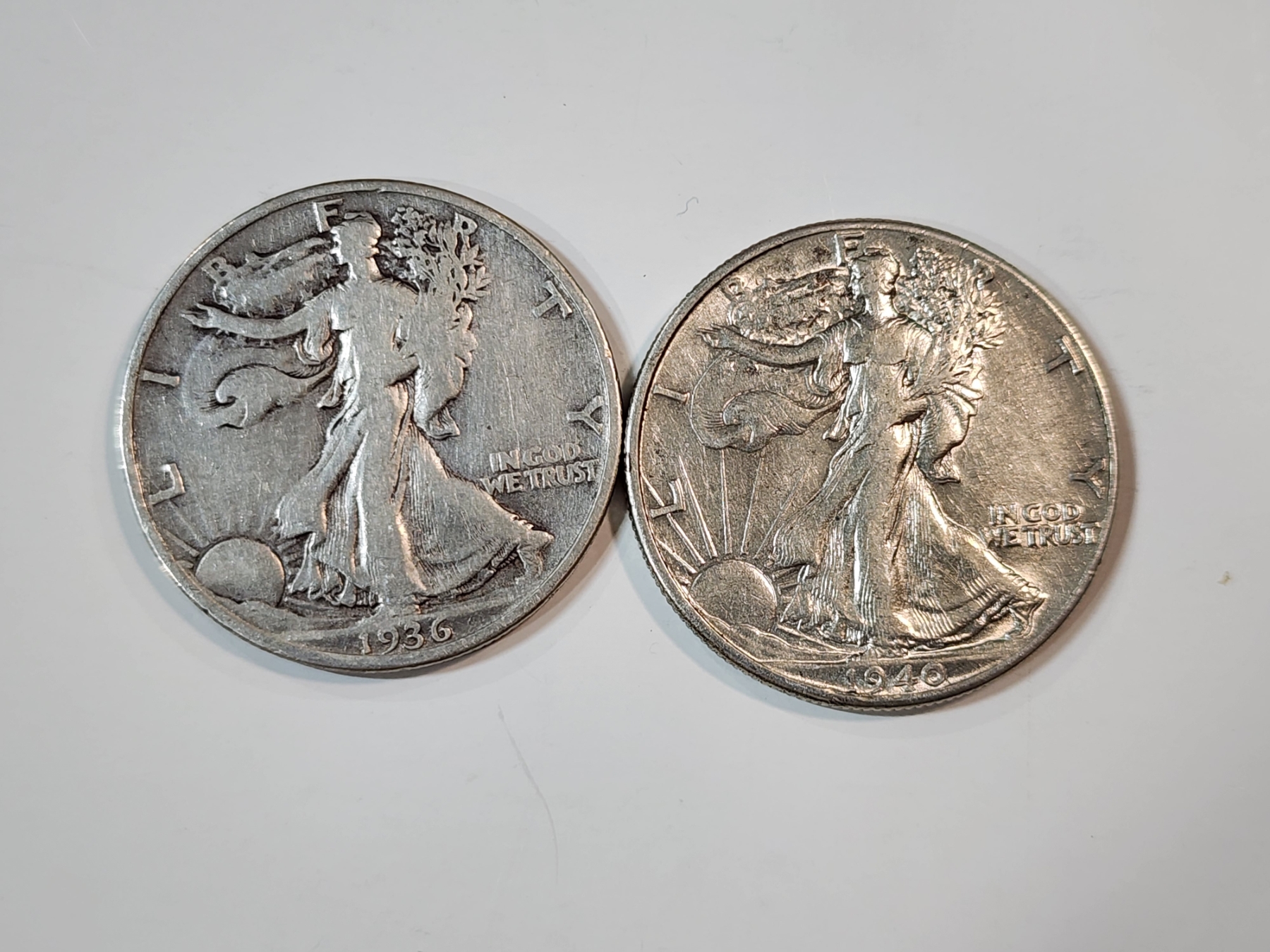 Two Walking Liberty 90% Silver Half Dollars: 1936 & 1940 FV: $1.00