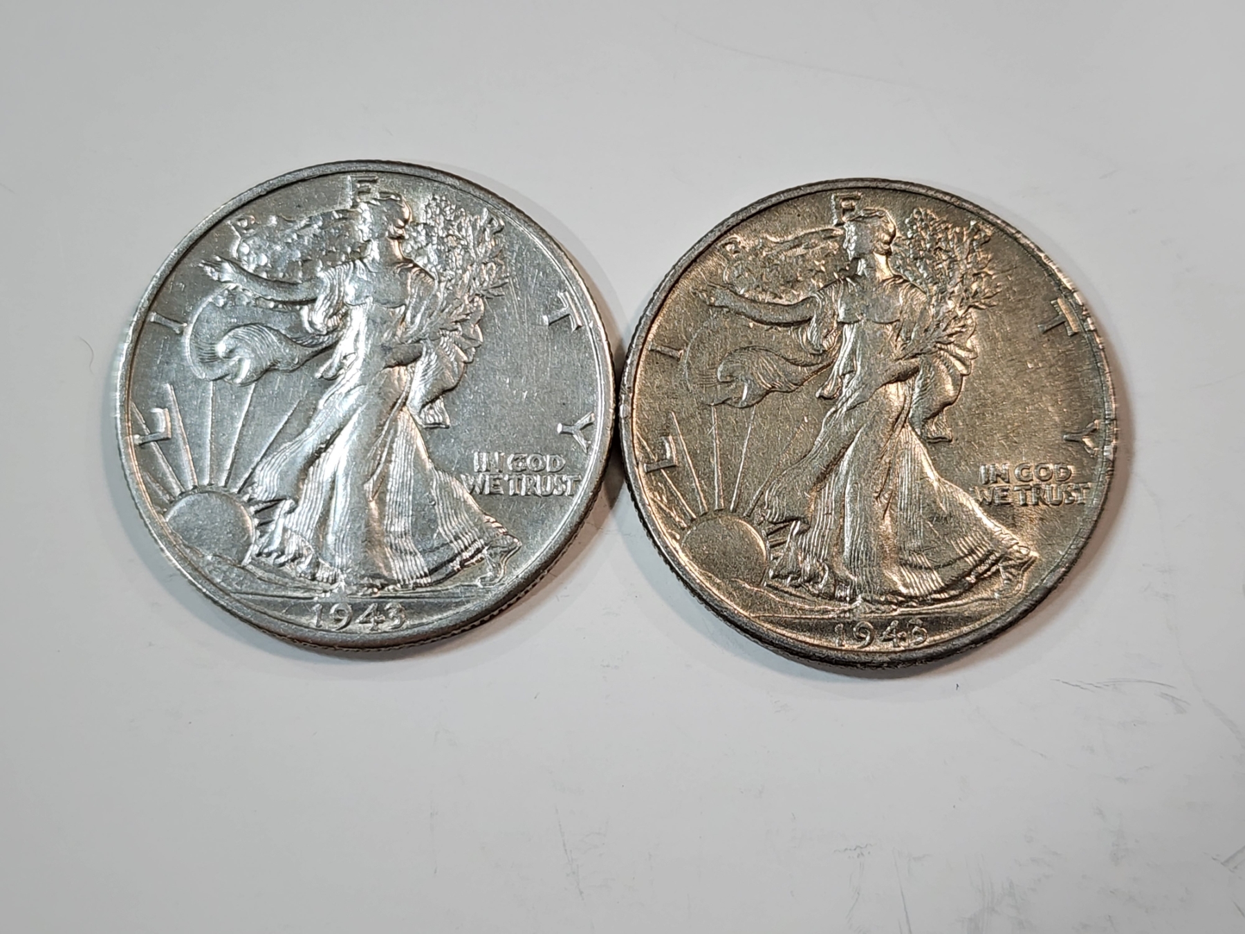 Two Walking Liberty 90% Silver Half Dollars: 1943-D & 1943 FV: $1.00