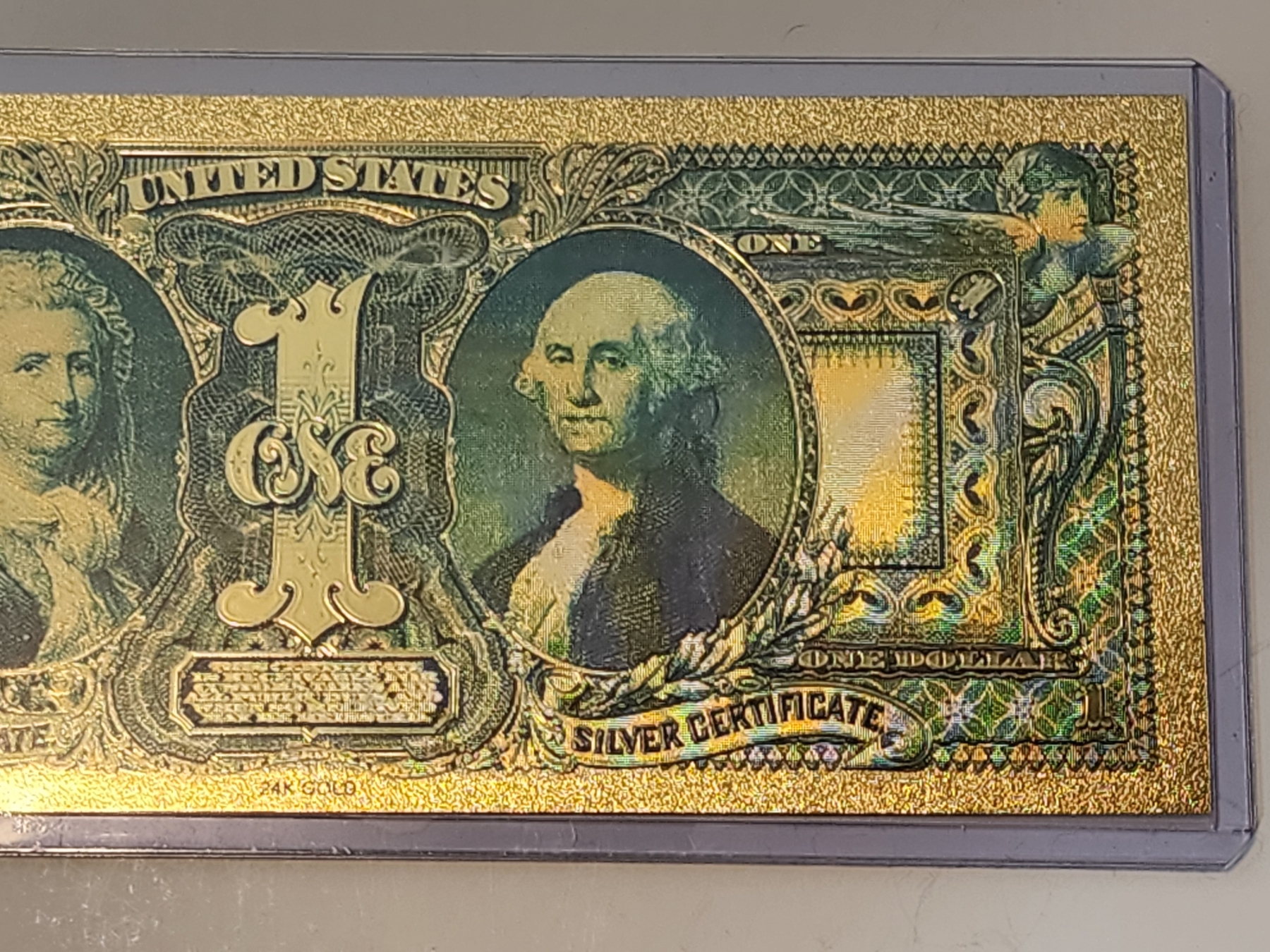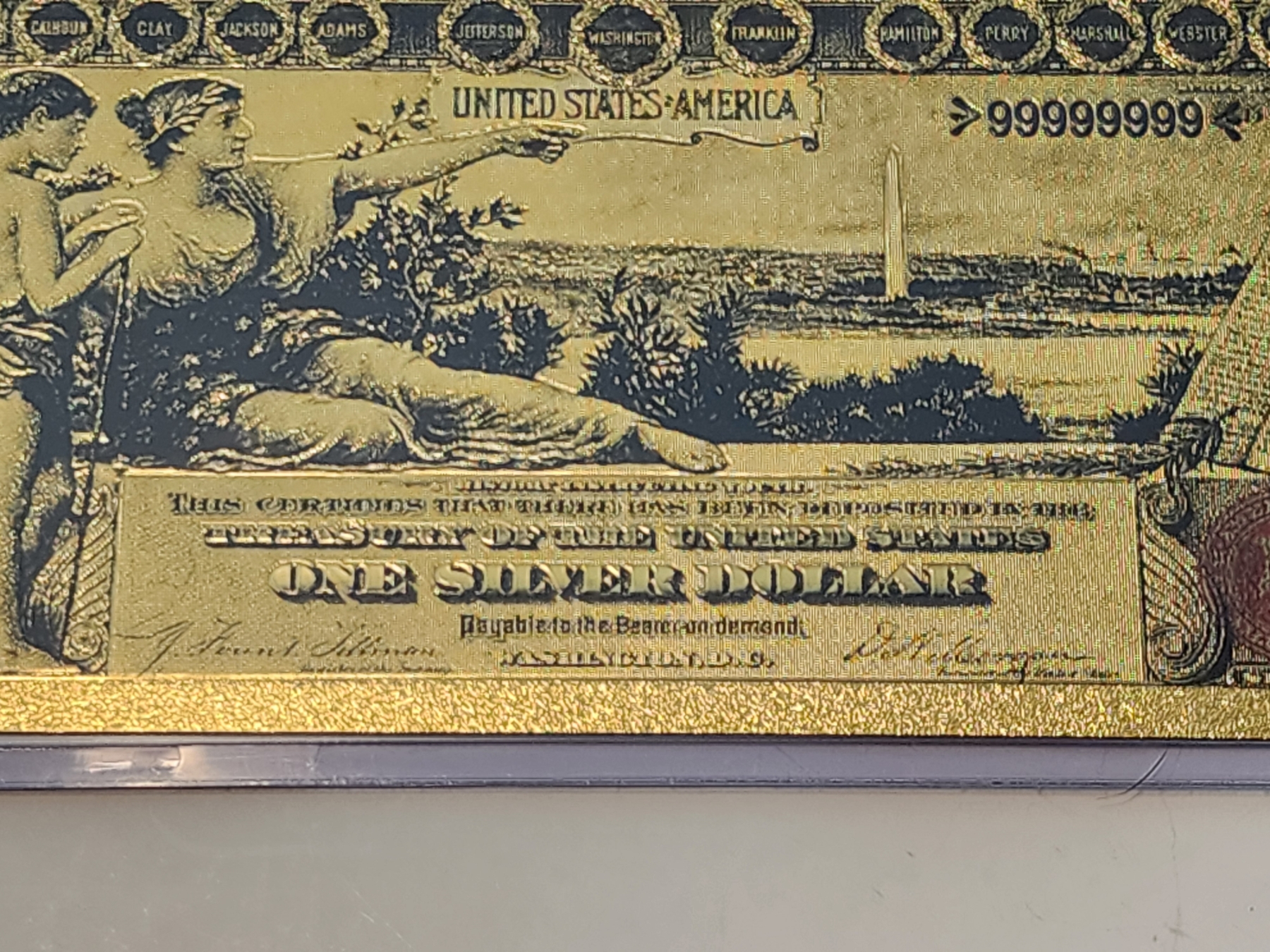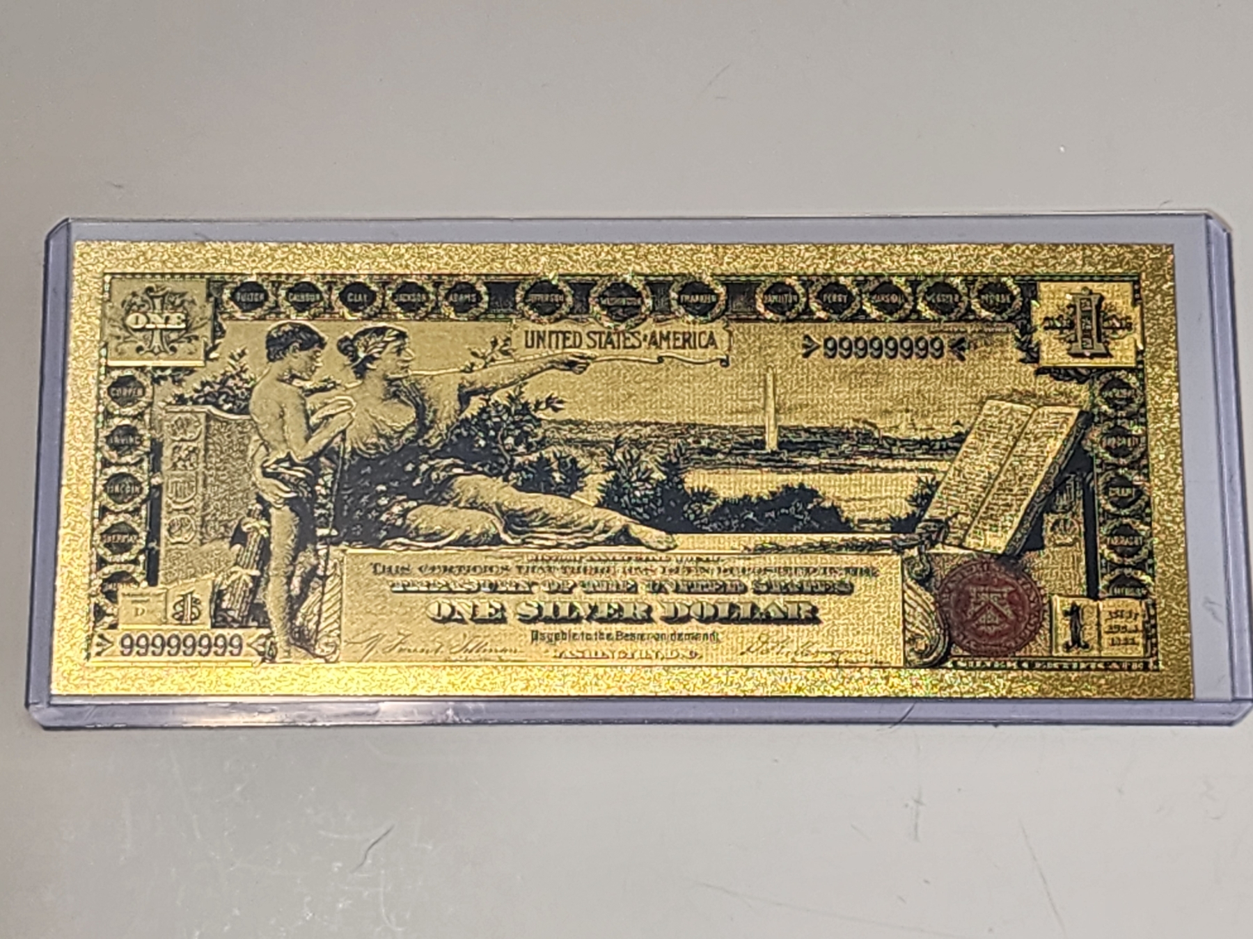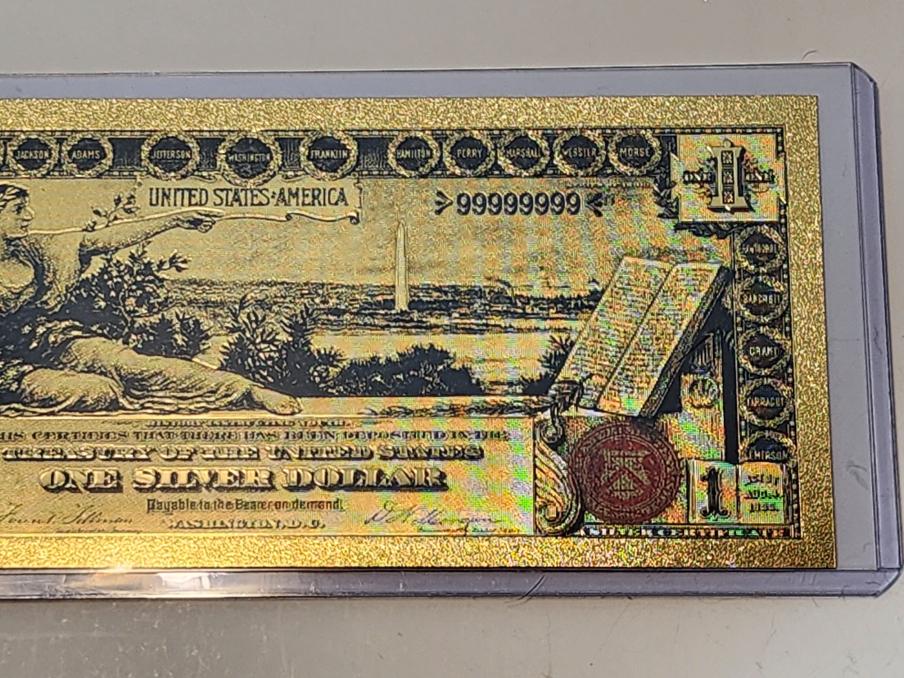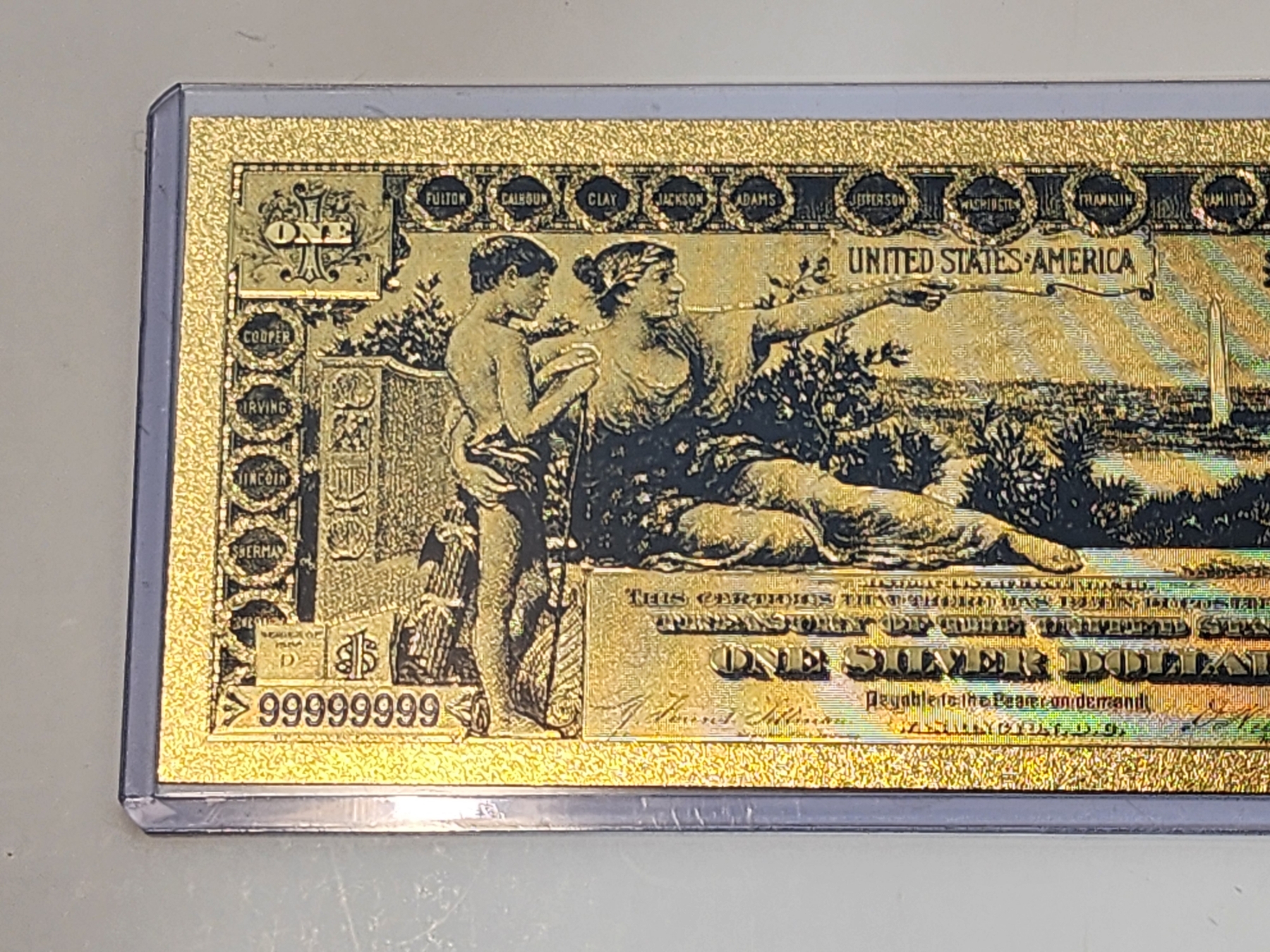 U.S. One Silver Dollar Gold Foil .99999999 - 24K Note In Protective Holder - Mint Condition