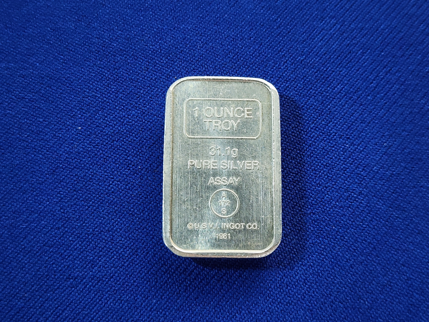 U.S.V.I. Ingot Co. 1981 One Troy Ounce .999 Fine Silver Bar