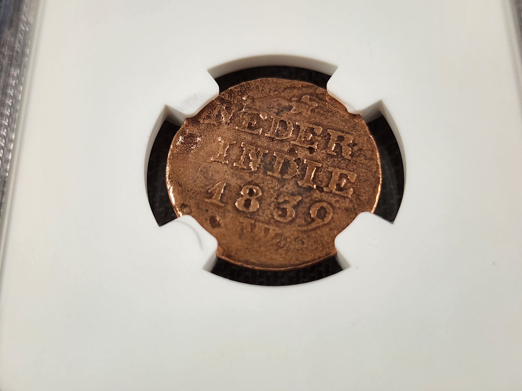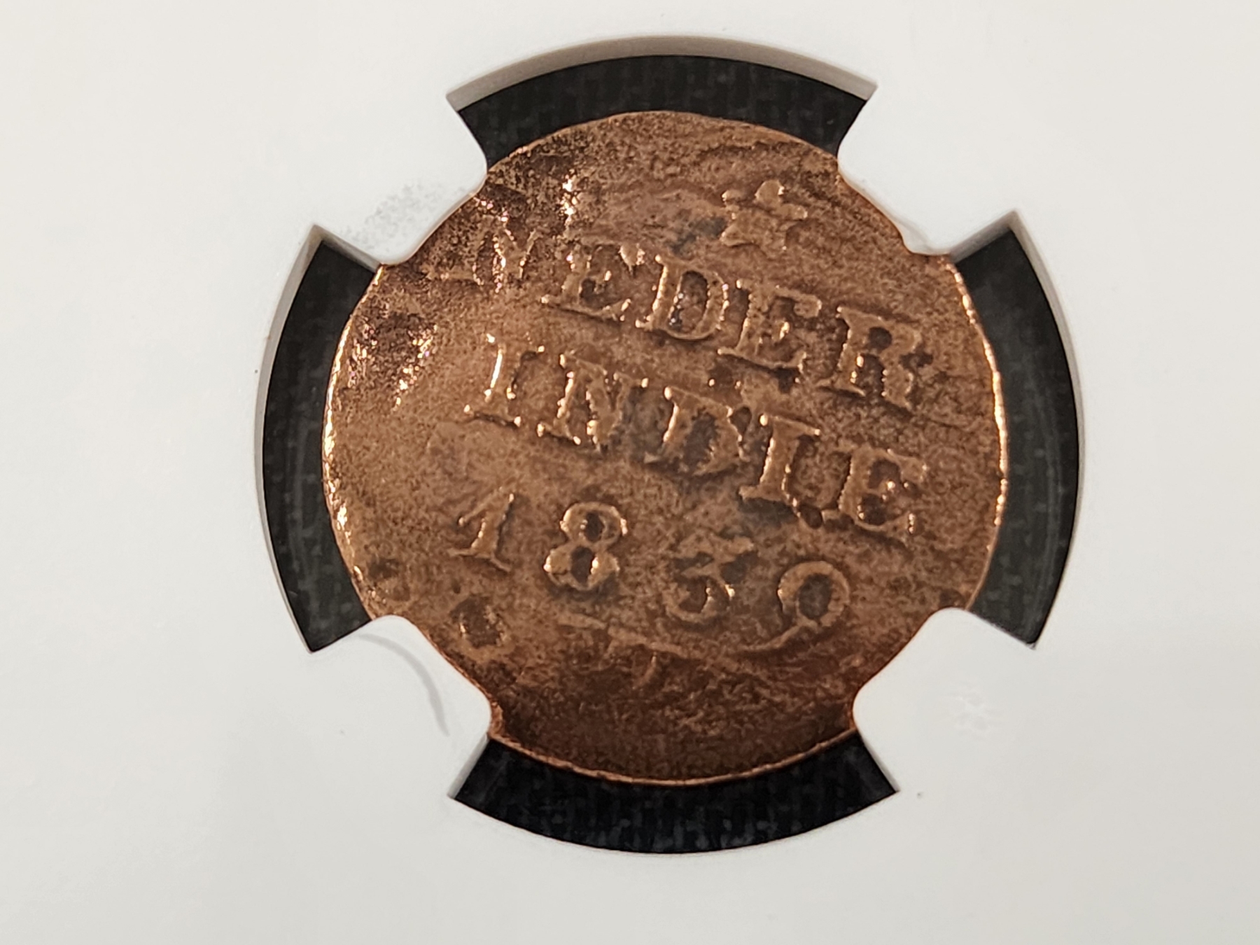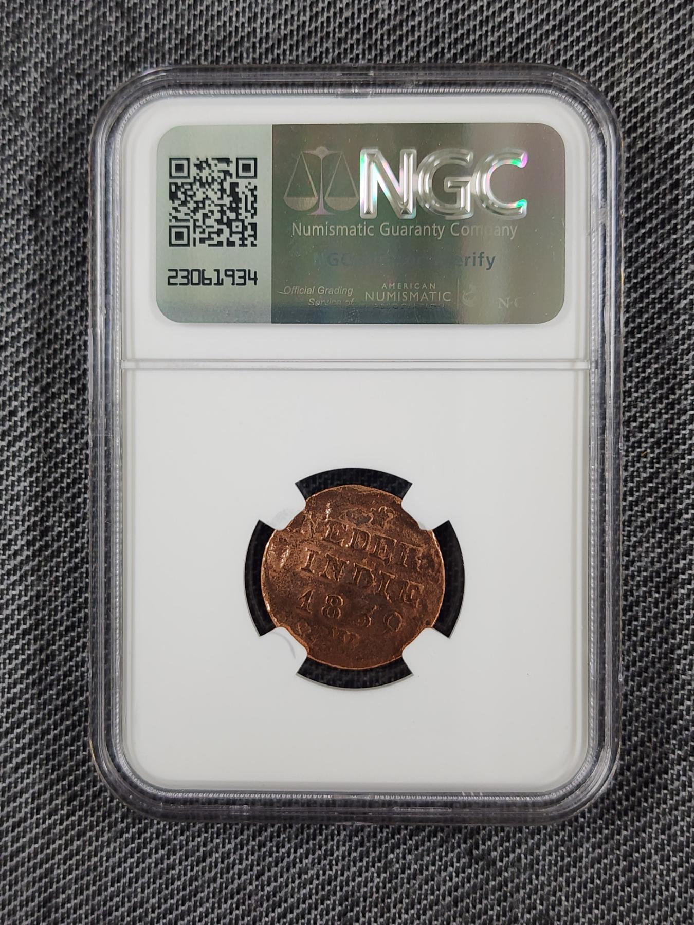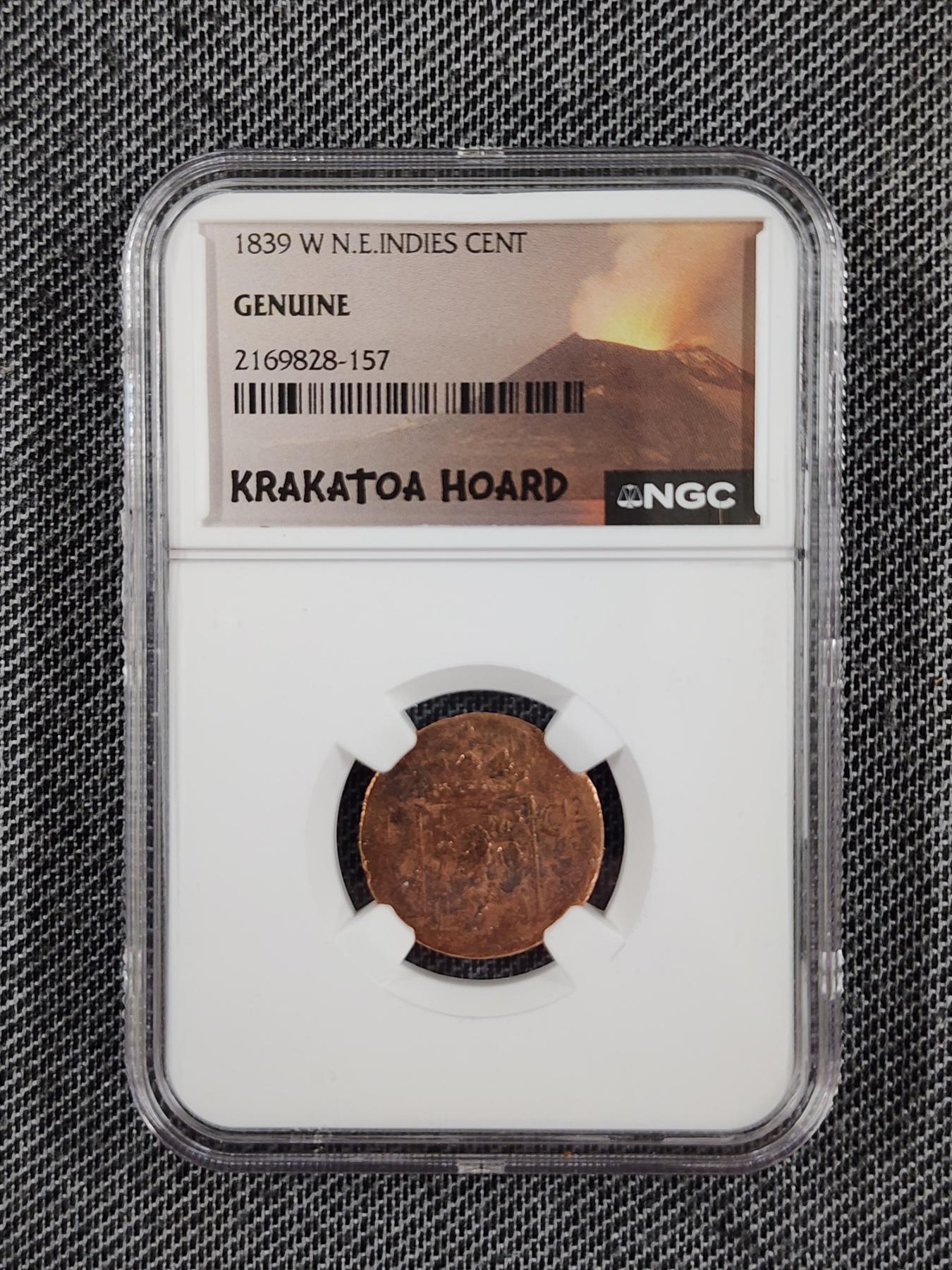 *UNIQUE EARLY 1800's COIN* ~ NGC Genuine Slabbed 1839 W N.E. Indies Cent From the Krakatoa Hoard! This is a rare 1839 Dutch Coin that was recovered near the 1883 Erupted Volcano Site! Own a coin directly linked to history!