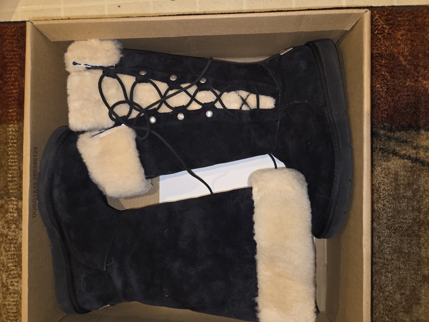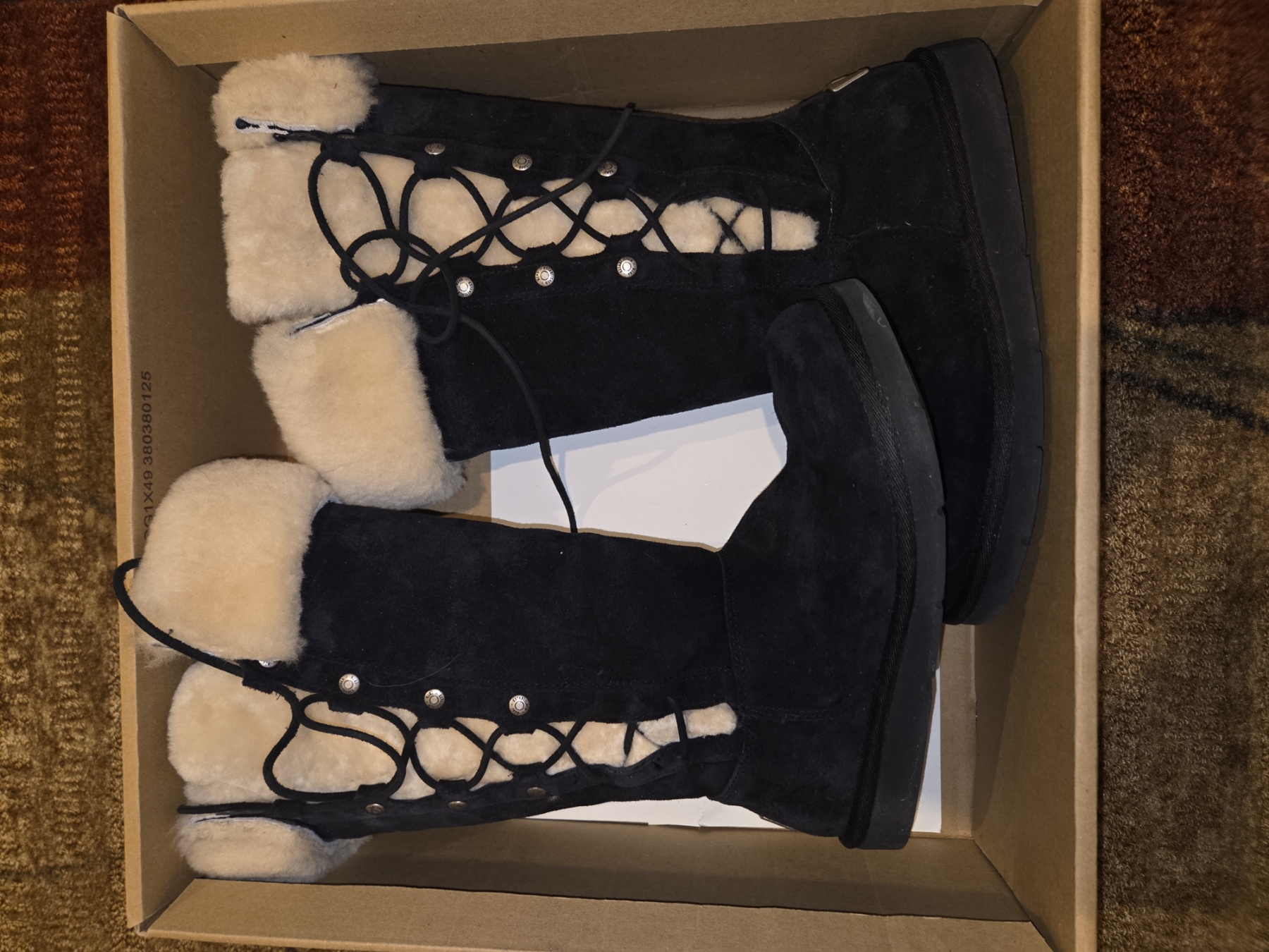Ugg Australia Black Lace Up Winter Leather & Sheepskin Size 7 Boots
