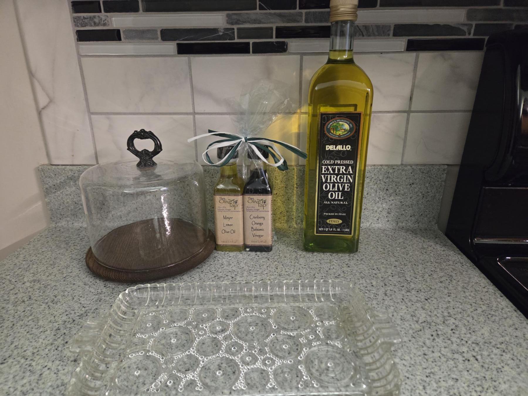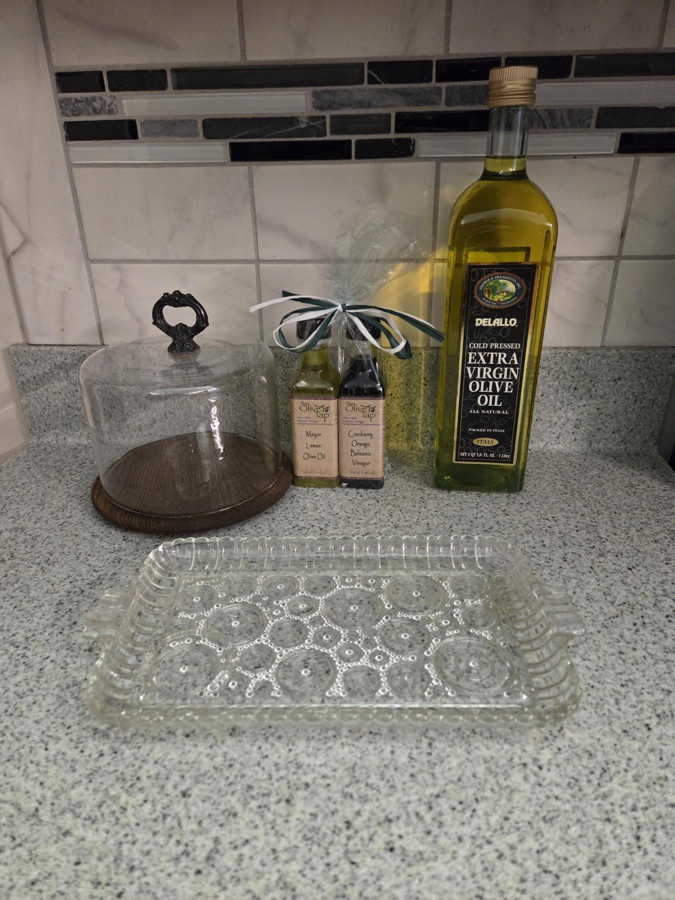 Unique Mini Cake Dome, Pretty Glass Serving Tray And Brand New Olive Oil Collection