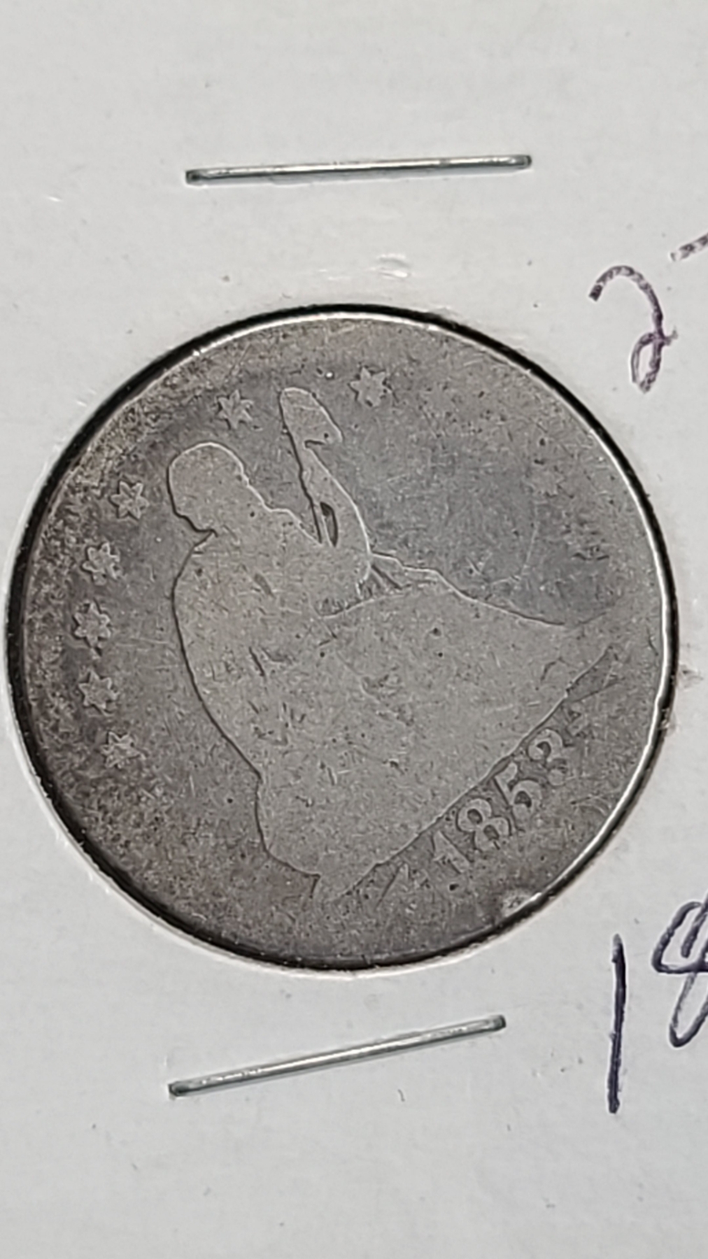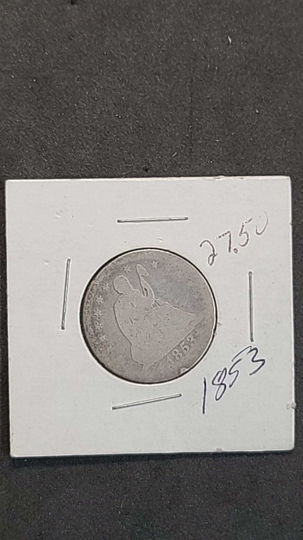 United States 1853 Seated Liberty 90% Silver Quarter With Arrows & Rays