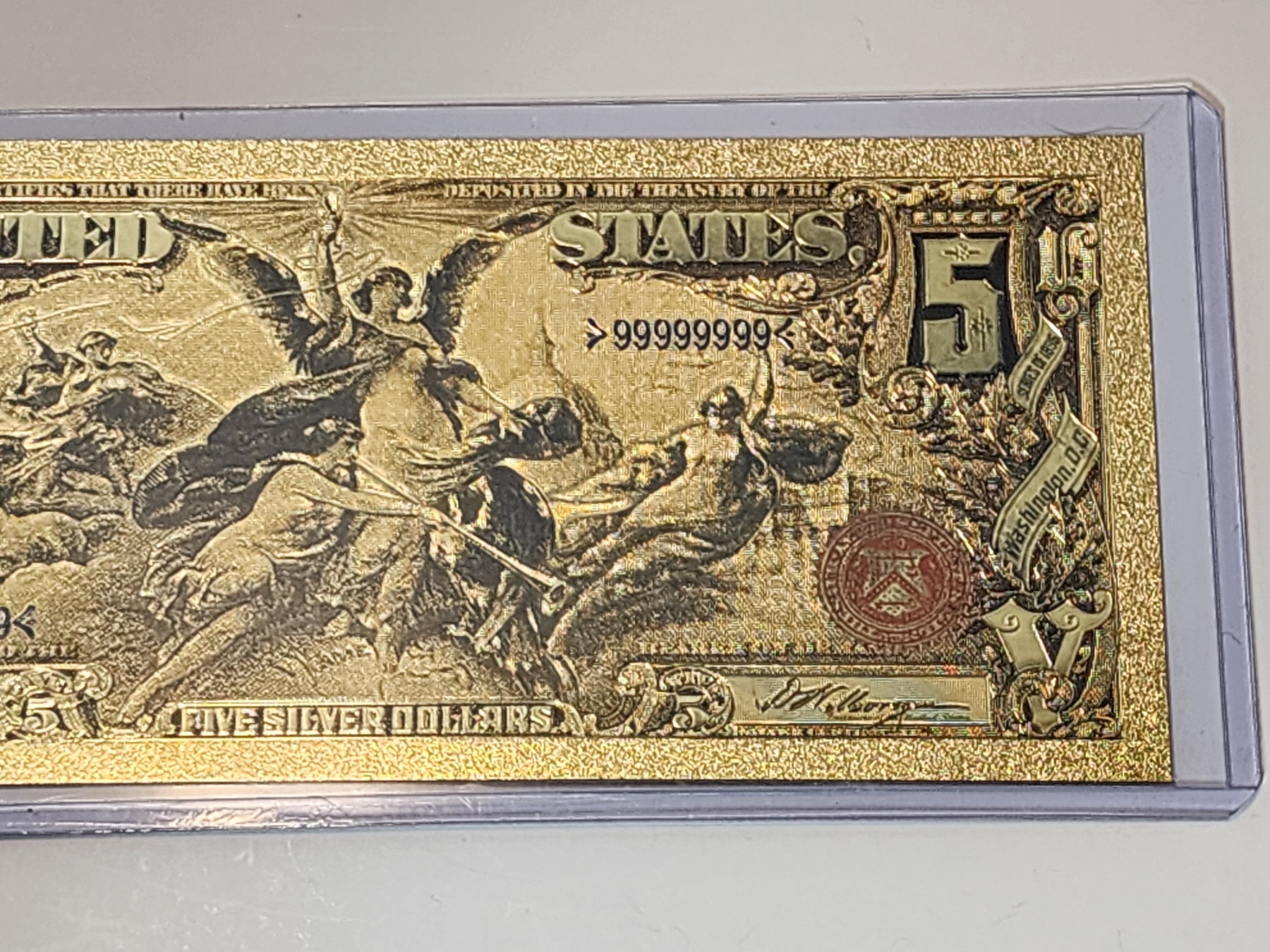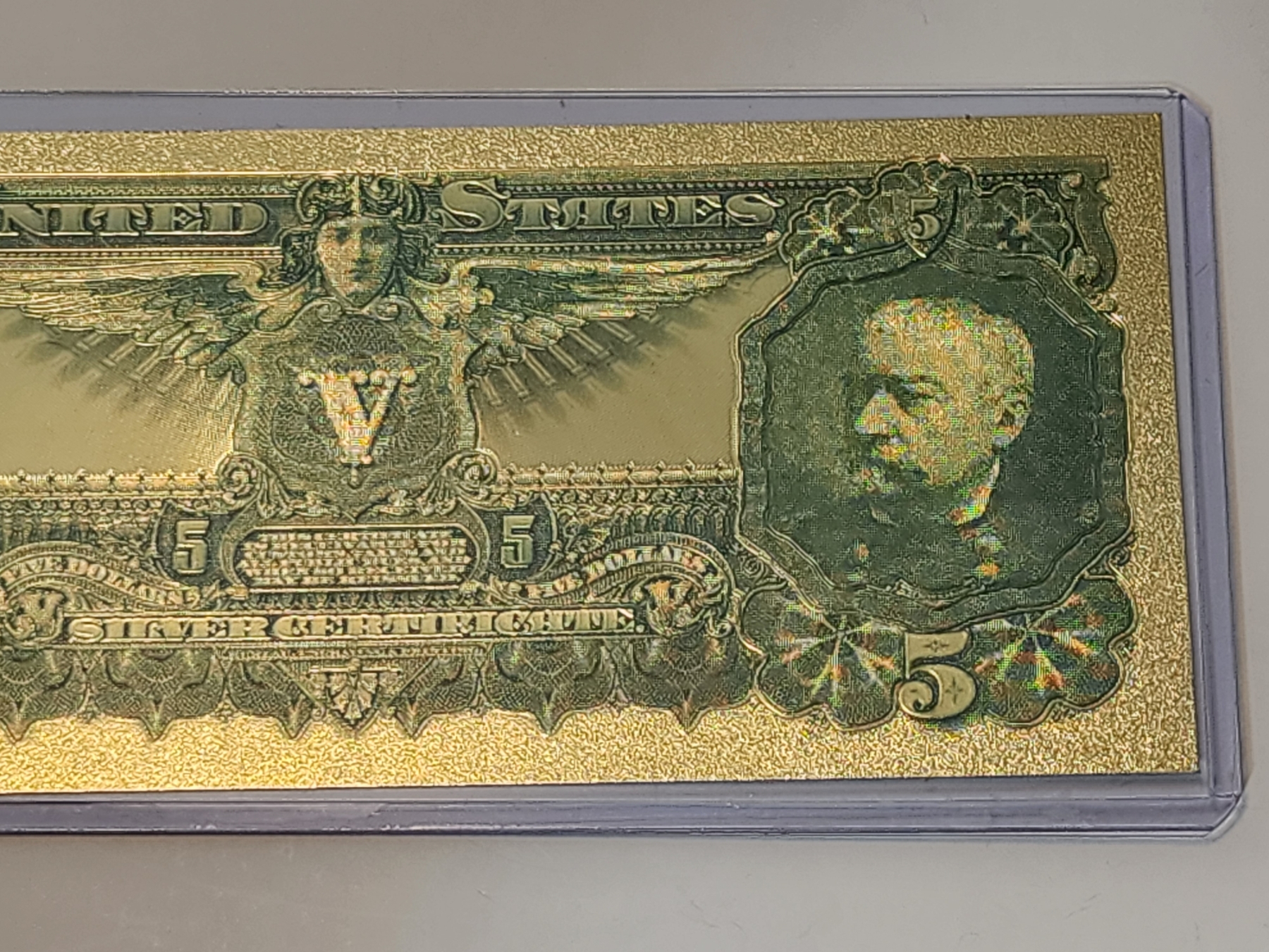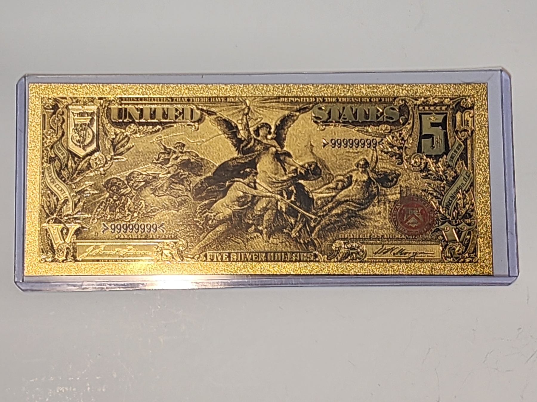 United States $5.00 Silver Certificate Gold Foil .99999999 - 24K Note In Protective Holder - Mint Condition